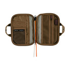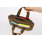 The Original size is light brown. The subdued color makes it perfect for any environment. The attached shoulder straps make it easy to carry around. Once you open the zipper, you will find that the lining is in a combination of light brown and gray. The left side includes three card pockets, as well as a deep clear pocket that lets you see its contents. This design is reminiscent of a small bag and was created with POTR.