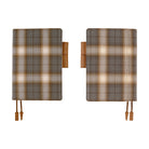 A checkered design with gray and brown tones that gives a sophisticated impression. A smoky color that is perfect for professional environments. As the textile used is woven for clothing such as shirts, the 100% cotton material is smooth to the touch. It has "butterfly stopper" pen holders, which also function as a clasp to keep the cover shut.