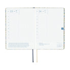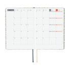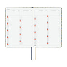 A small floral pattern reminiscent of the pastoral illustrations by picture book author Kate Greenaway. Pink and light blue anemones flutter gently, while small buds and leaves create a rich design that evokes a meadow swaying in the breeze. The year 2026 and the Hobonichi logo are stamped with gold foil. The hardcover book has some give to it so it still bends, and comes with a pencil board.