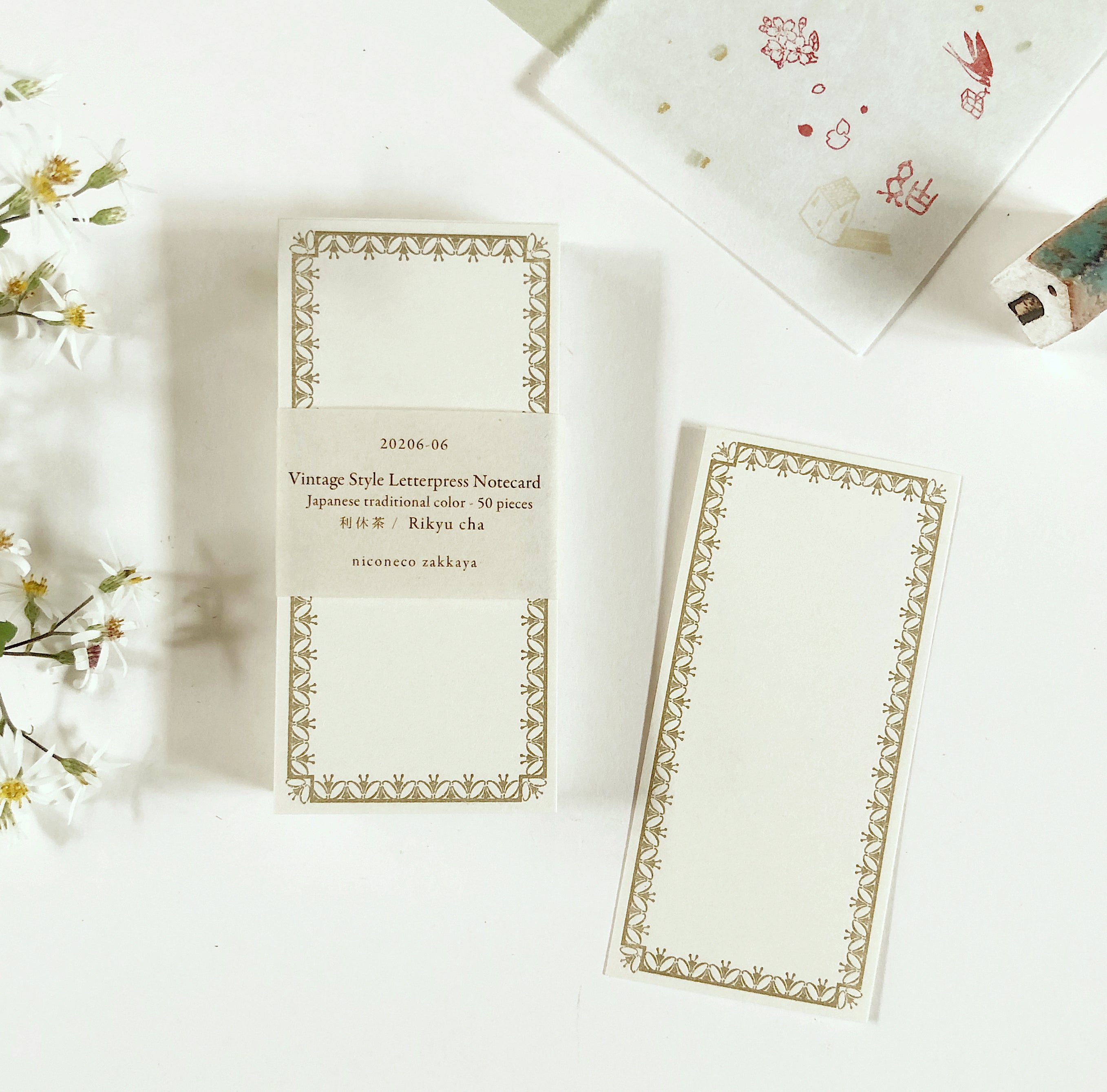 niconeco Japanese Color Letterpress Notecard - Rikyucha(利休茶)