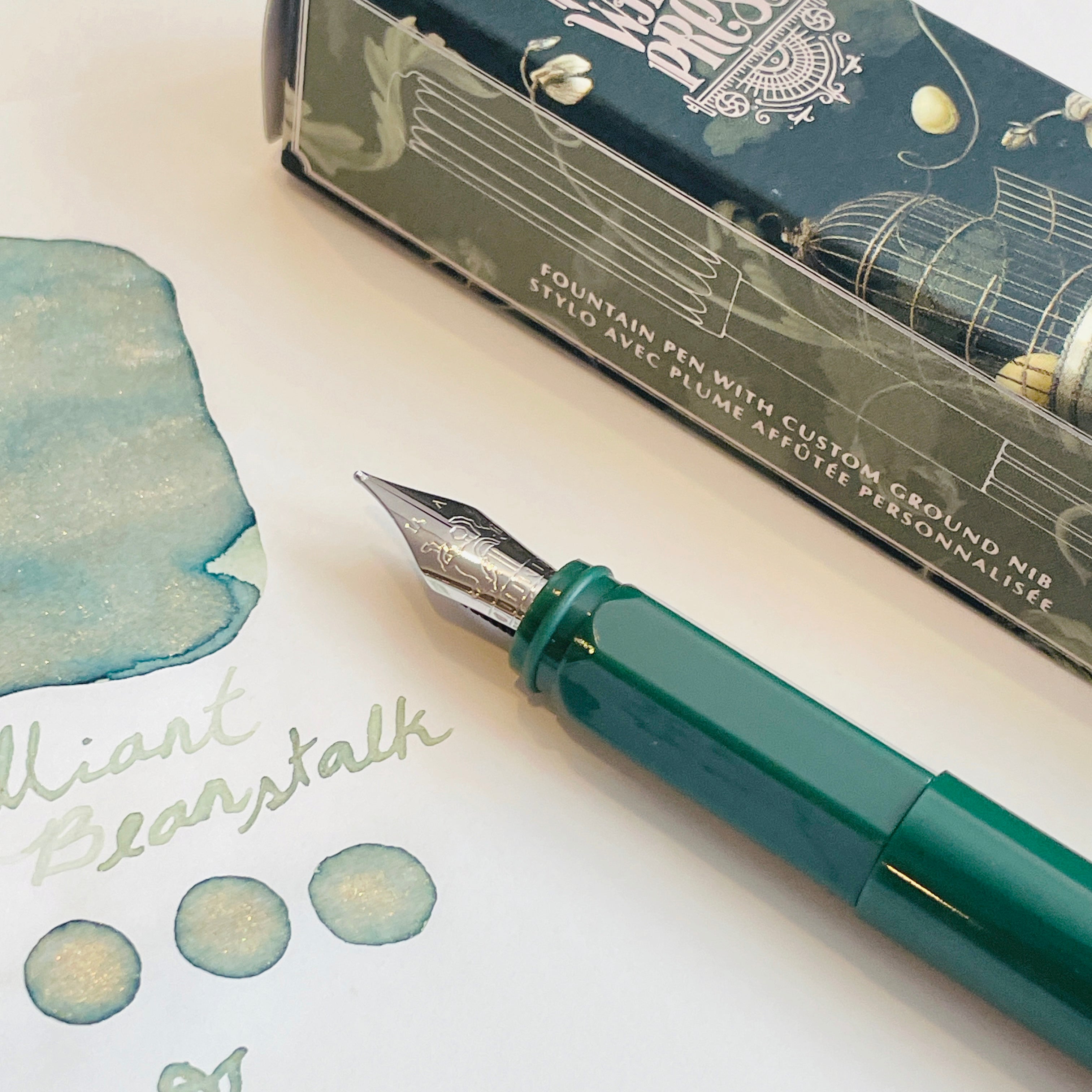 - Fountain Pen Nib: Custom ground steel nib; 0.7mm fine, 1.0mm medium widths