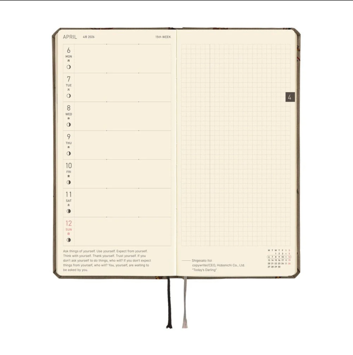 Hobonichi Techo (ほぼ日手帳) is a Japanese daily planner known as the “Almost Everyday Planner” or “Almost Everyday Notebook.” It’s produced by Hobo Nikkan Itoi Shinbun (Hobonichi), a company founded by Shigesato Itoi, a Japanese copywriter, essayist, and voice actor.