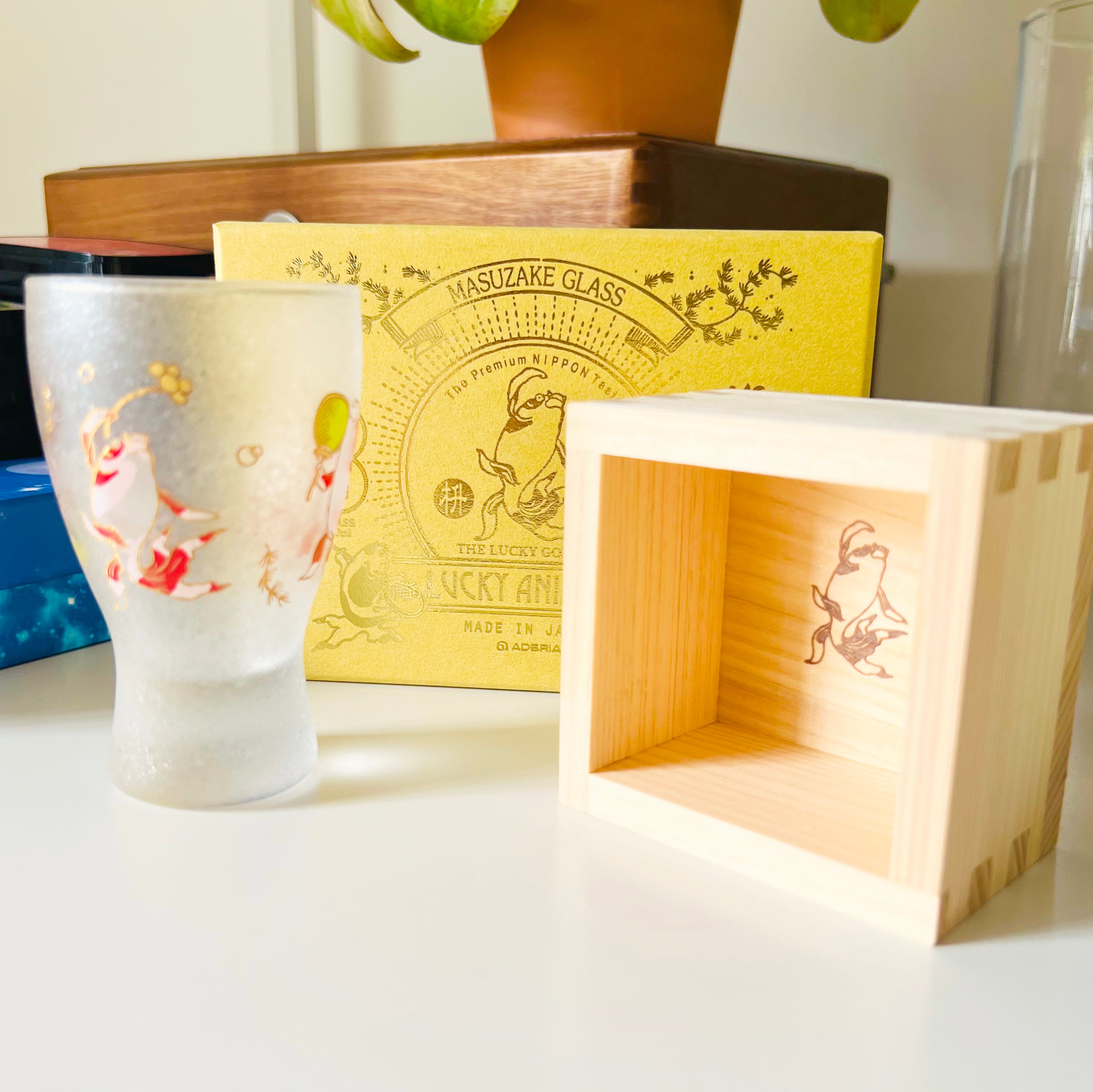 Japanese Lucky Animal Masu Sake Glass with Gift Box - Goldfish