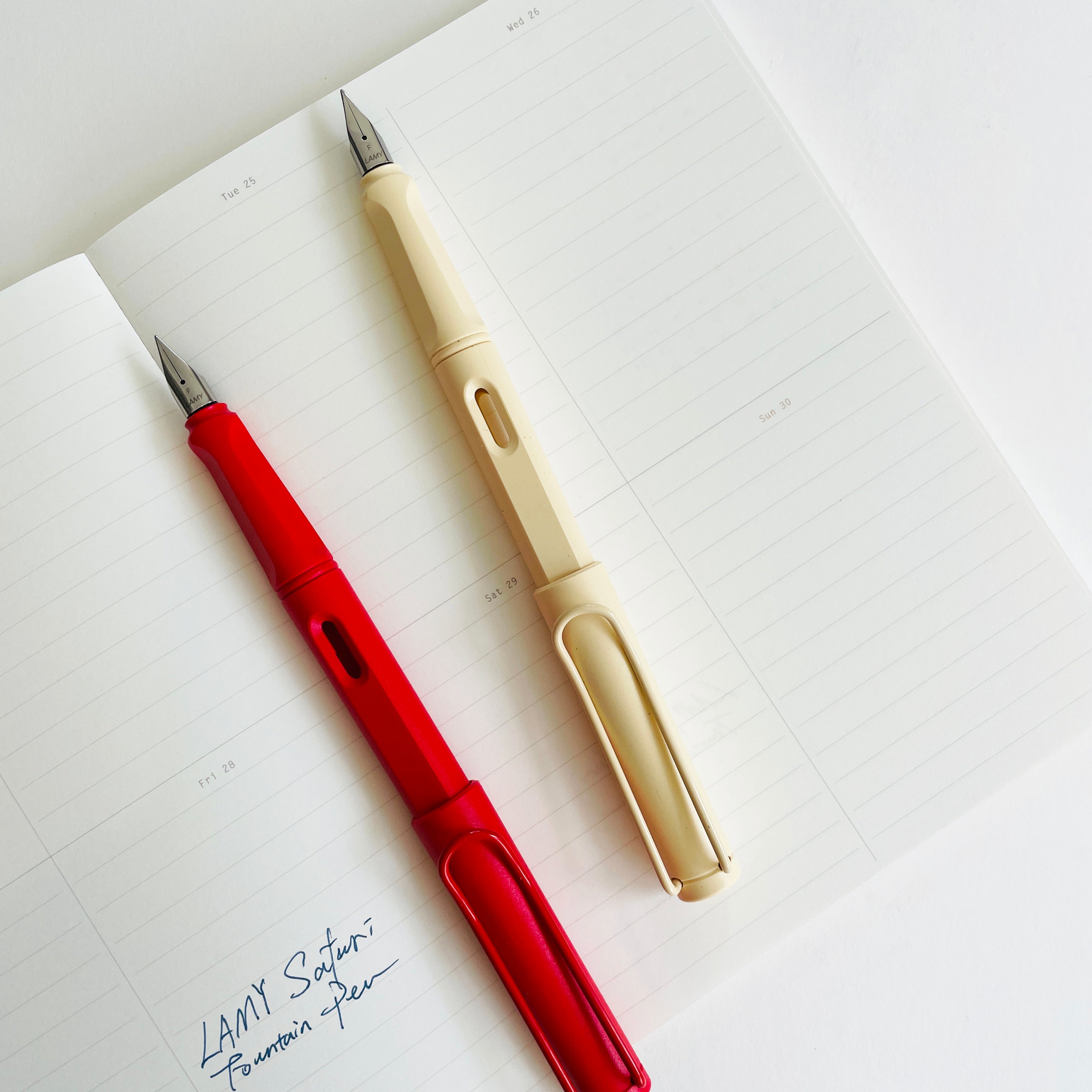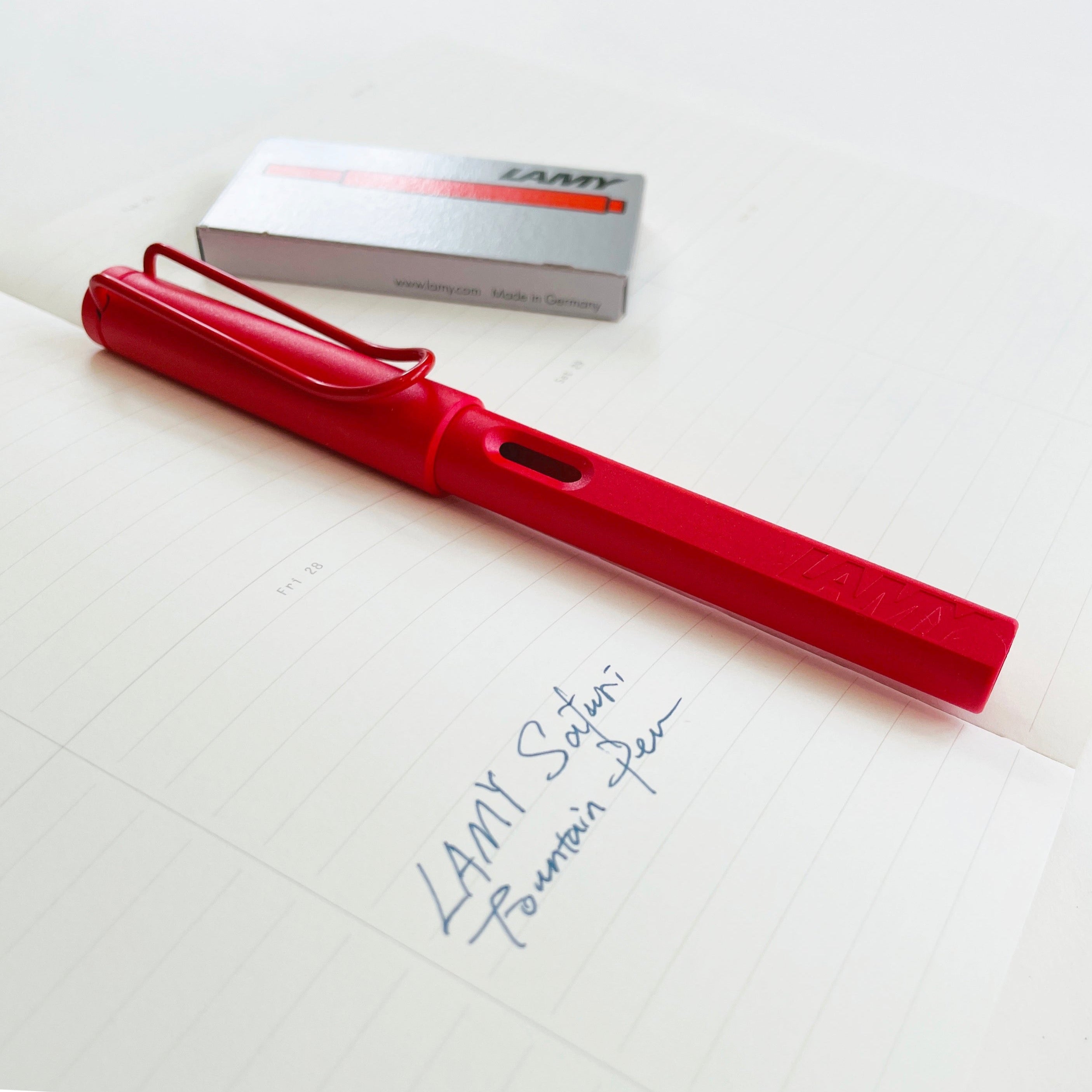 The Lamy Safari pen originally launched in the 1980`s is currently the best selling writing instrument in the world. Available in a variety of colors the fountain, ball point and rollerball pen boasts Lamy `s timeless design to create a high quality writing instrument. The pen features features a chrome plated spring loaded clip, ABS plastic casing, ergonomically shaped grip, ink cartridge window, and a stainless steel nib.