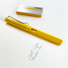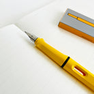 The Lamy Safari pen originally launched in the 1980`s is currently the best selling writing instrument in the world. Available in a variety of colors the fountain, ball point and rollerball pen boasts Lamy `s timeless design to create a high quality writing instrument. The pen features features a chrome plated spring loaded clip, ABS plastic casing, ergonomically shaped grip, ink cartridge window, and a stainless steel nib.
