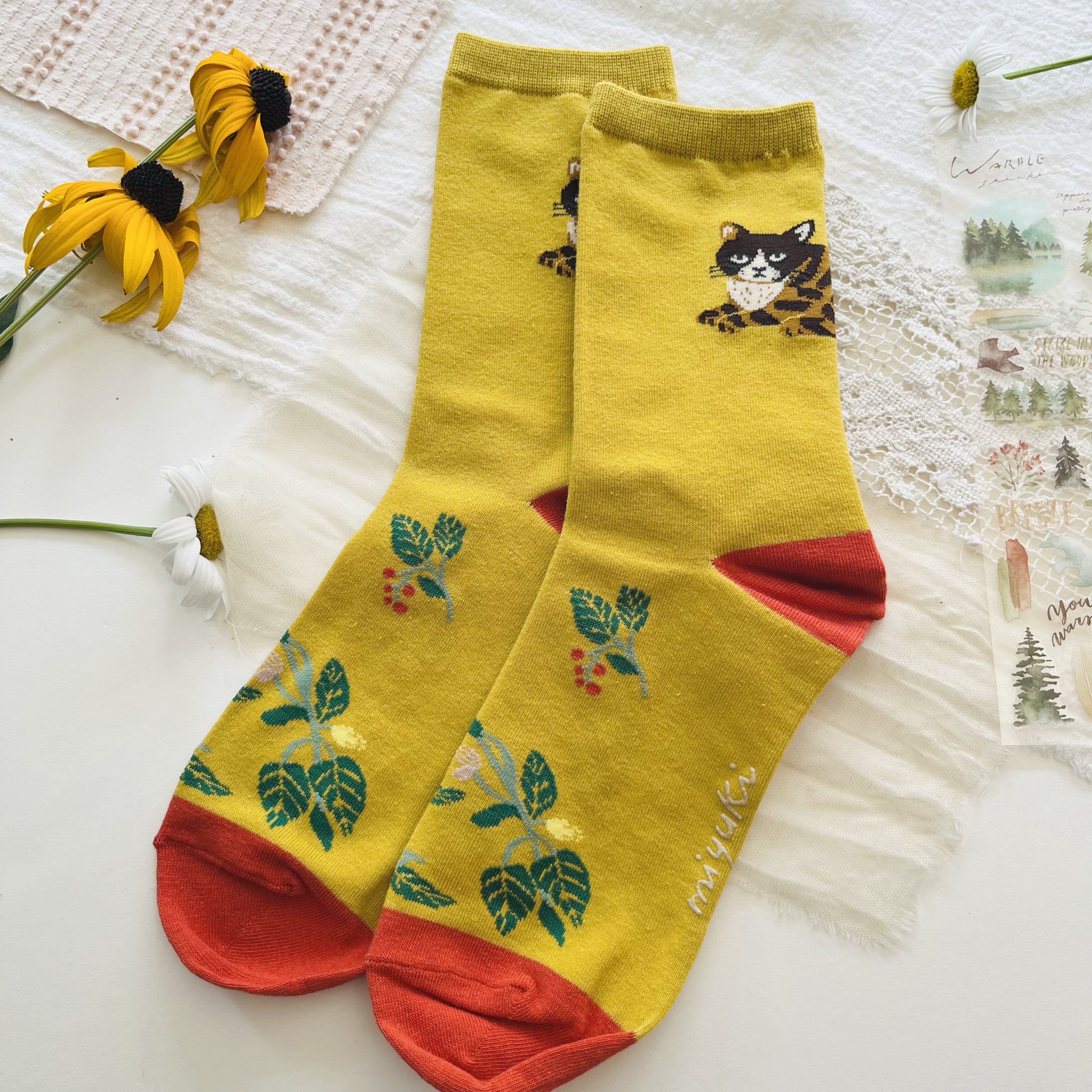 These adorable indoor cat socks designed by Japanese artist Matsuo Miyuki.