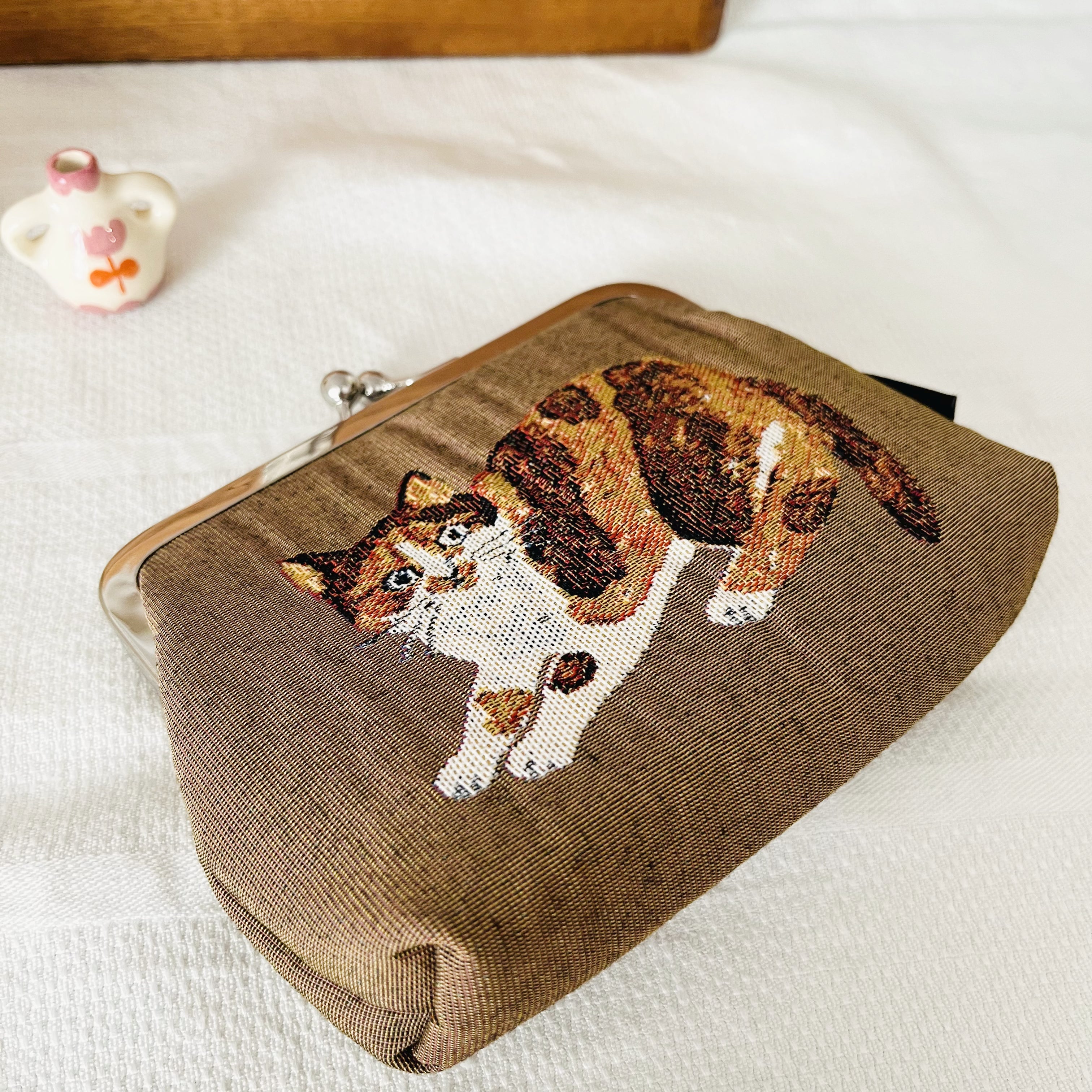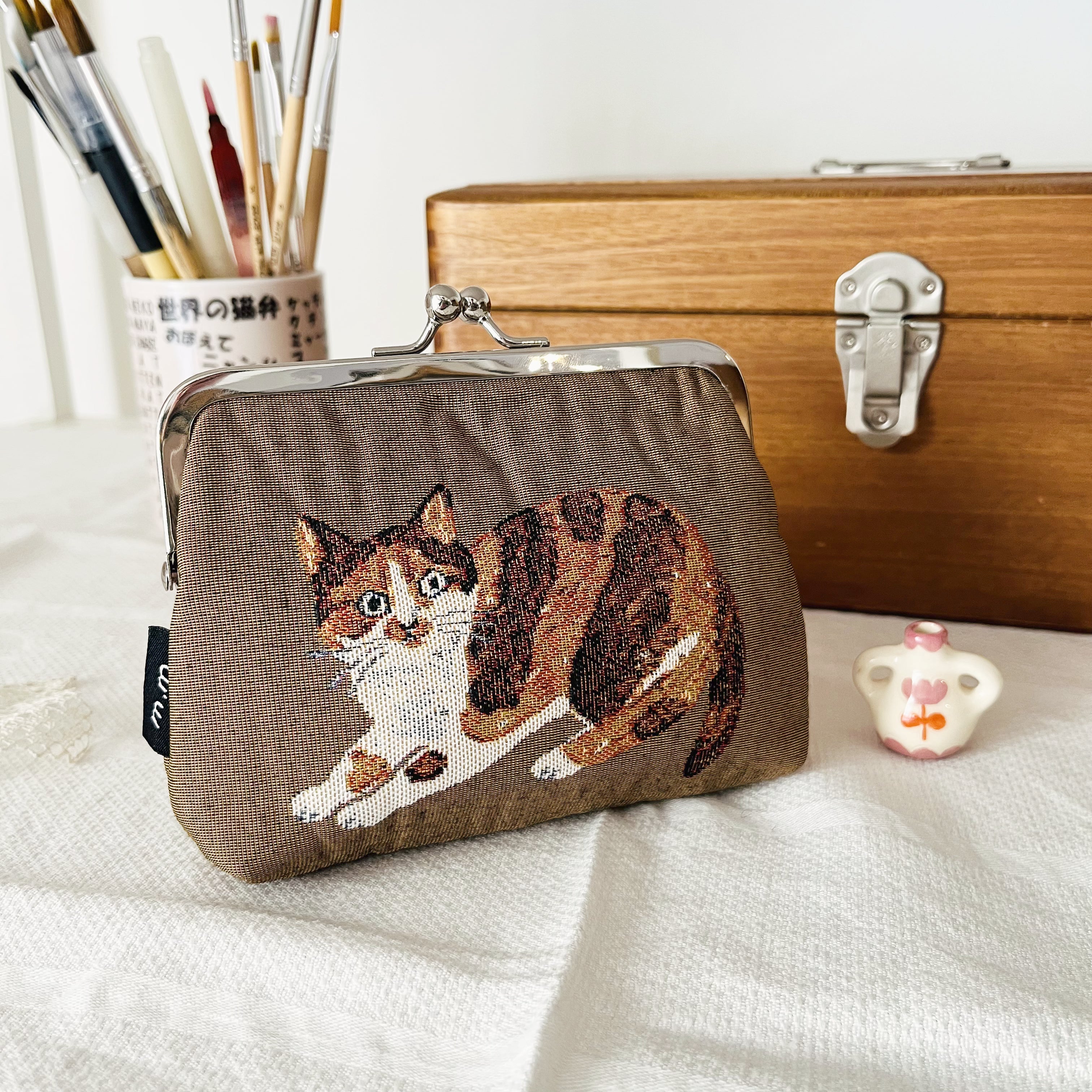 The cats drawn by Miyuki Matsuo have been woven into this pouch. The cats with their unique expressions are incredibly cute, and when combined with the plants, it creates an eye-catching design. It can be used for a variety of purposes, such as storing cosmetics and cards, or as a wallet. It is also a recommended item for small gifts.
