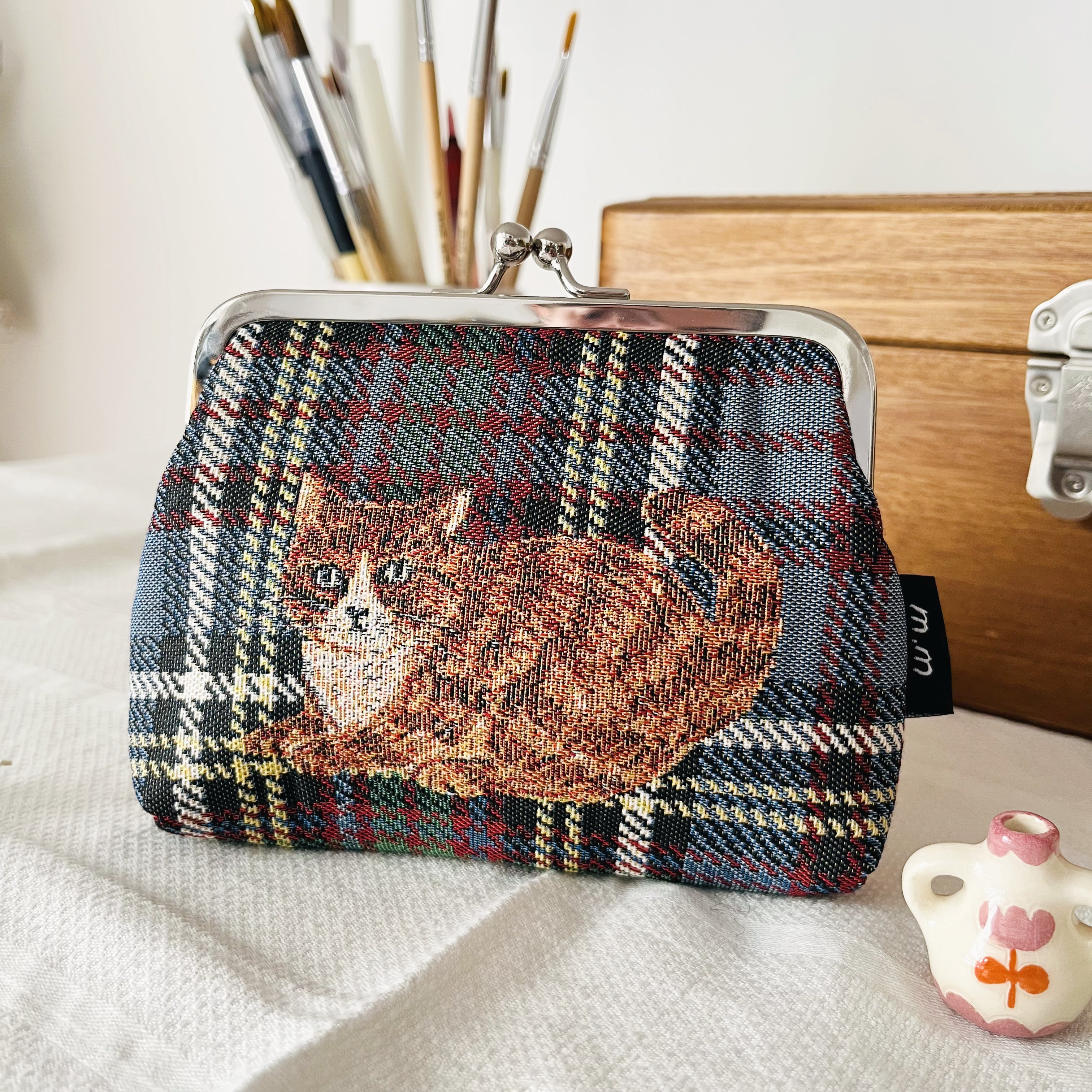 The cats drawn by Miyuki Matsuo have been woven into this pouch. The cats with their unique expressions are incredibly cute, and when combined with the plants, it creates an eye-catching design. It can be used for a variety of purposes, such as storing cosmetics and cards, or as a wallet. It is also a recommended item for small gifts.