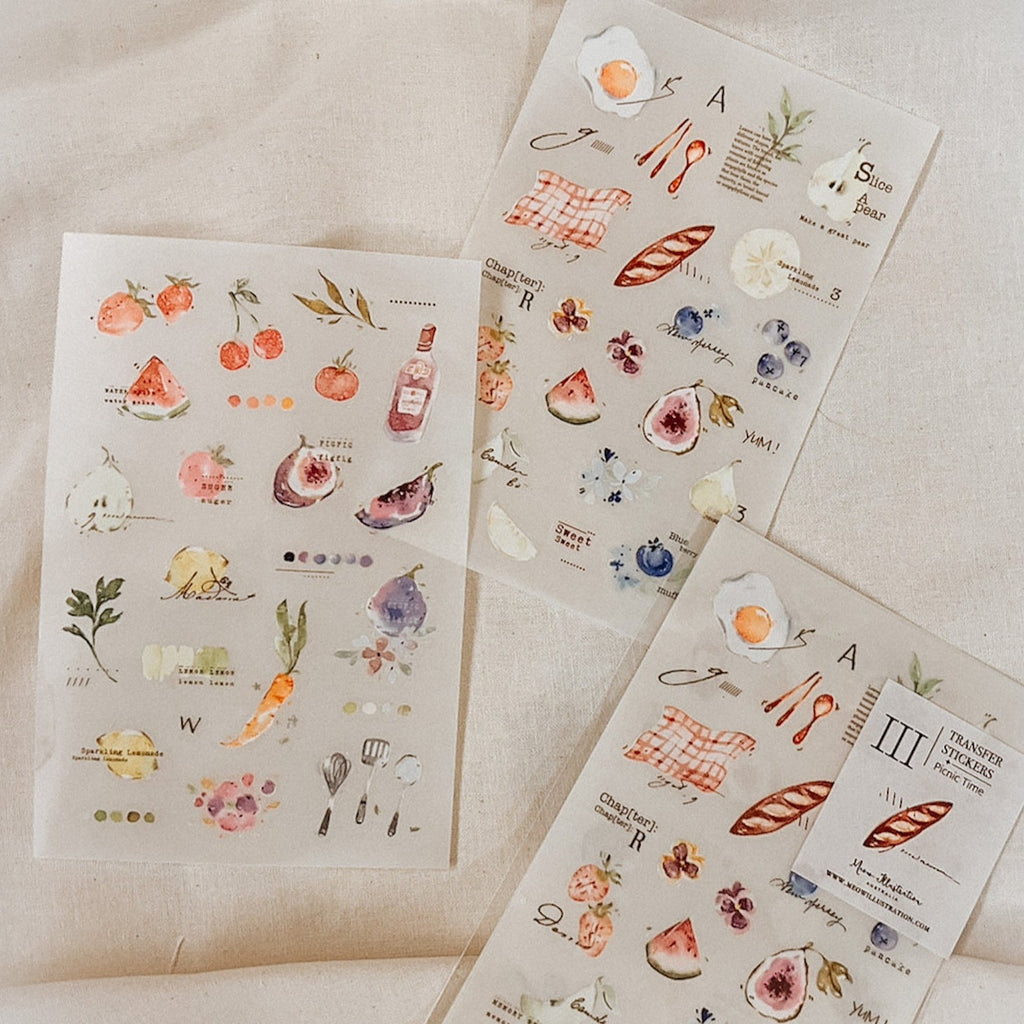 Meow Illustration Print-on Sticker Sheet - Picnic Time