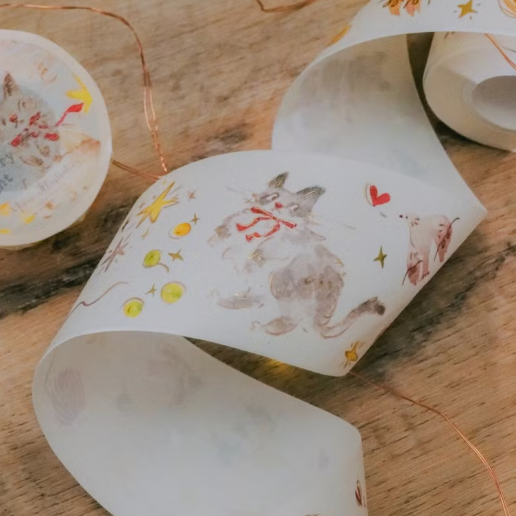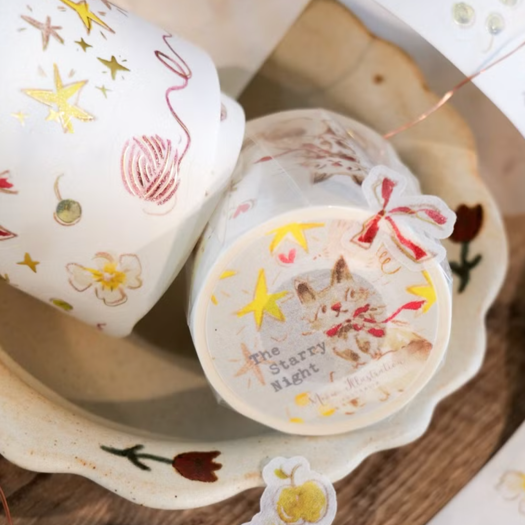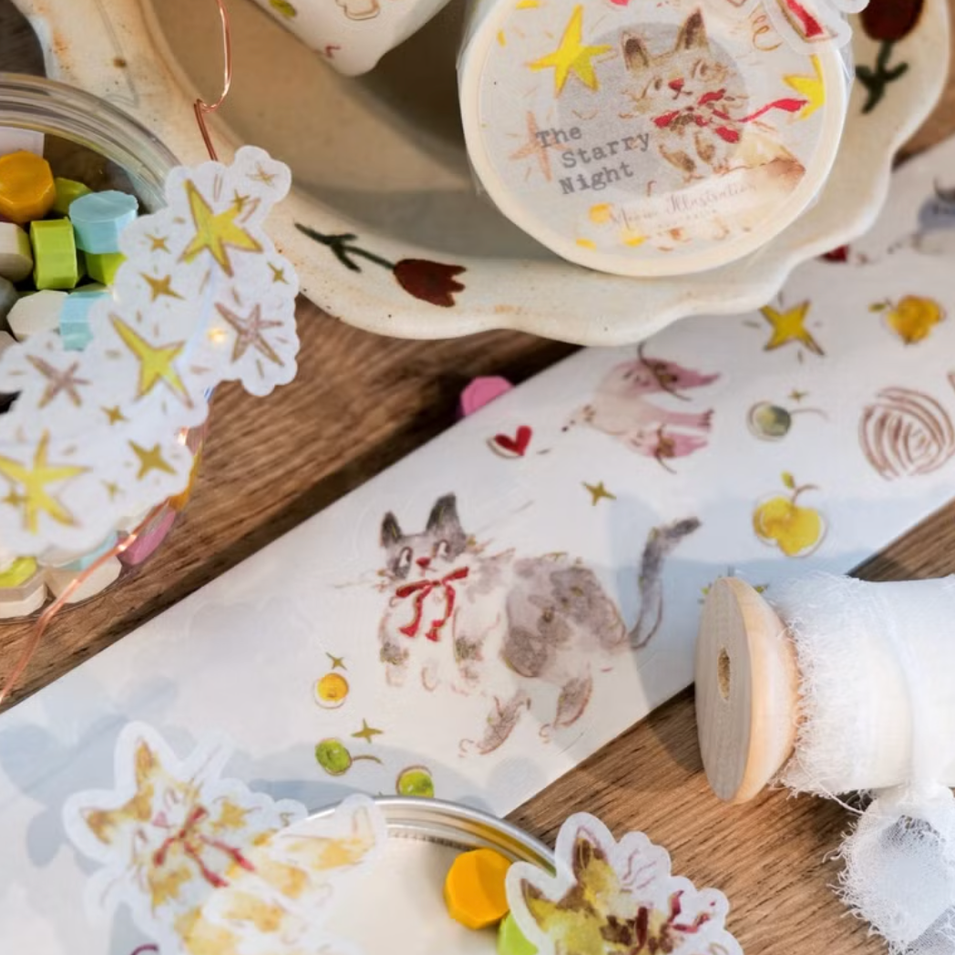 Meow Illustration Kiss-Cut Washi Tape - Starry Night