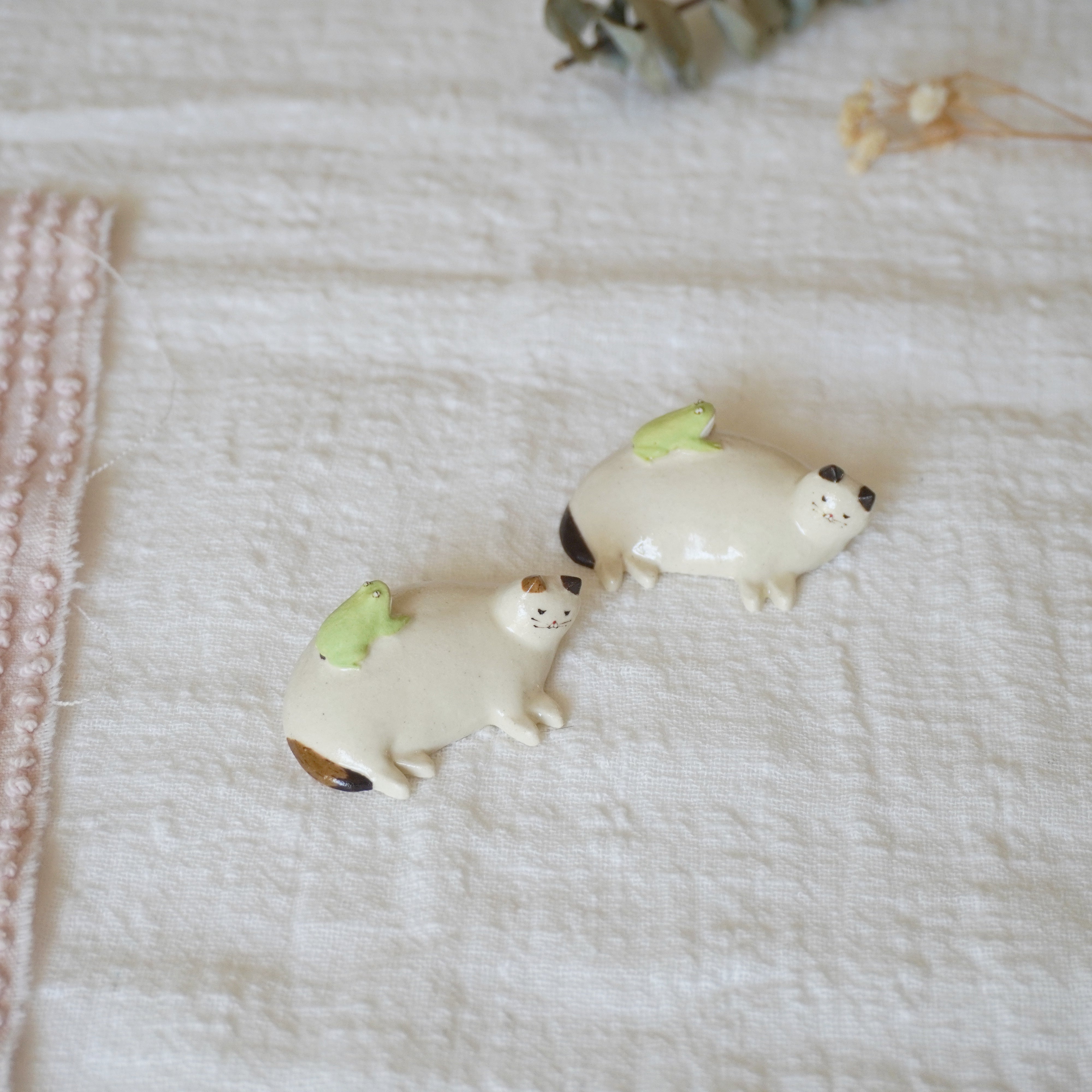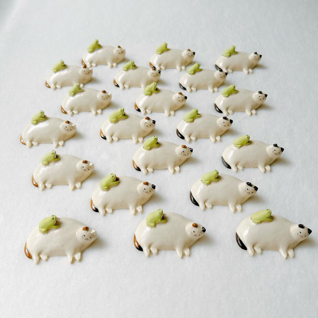 Midori Nasu Ceramic Figure - Frog Cat