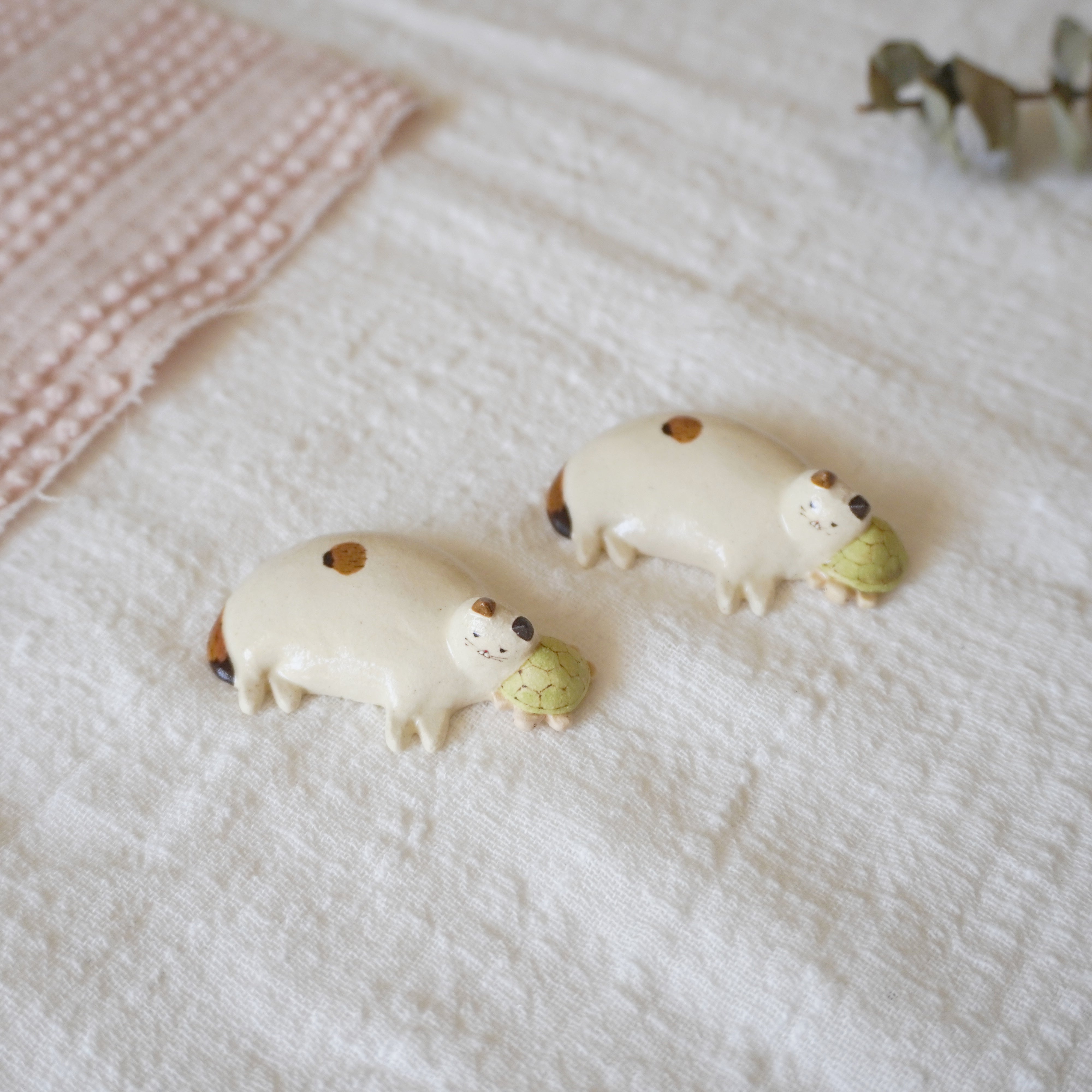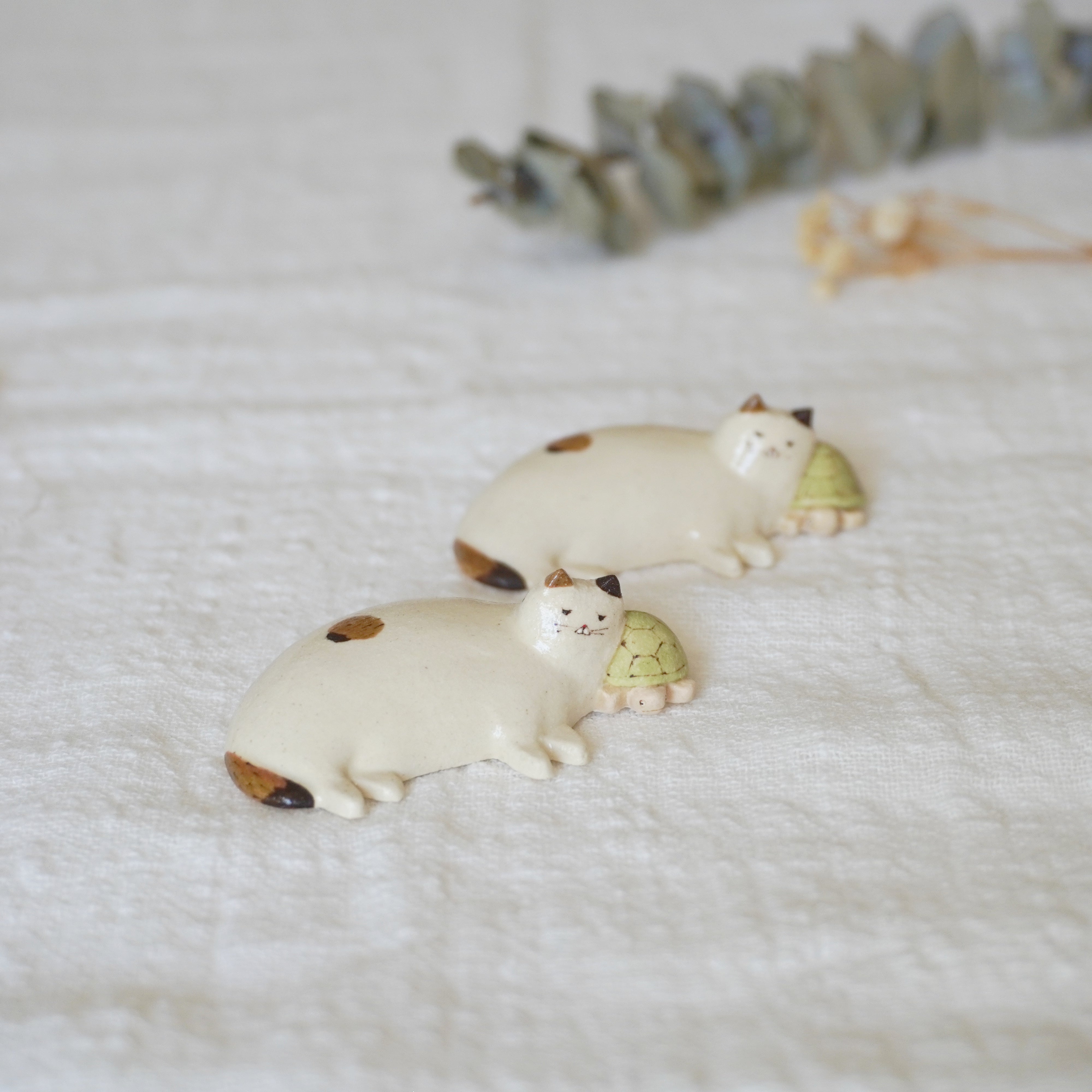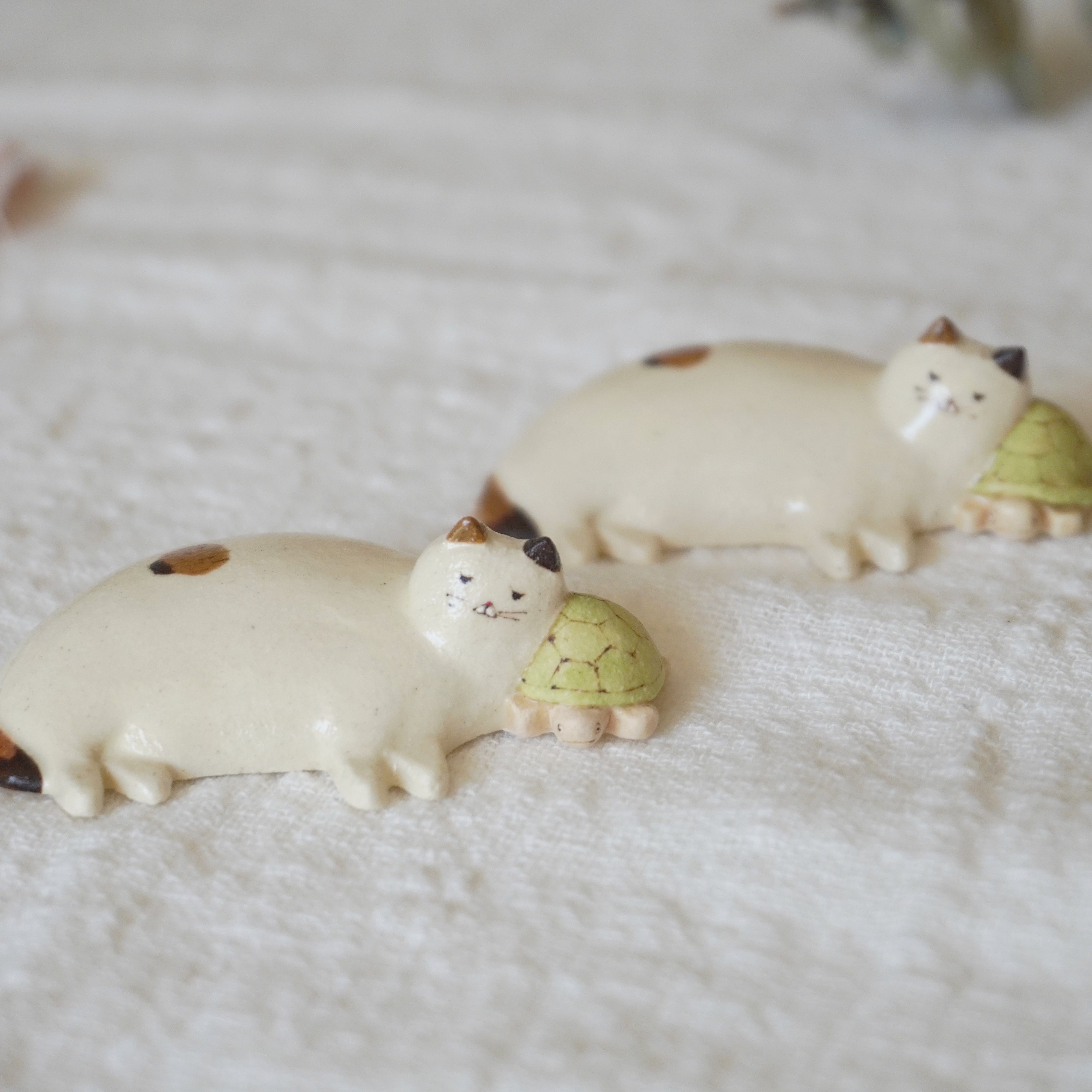 Midori Nasu Ceramic Figure - Cat on Turtle