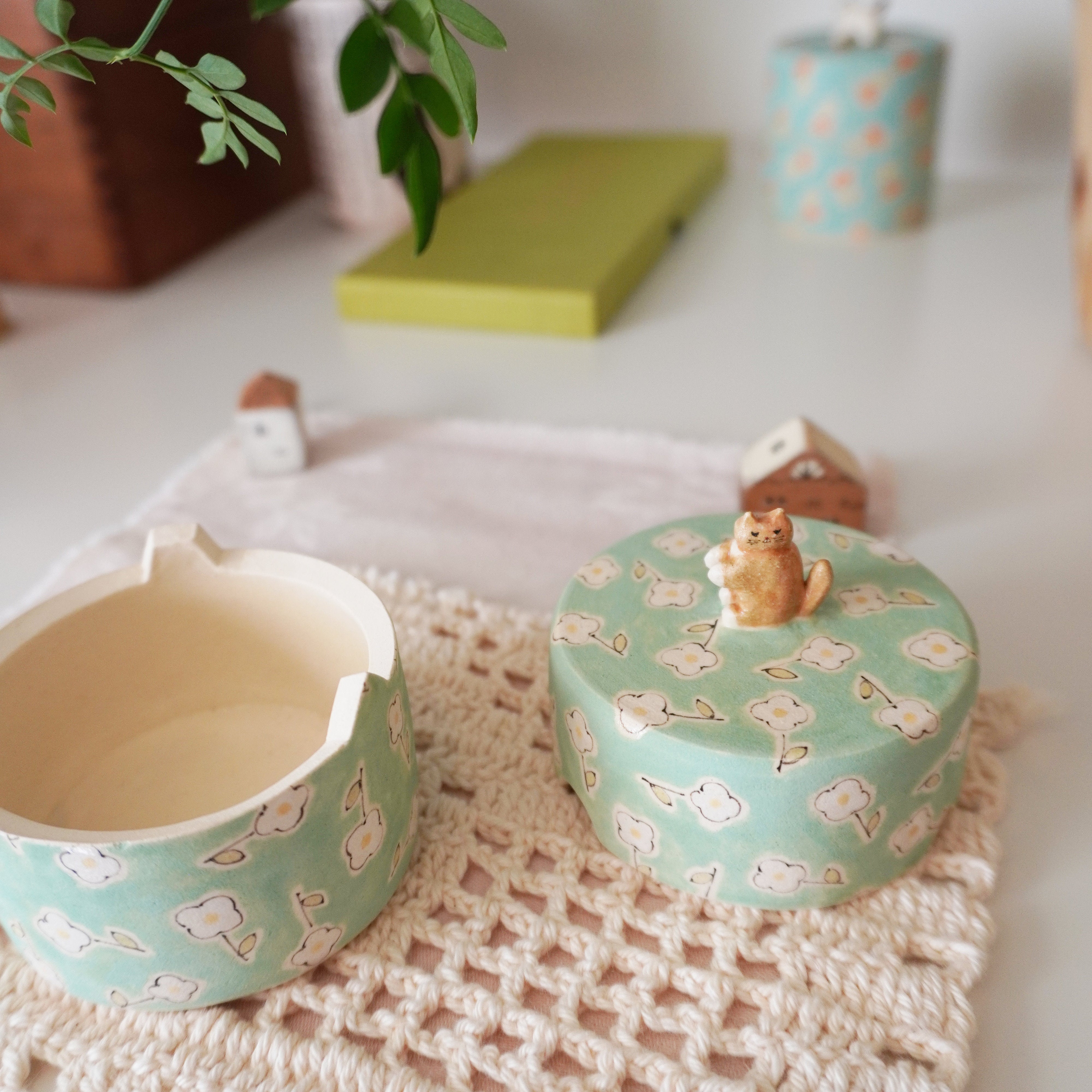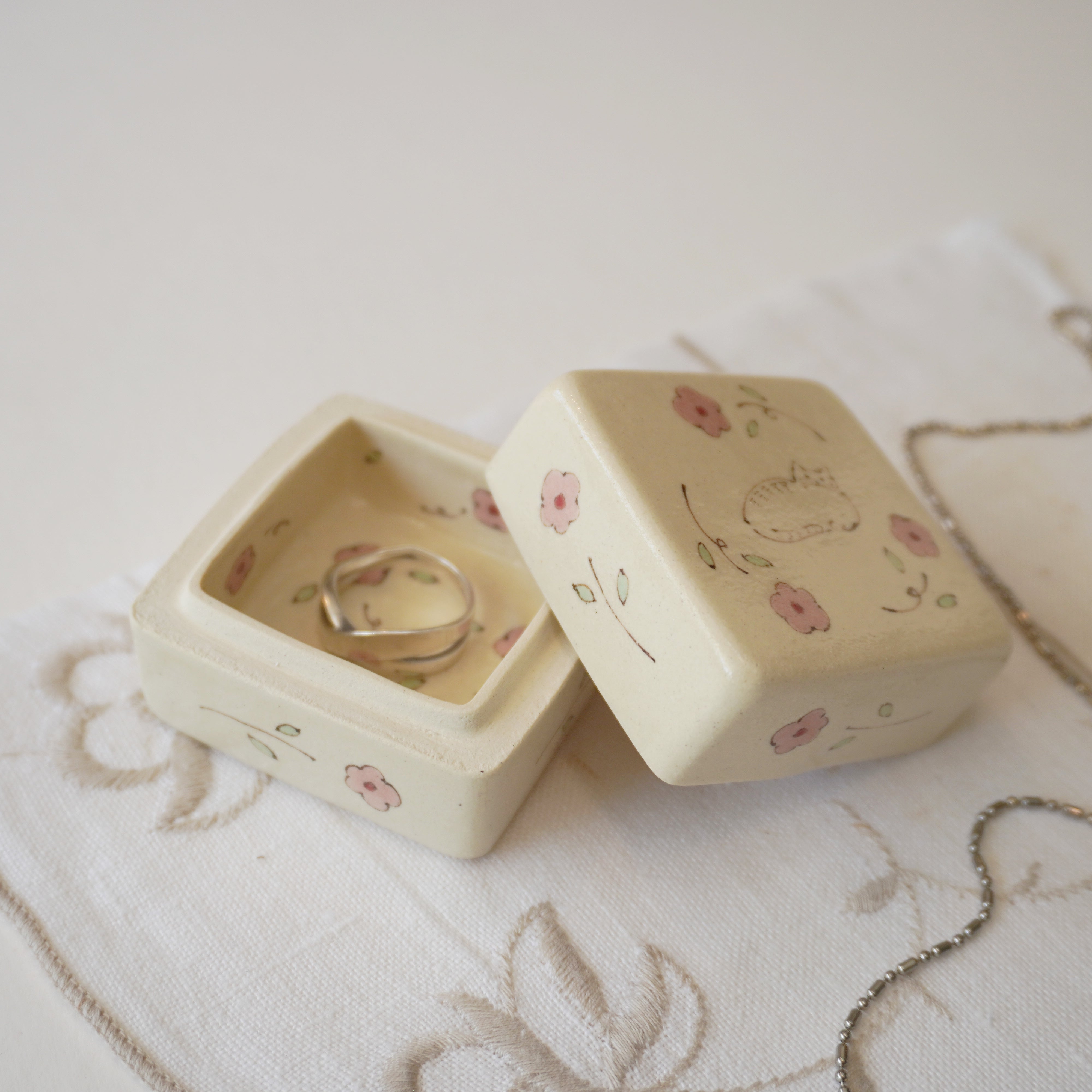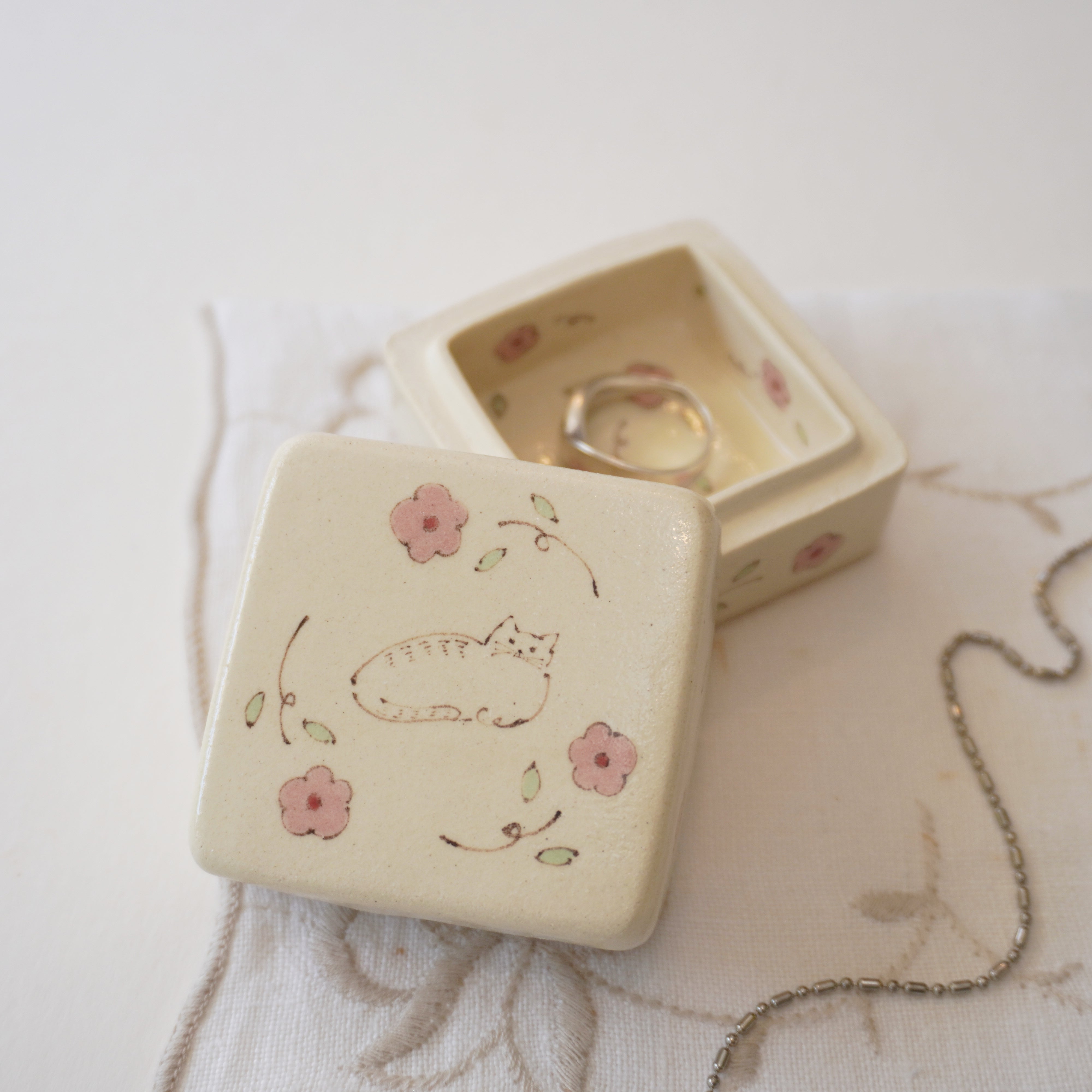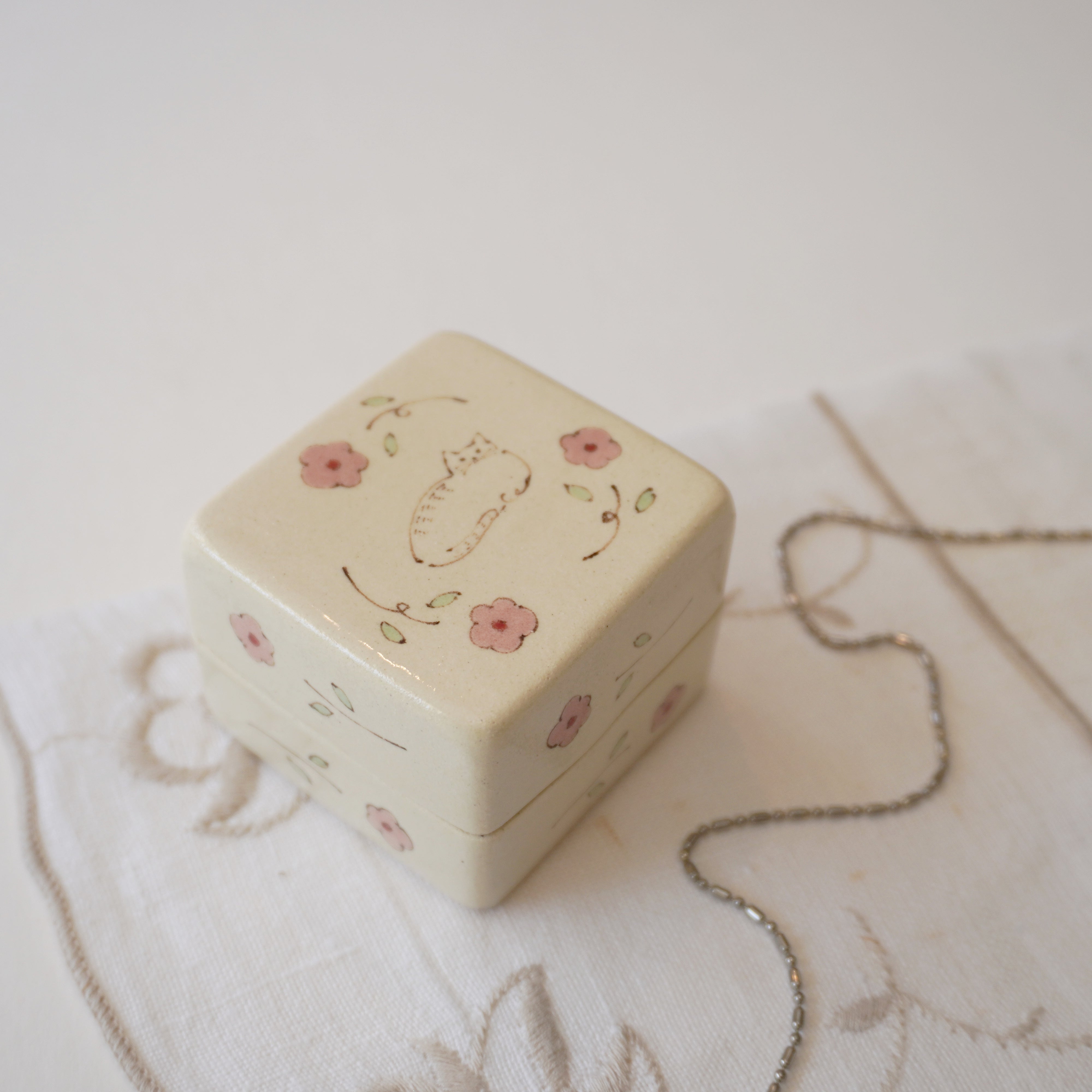 Midori Nasu Ceramic Figure - Pink Flower Jewelry Box