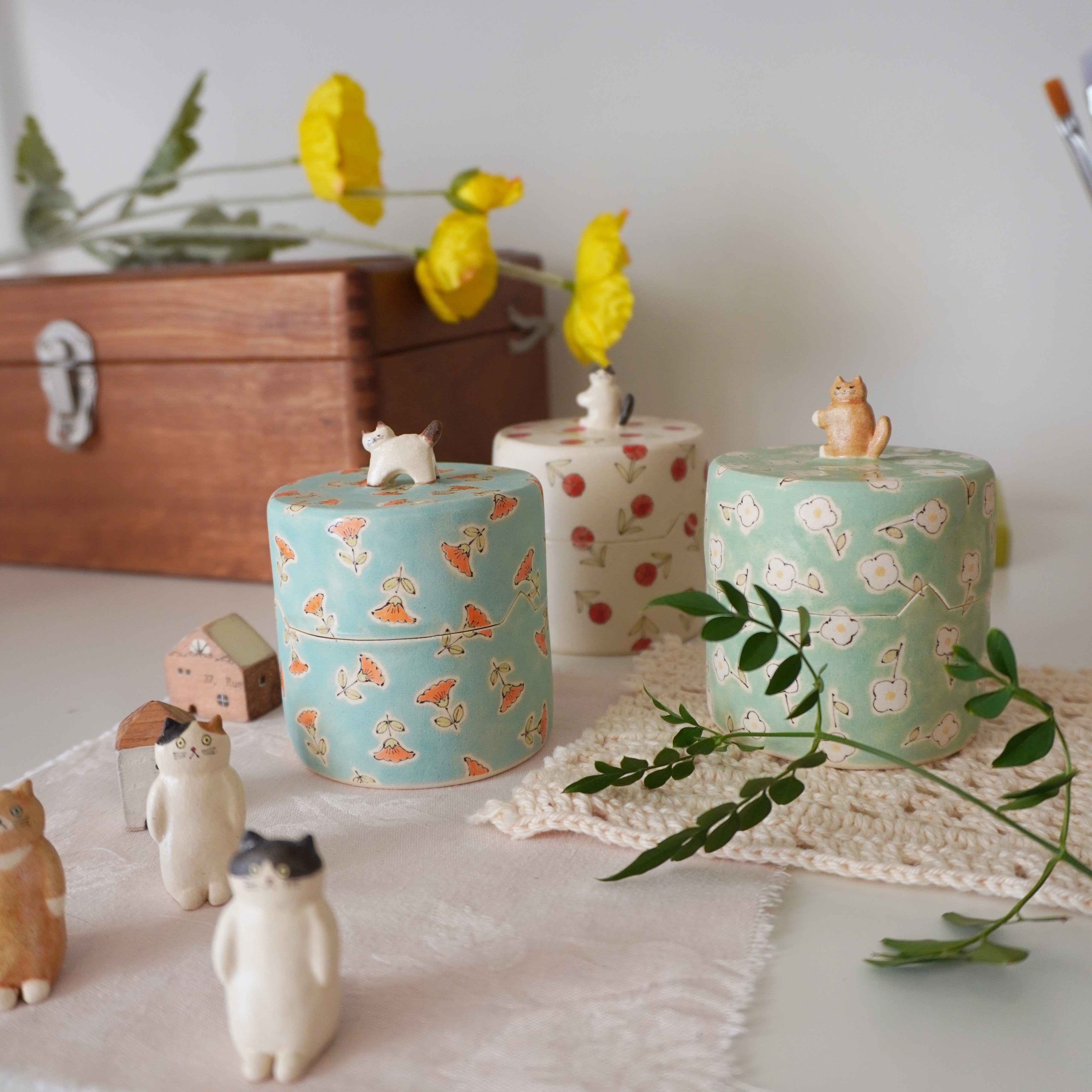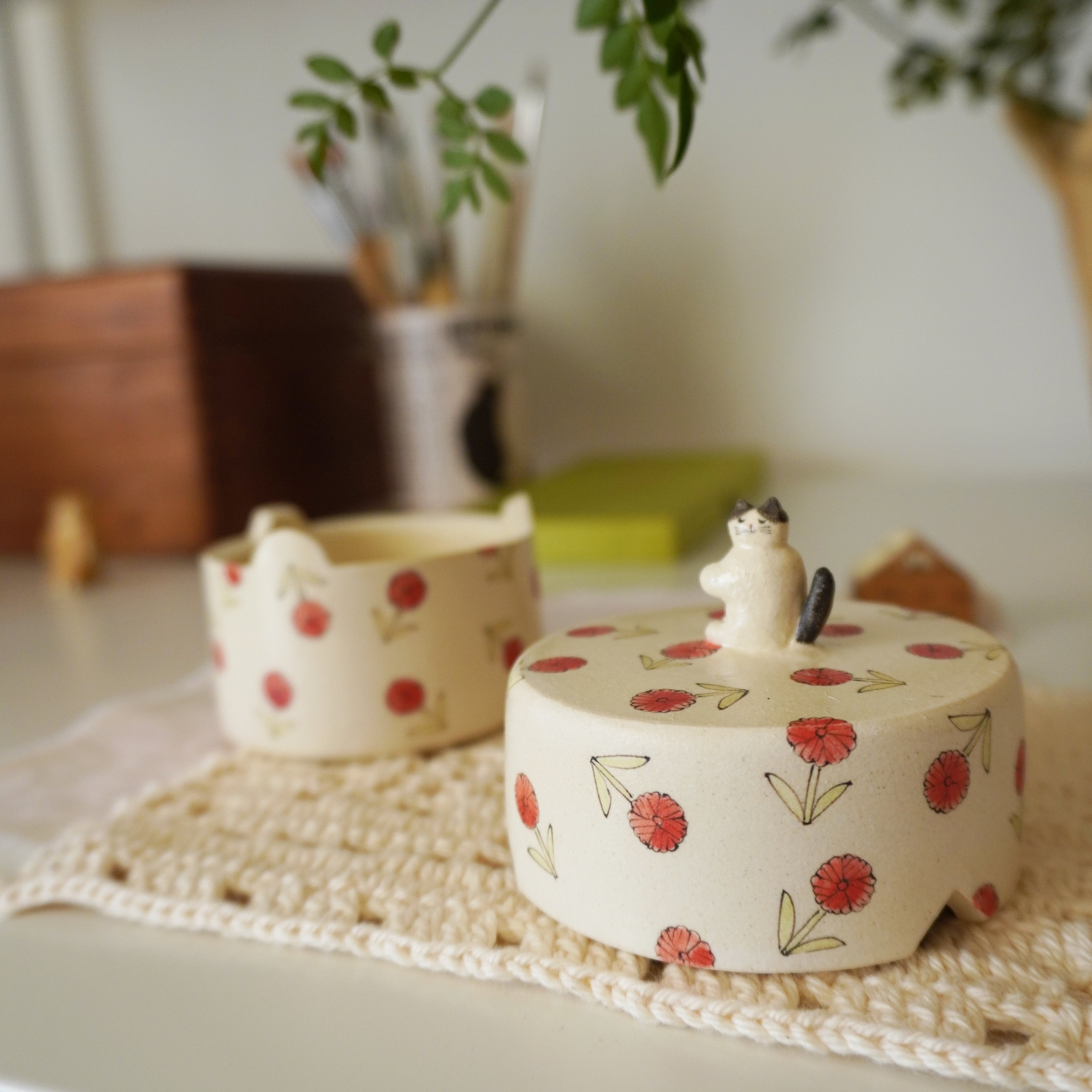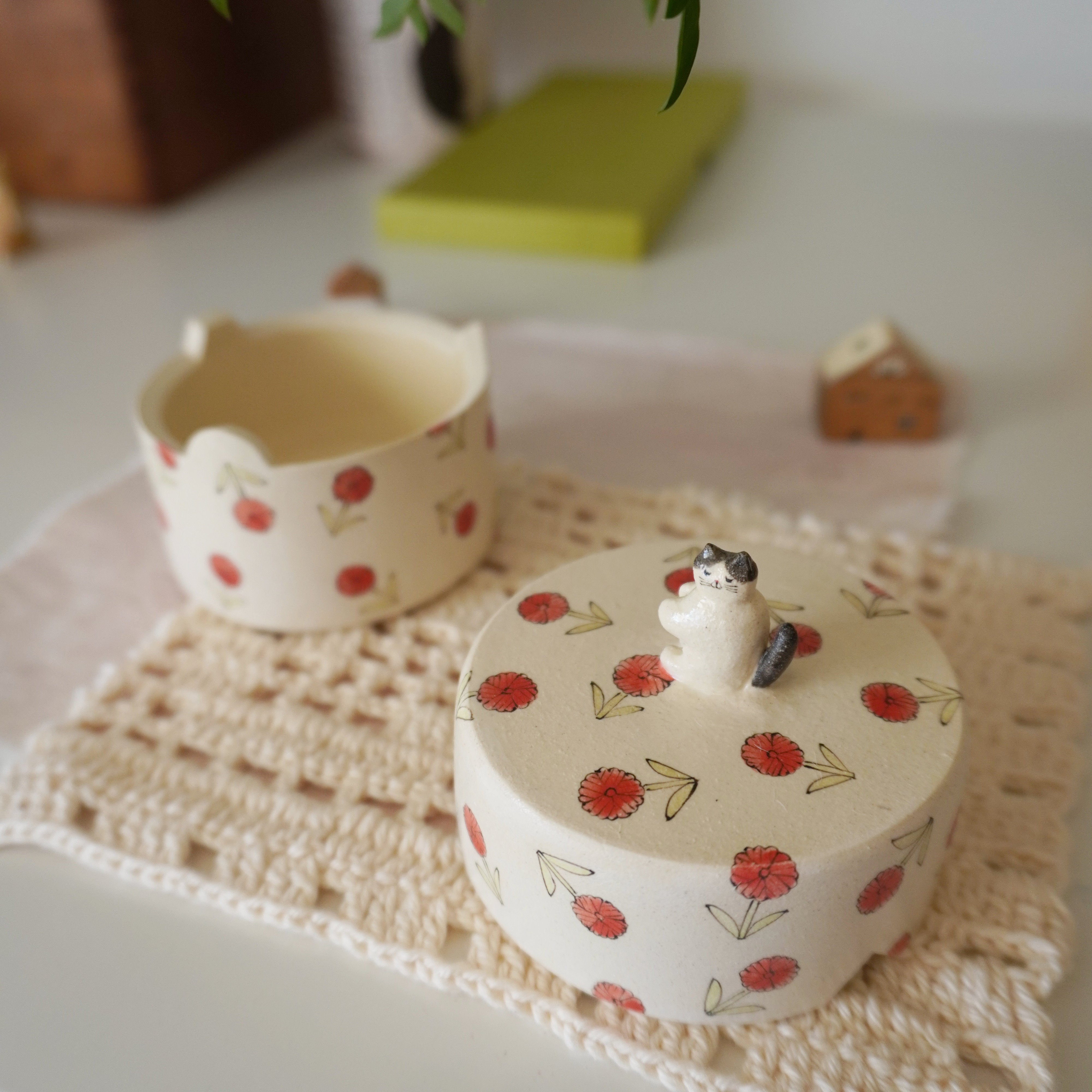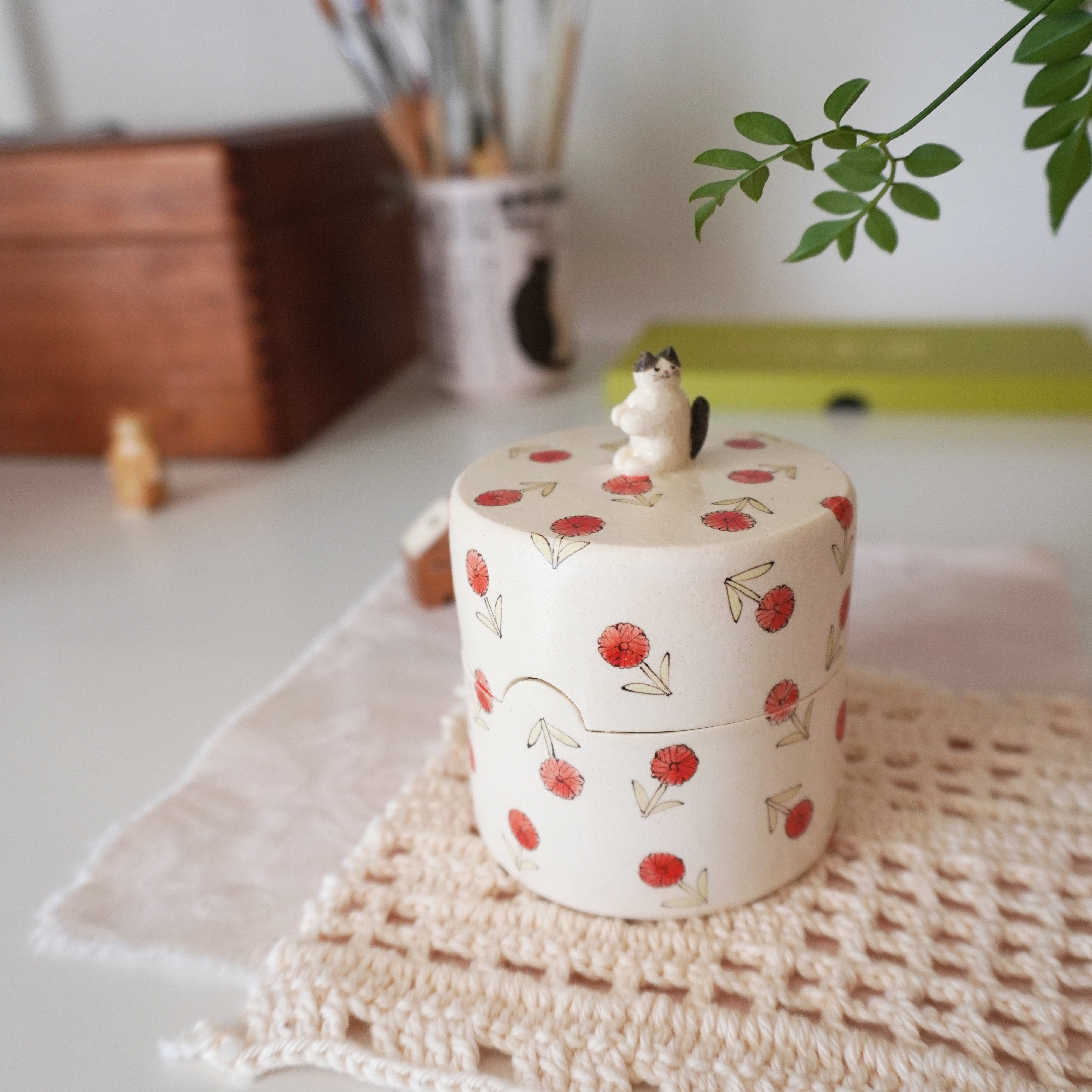 Midori Nasu Ceramic Figure - Pink Flower Jewelry Box