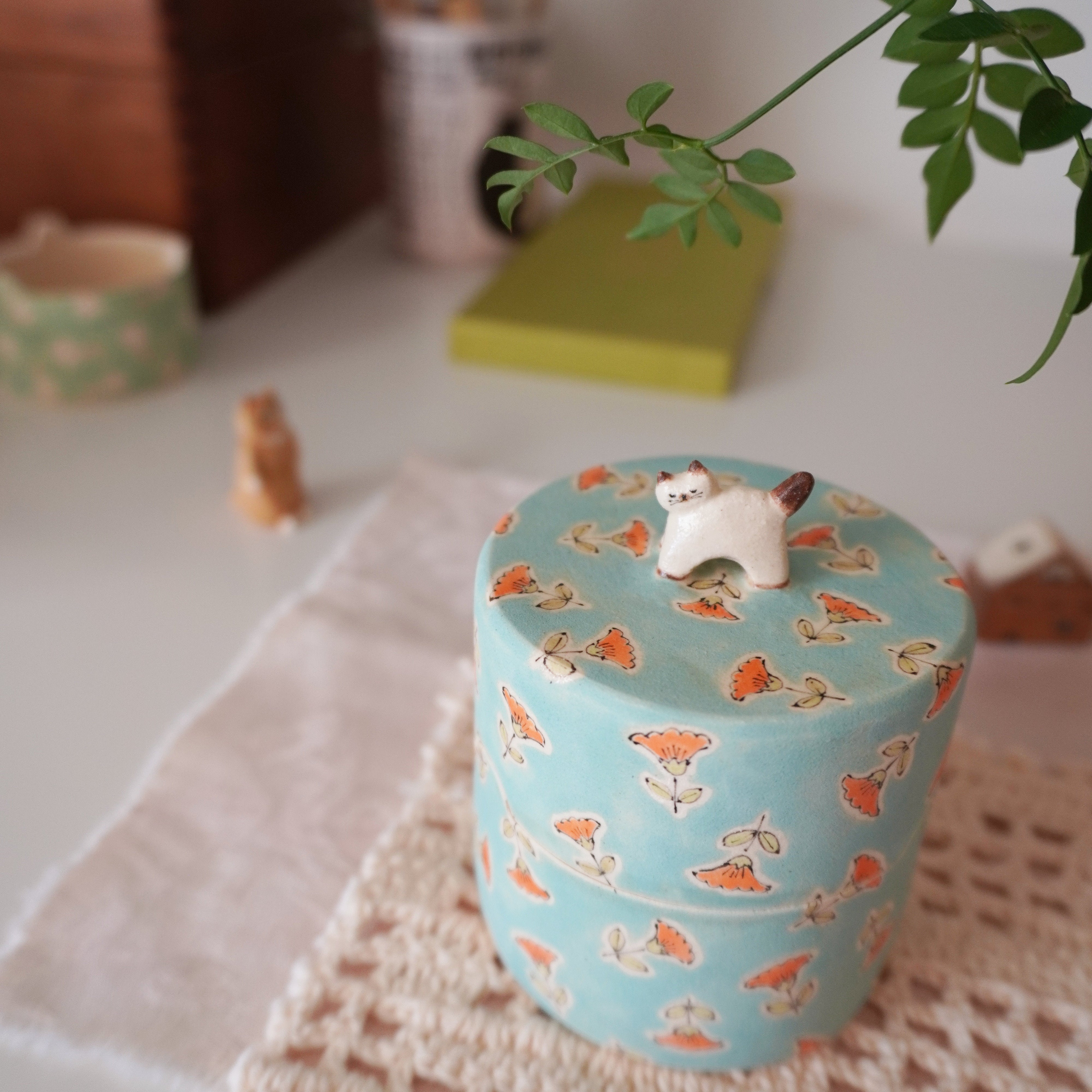 Midori Nasu Ceramic Figure - Mandarin Jewelry Box