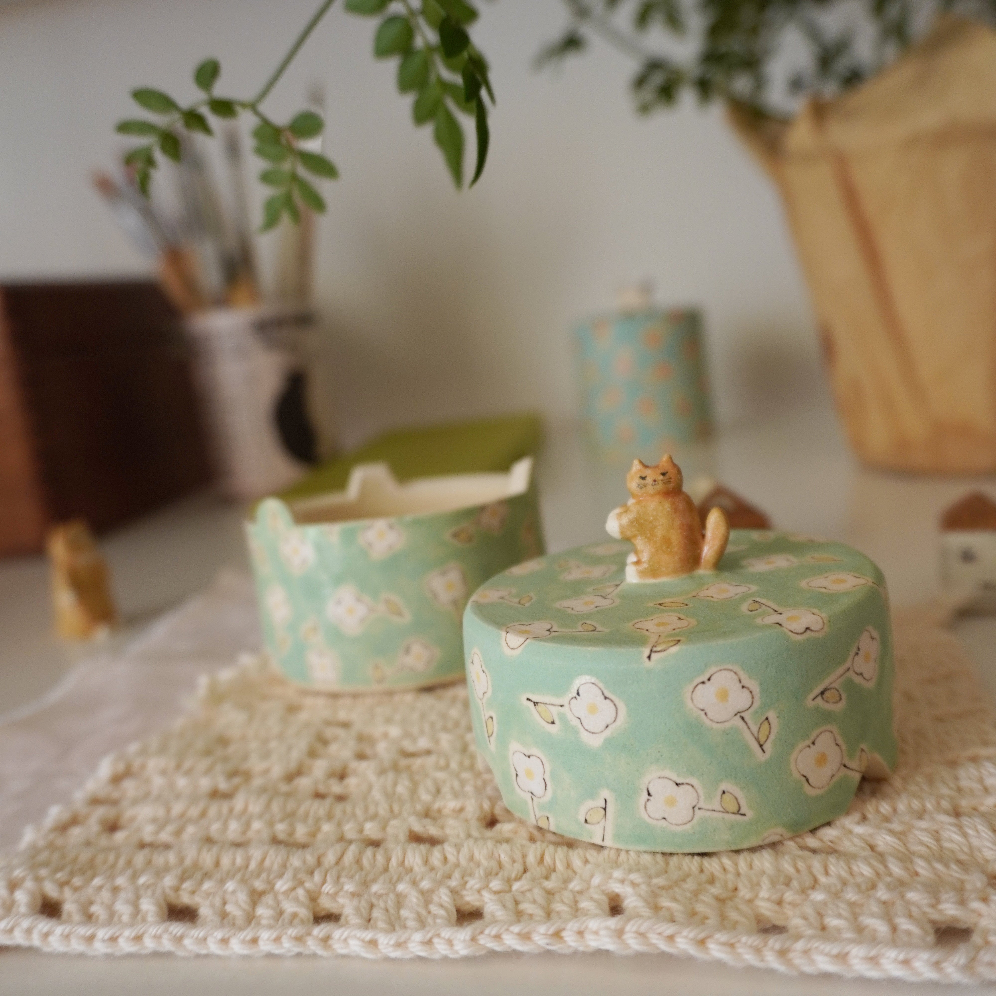 Midori Nasu Ceramic Figure - Futon Cat