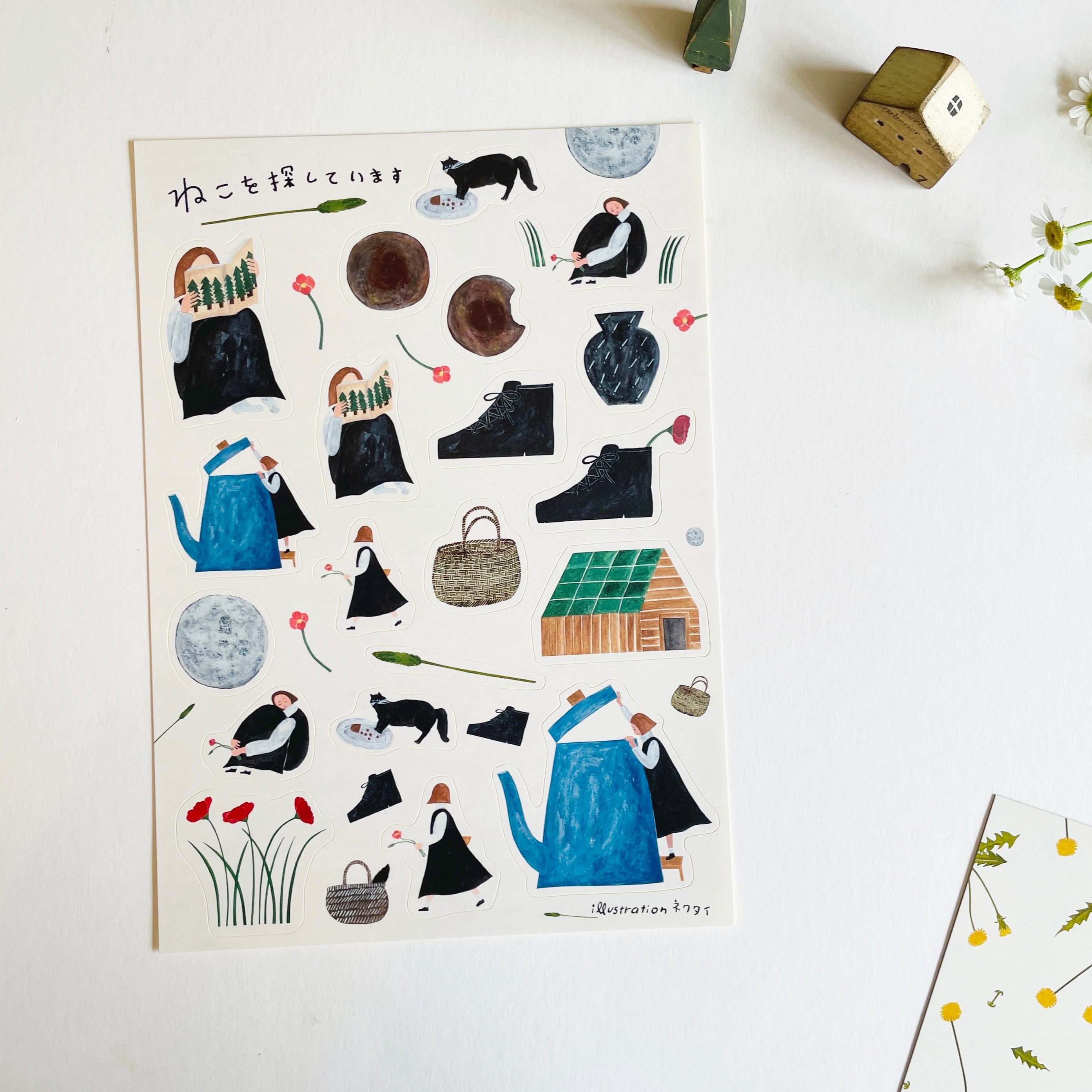 Necktie A5 Sheet Die-cut Sticker - Looking for Cats
