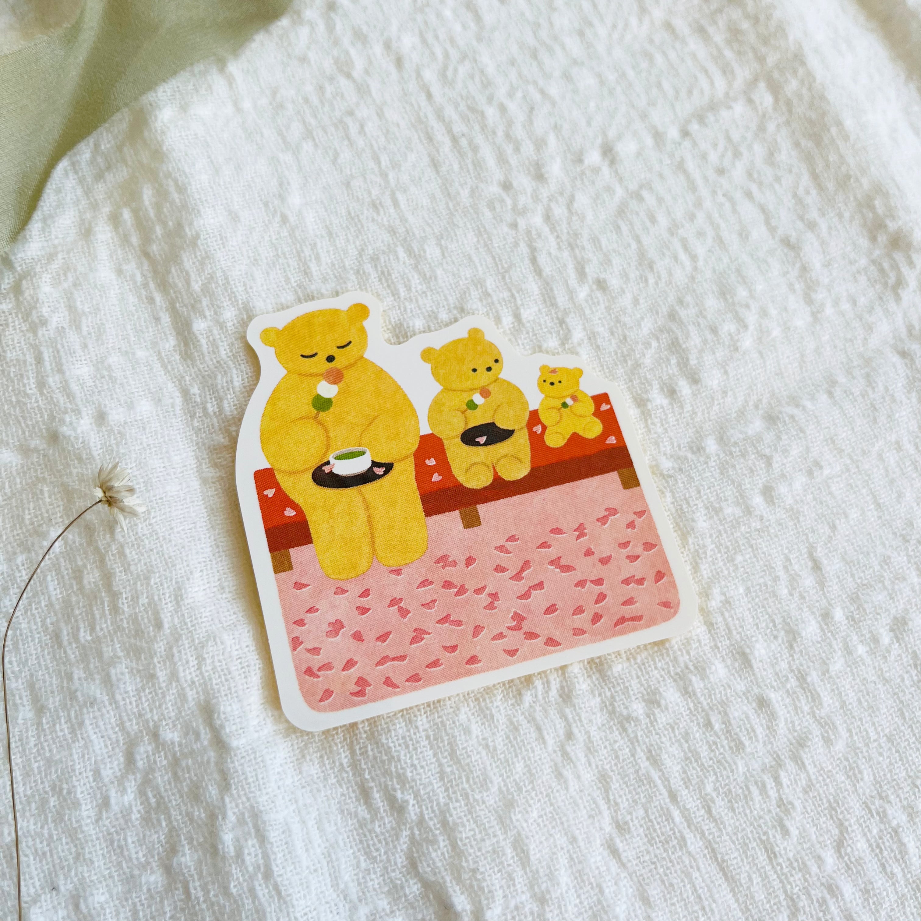 This sticker is designed by illustrator Mariko Fukuoka. The three bears, "Hana Yori Dango" (dumplings over flowers), are so cute! The stickers are water-resistant and light-resistant, so you can enjoy them in various ways, such as sticking them on your suitcase or clipping them into your smartphone case. They also make great souvenirs.