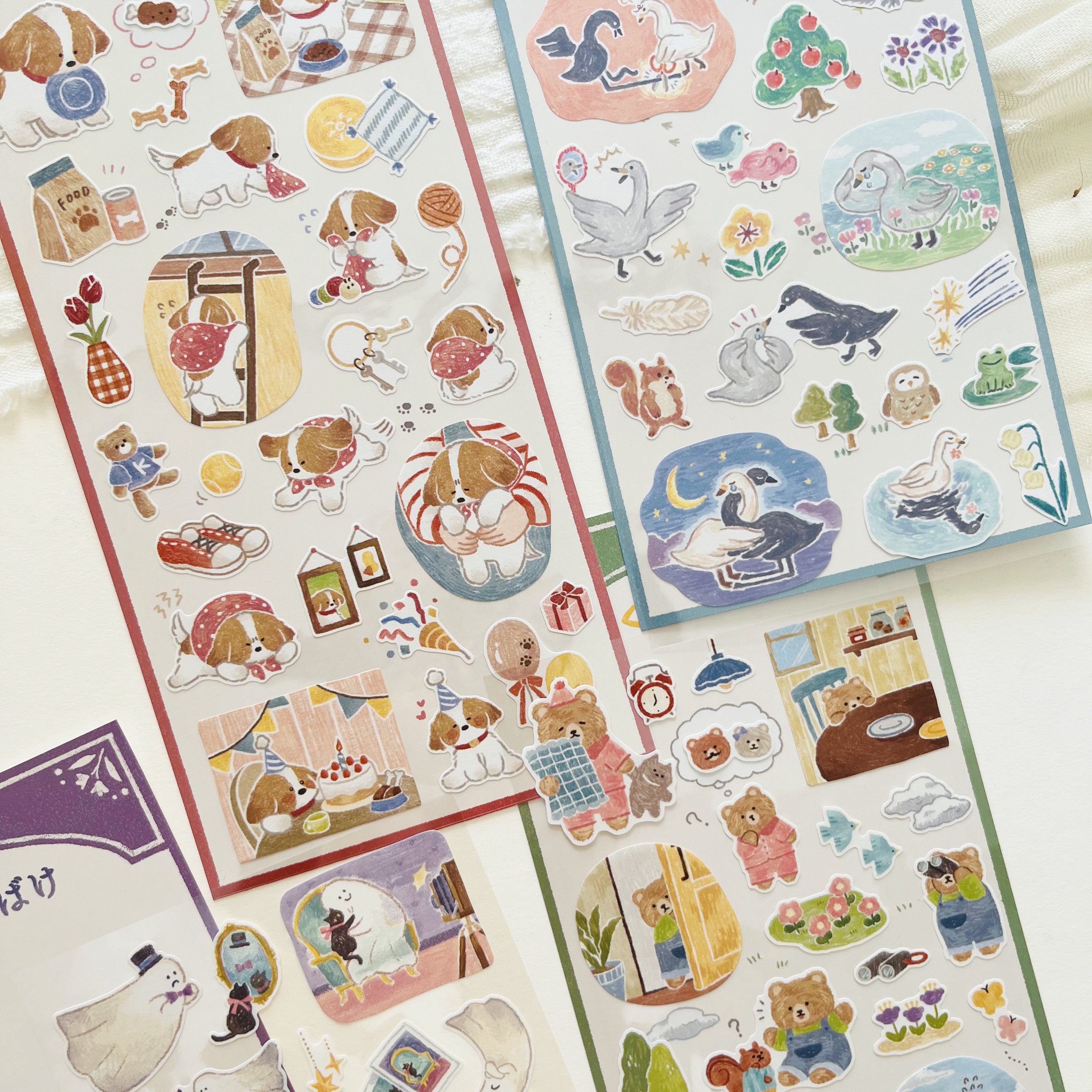 These picture book style stickers depict heartwarming stories with an analog touch!