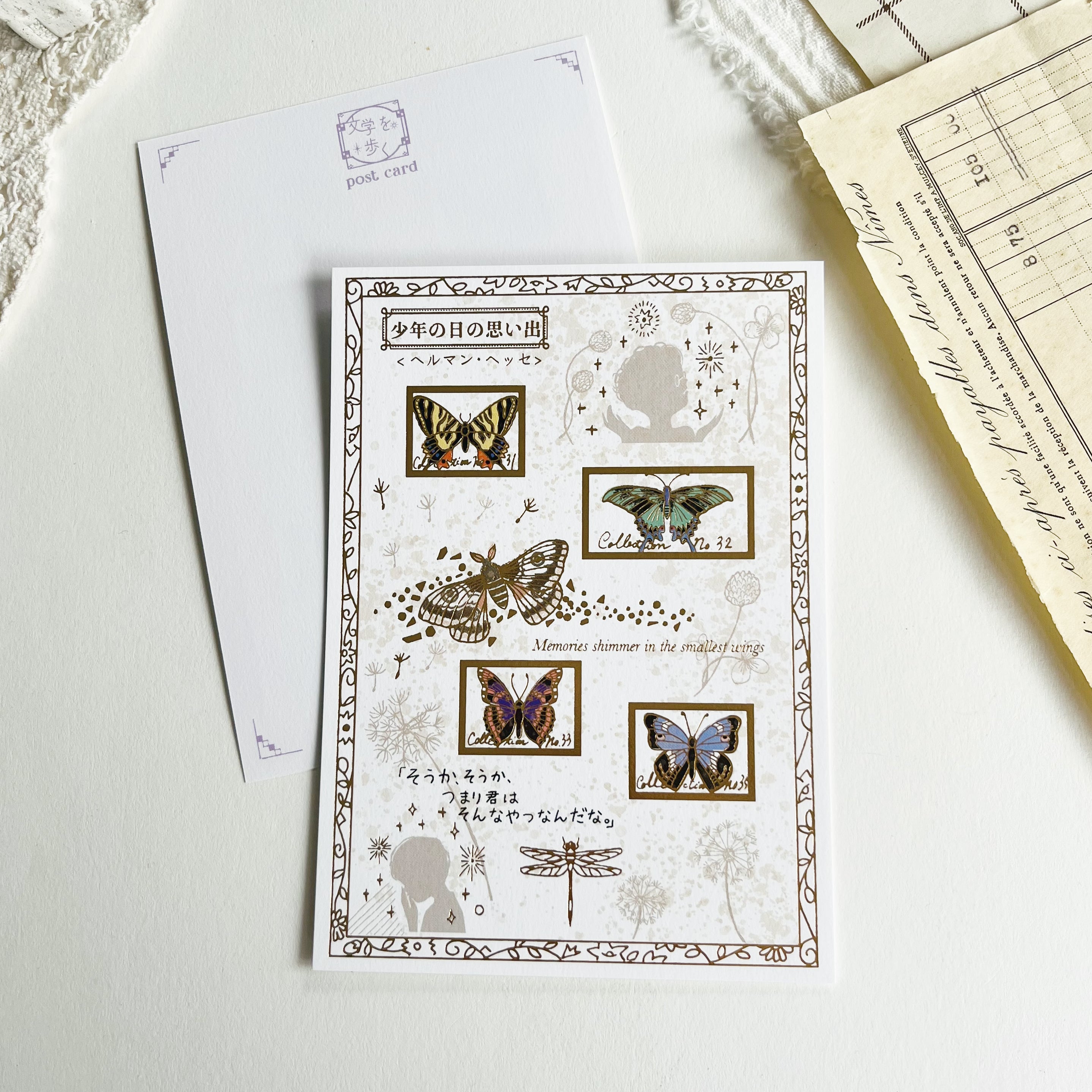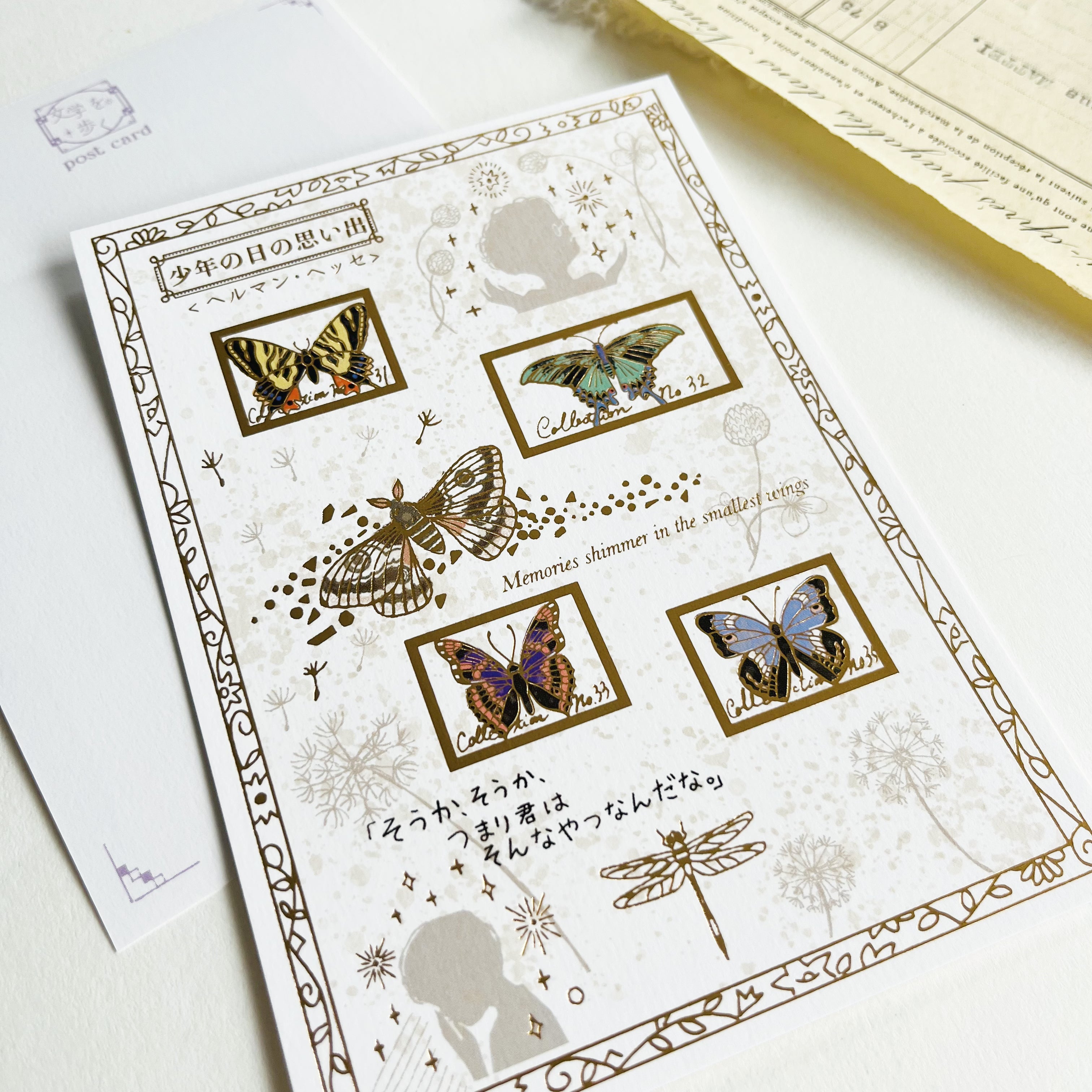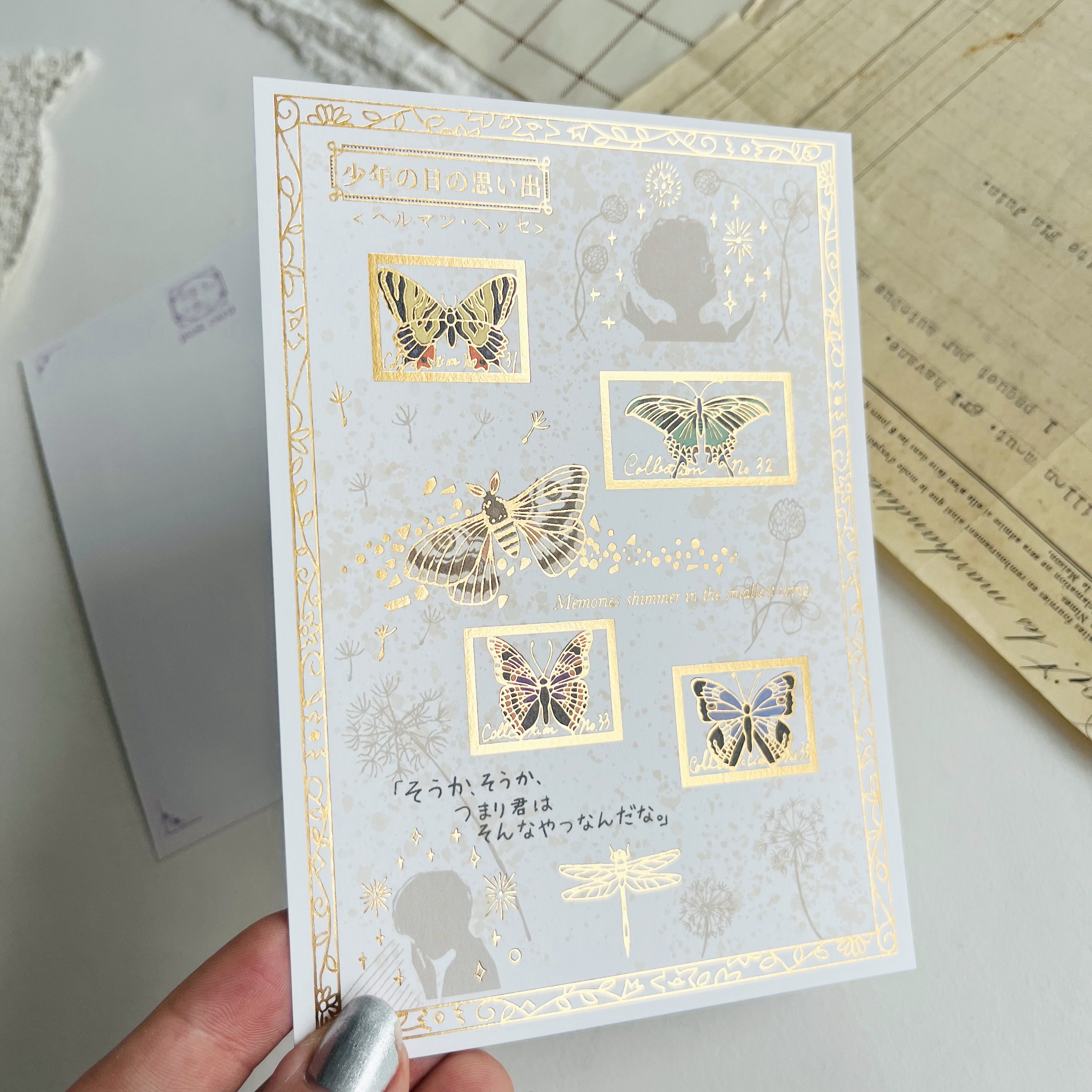 Shinzi Katoh Gold Foil Postcard - Boyhood Memories
