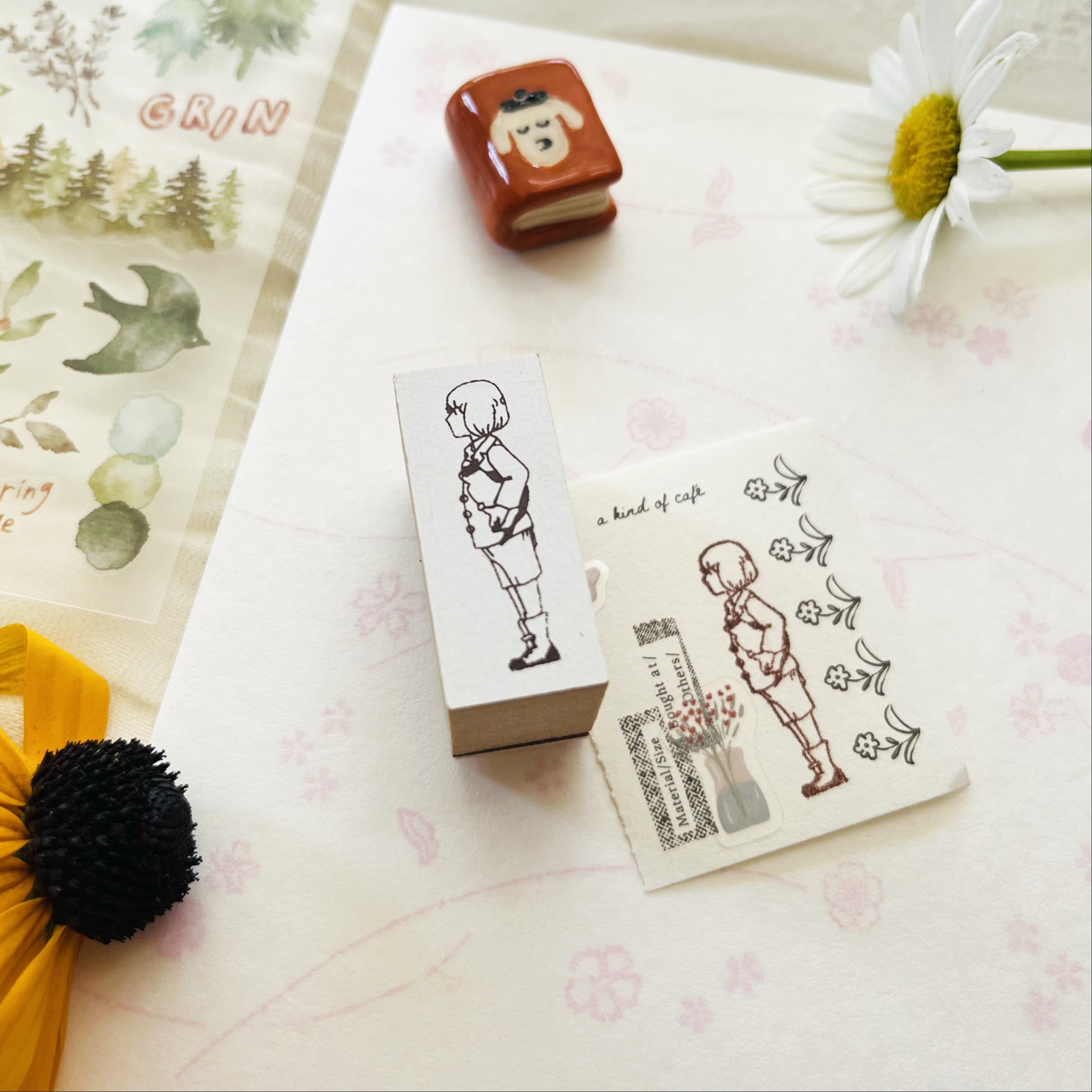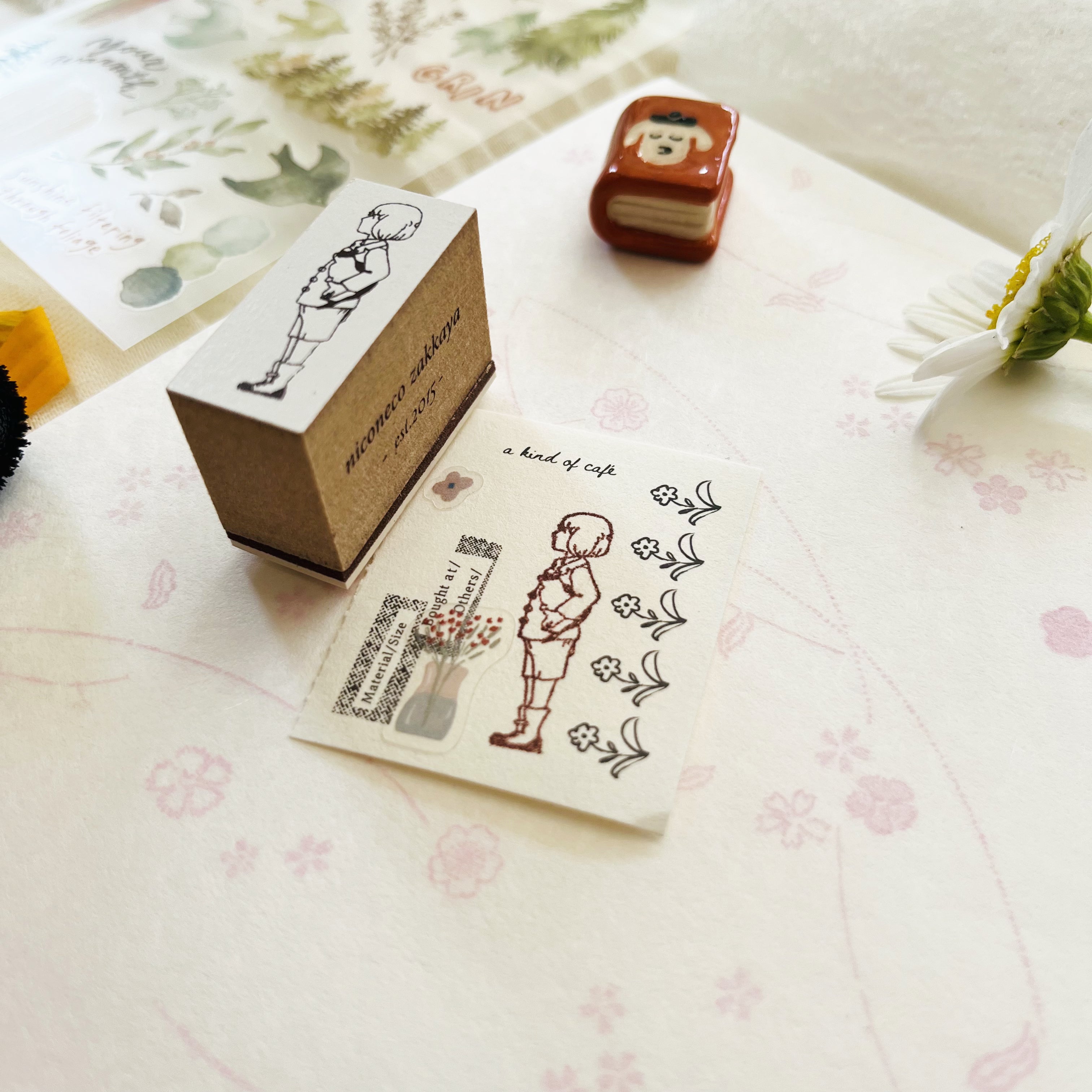 niconeco x Krimgen Rubber Stamp - Girl and Cat