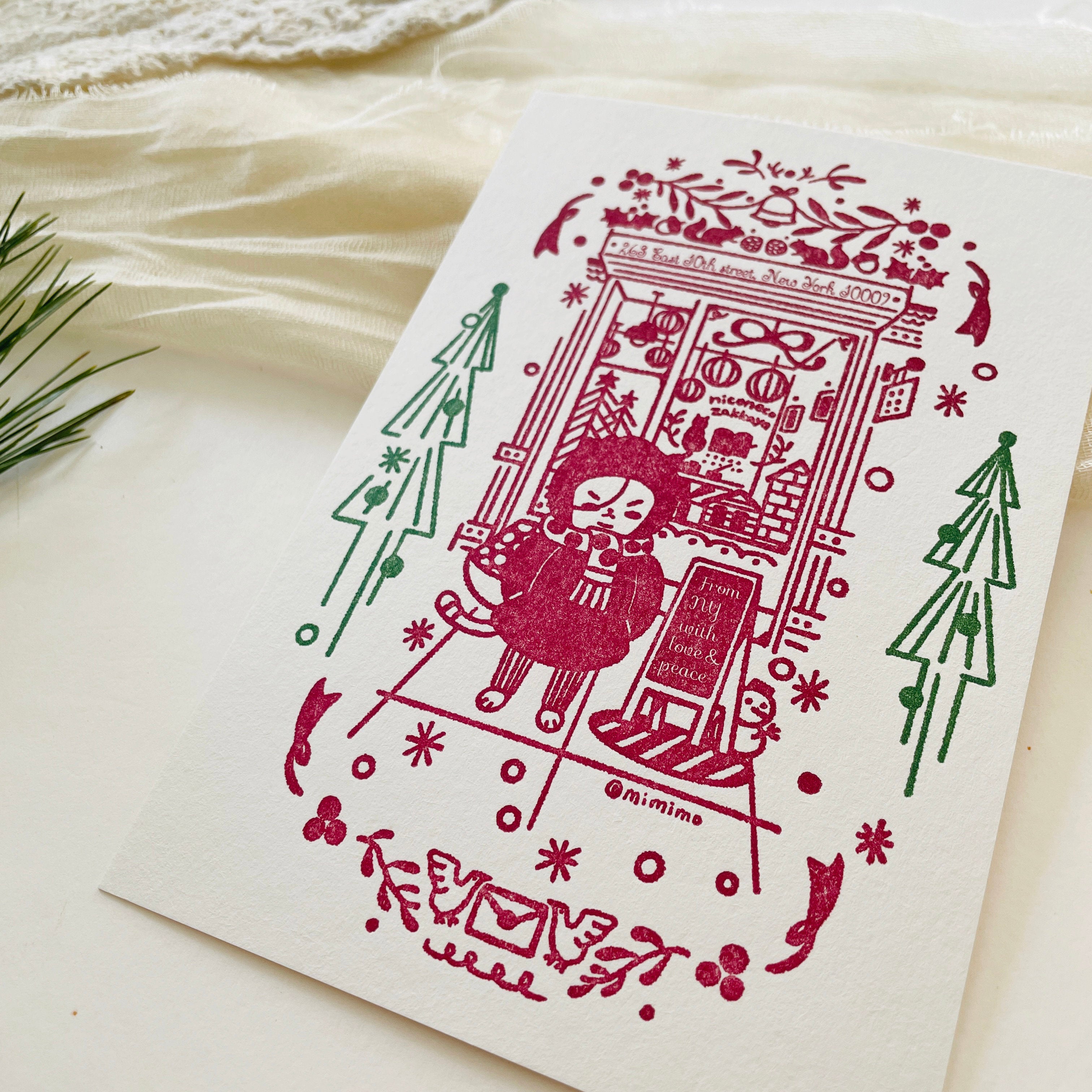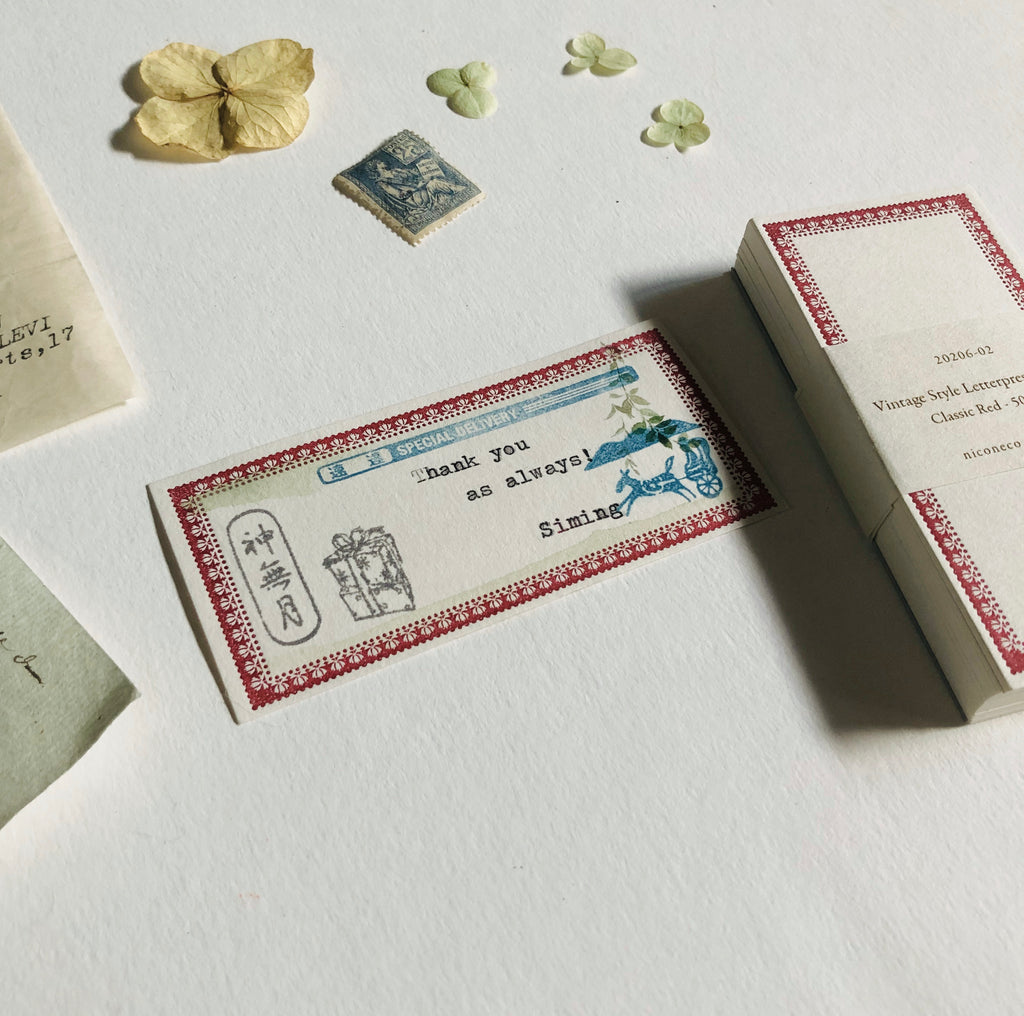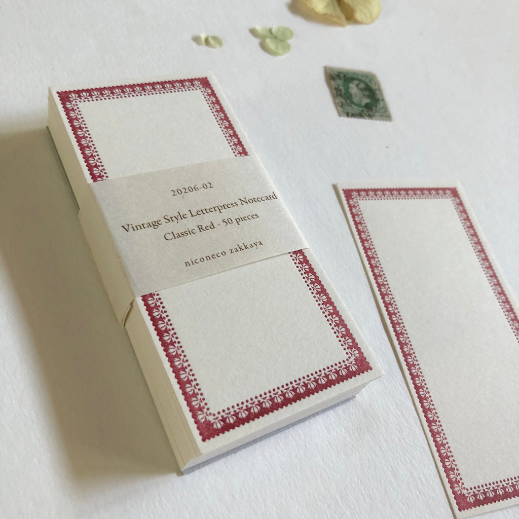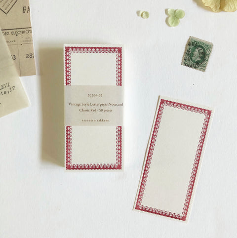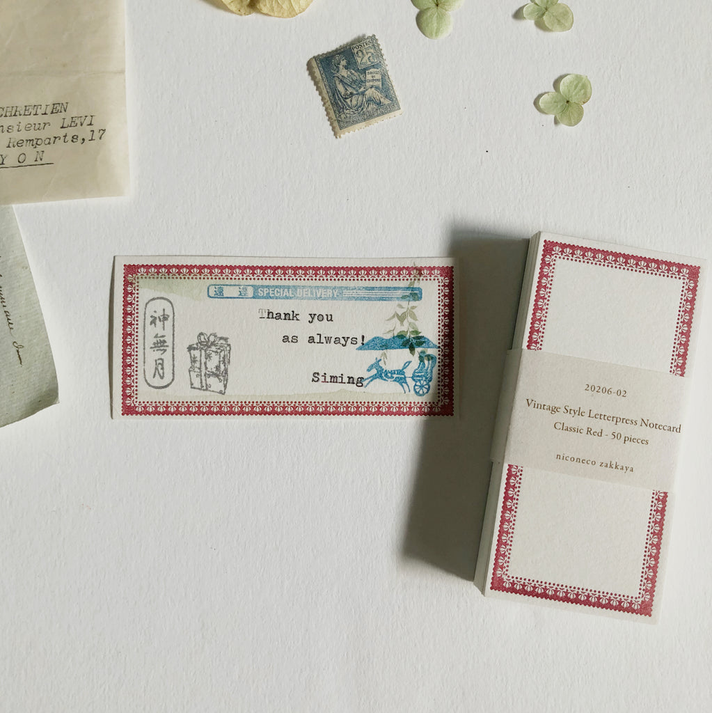 niconeco Vintage Style Letterpress Notecard - Classic Red