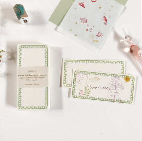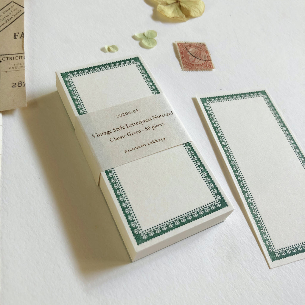 niconeco Vintage Style Letterpress Notecard - Classic Green