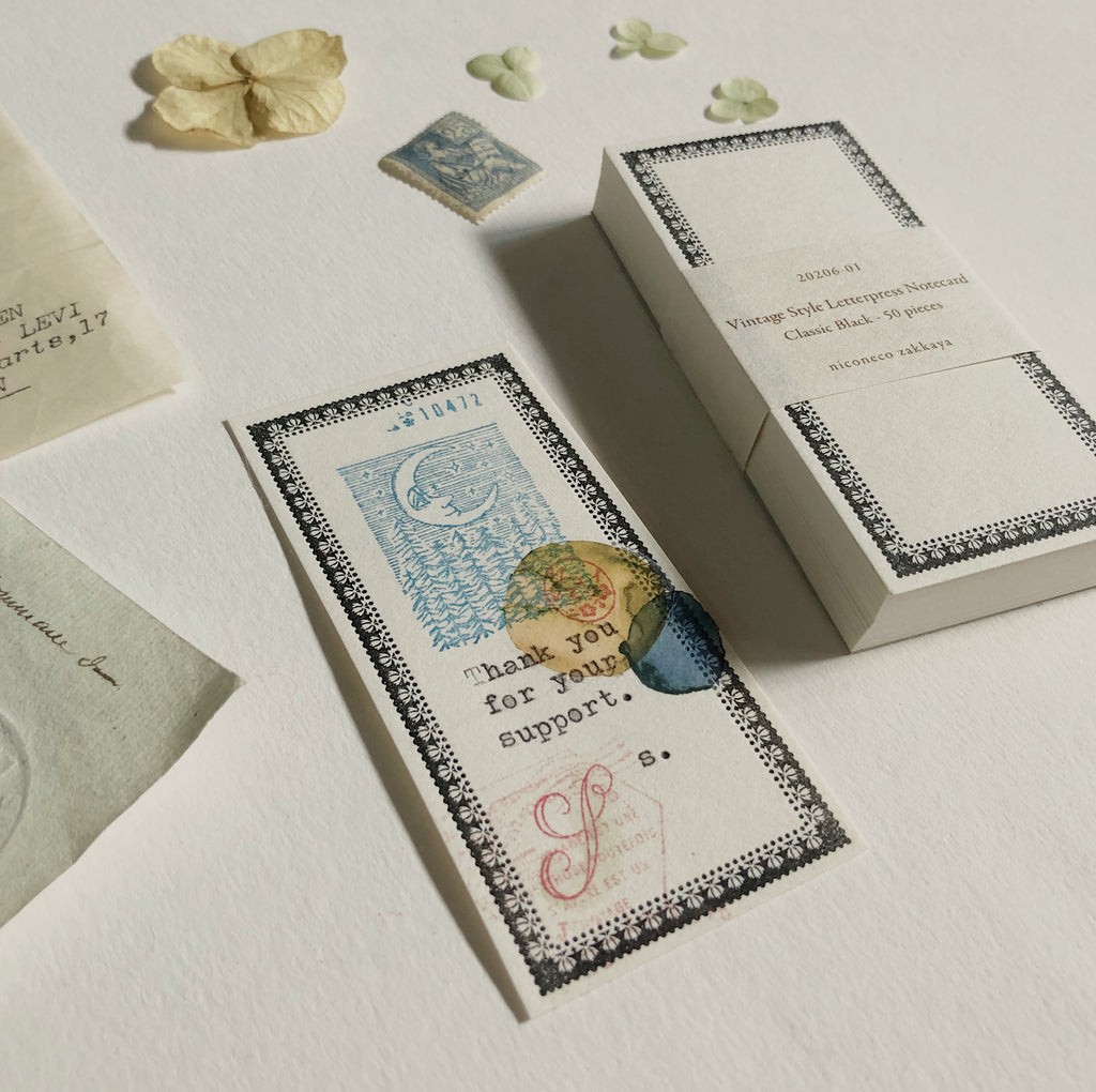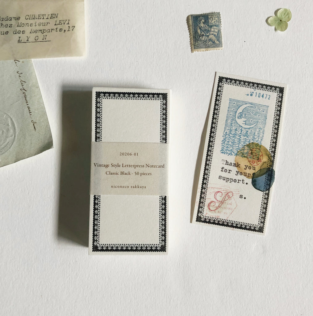niconeco Vintage Style Letterpress Notecard - Classic Black