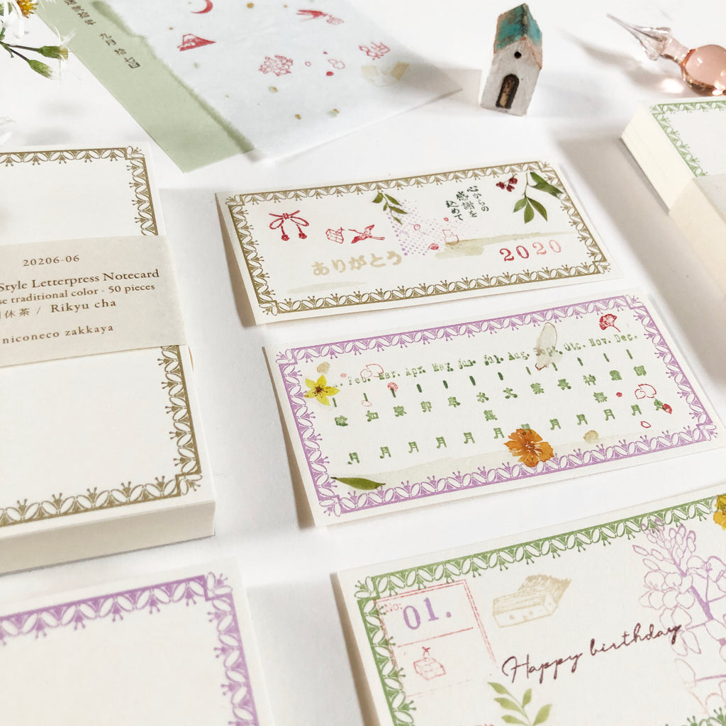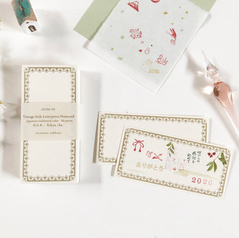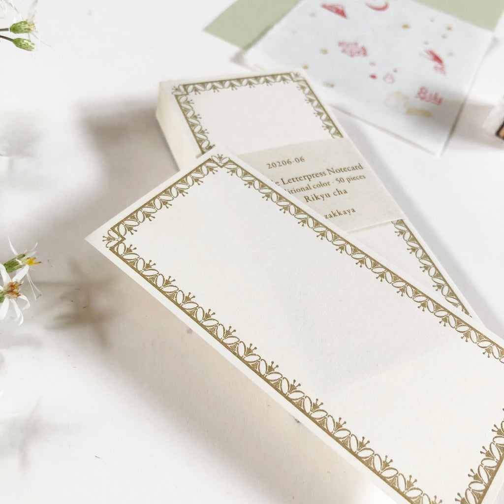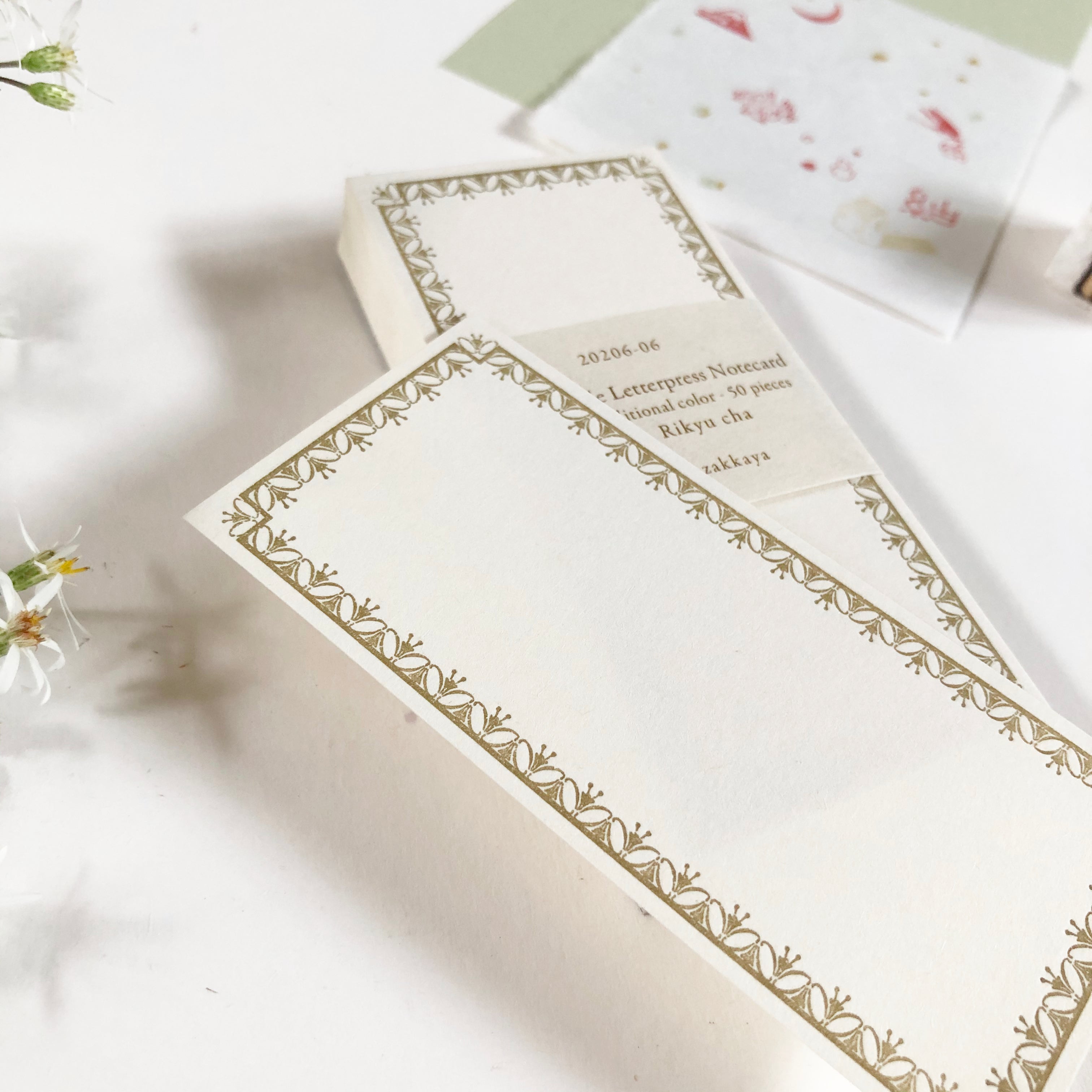 niconeco Japanese Color Letterpress Notecard - Rikyucha(利休茶)