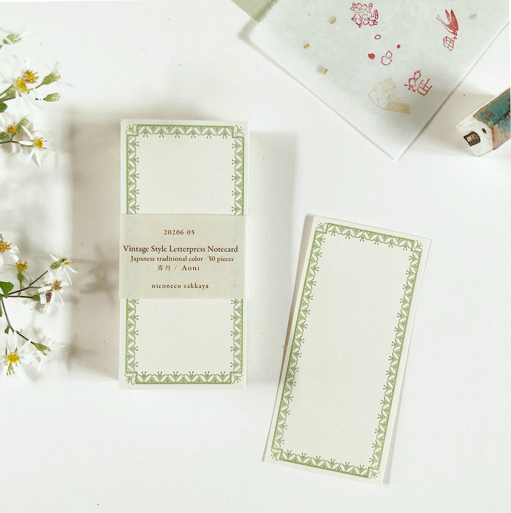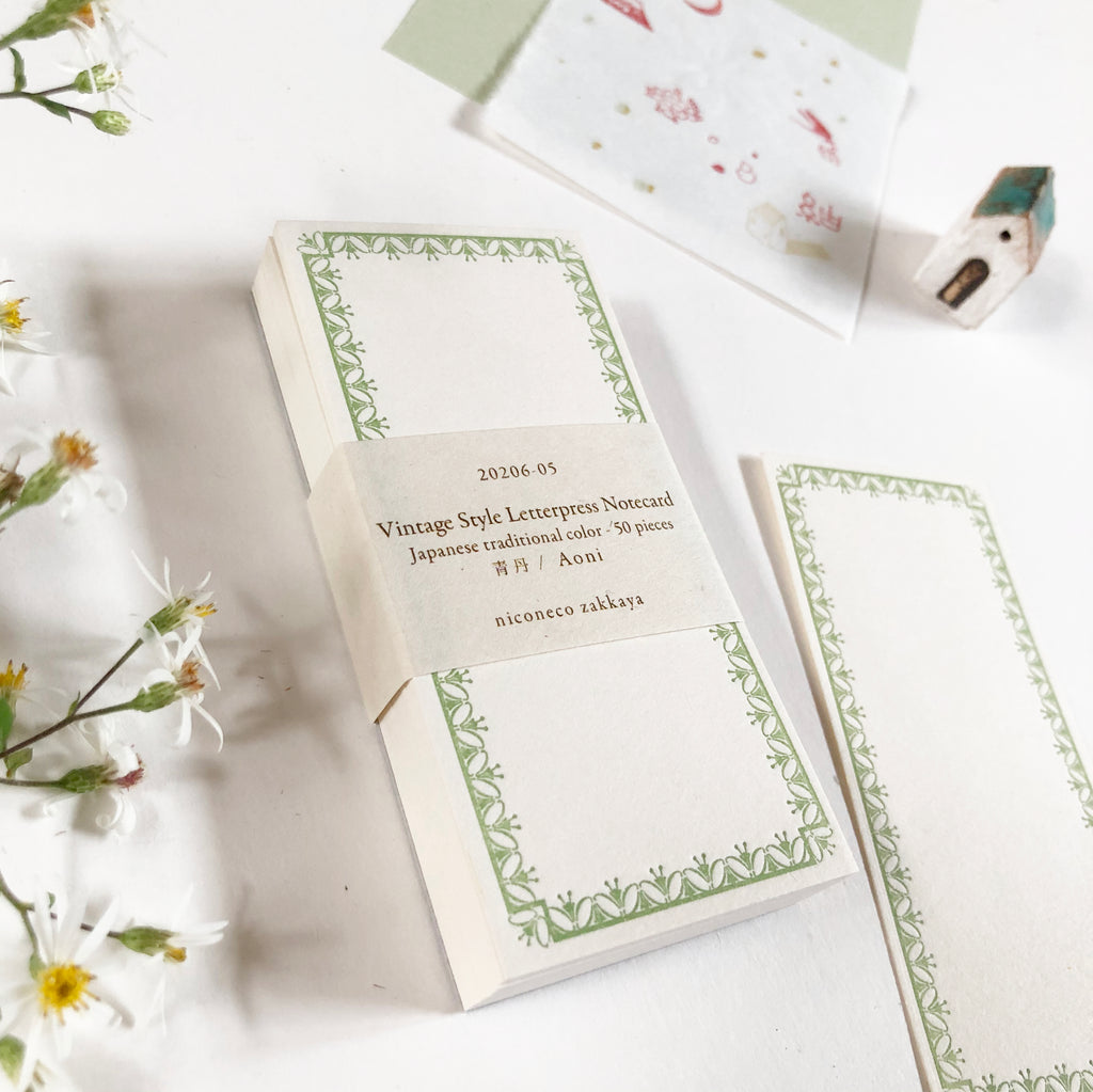 niconeco Japanese Color Letterpress Notecard - Aoni(青丹色)