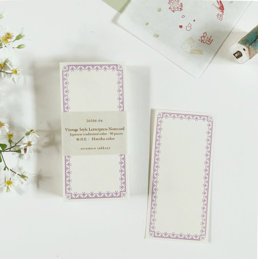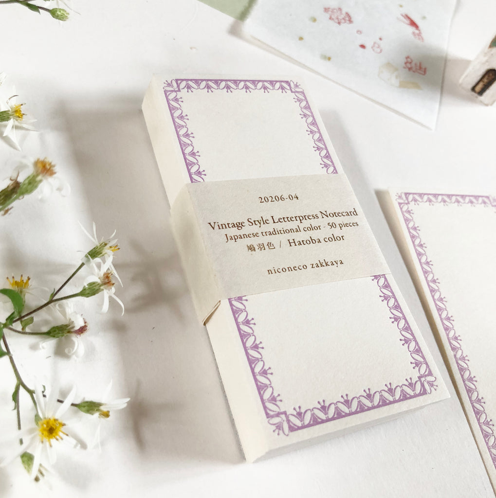 niconeco Japanese Color Letterpress Notecard - Hatoba(鳩羽色)