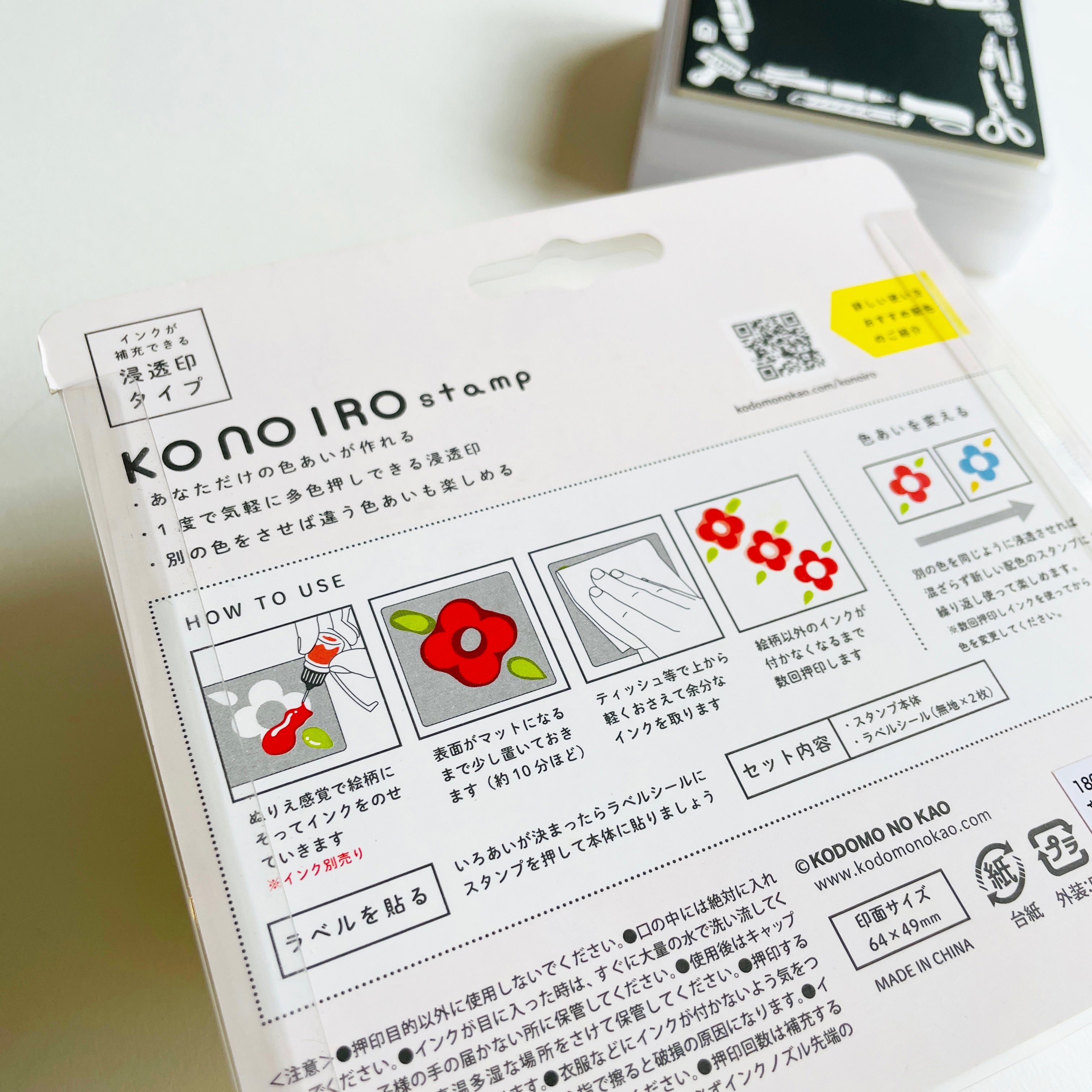 The Kodomo No Kao ink is available in 12 colors and each bottle comes with their own needle nose applicator and a convenient cap the attaches to the bottle. Each stamp also comes with (2) label stickers, so you can enjoy creating your own stamp labels.