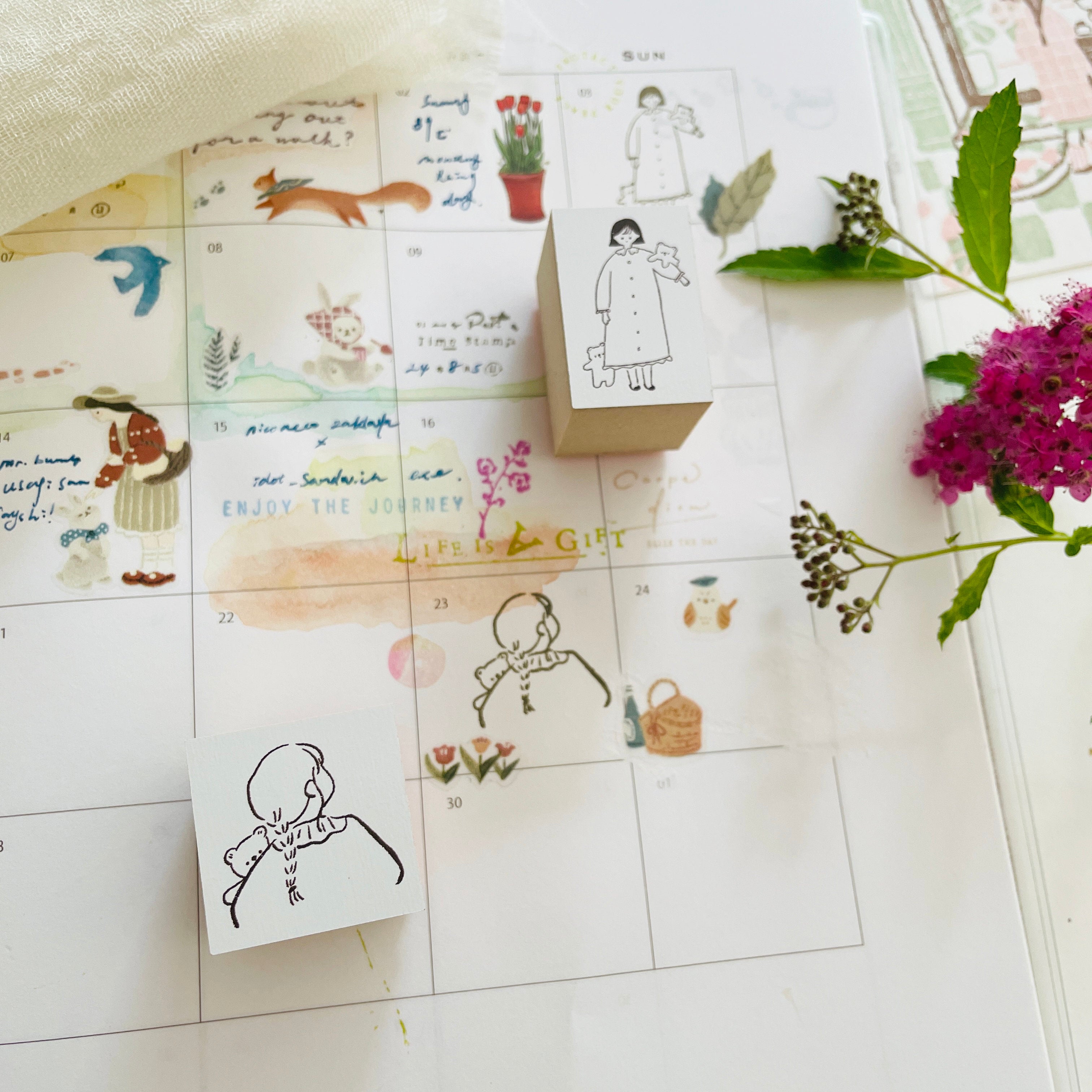 Ranmyu Twin Bear & Flower Vase Stamp
