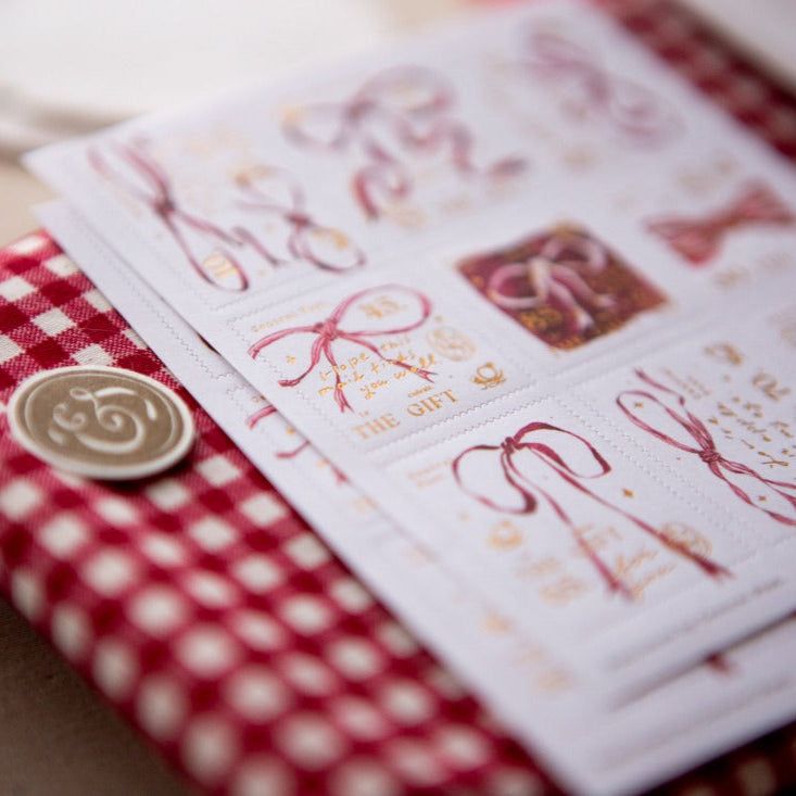OURS Ribbon Bow Postage Stamp Sticker
