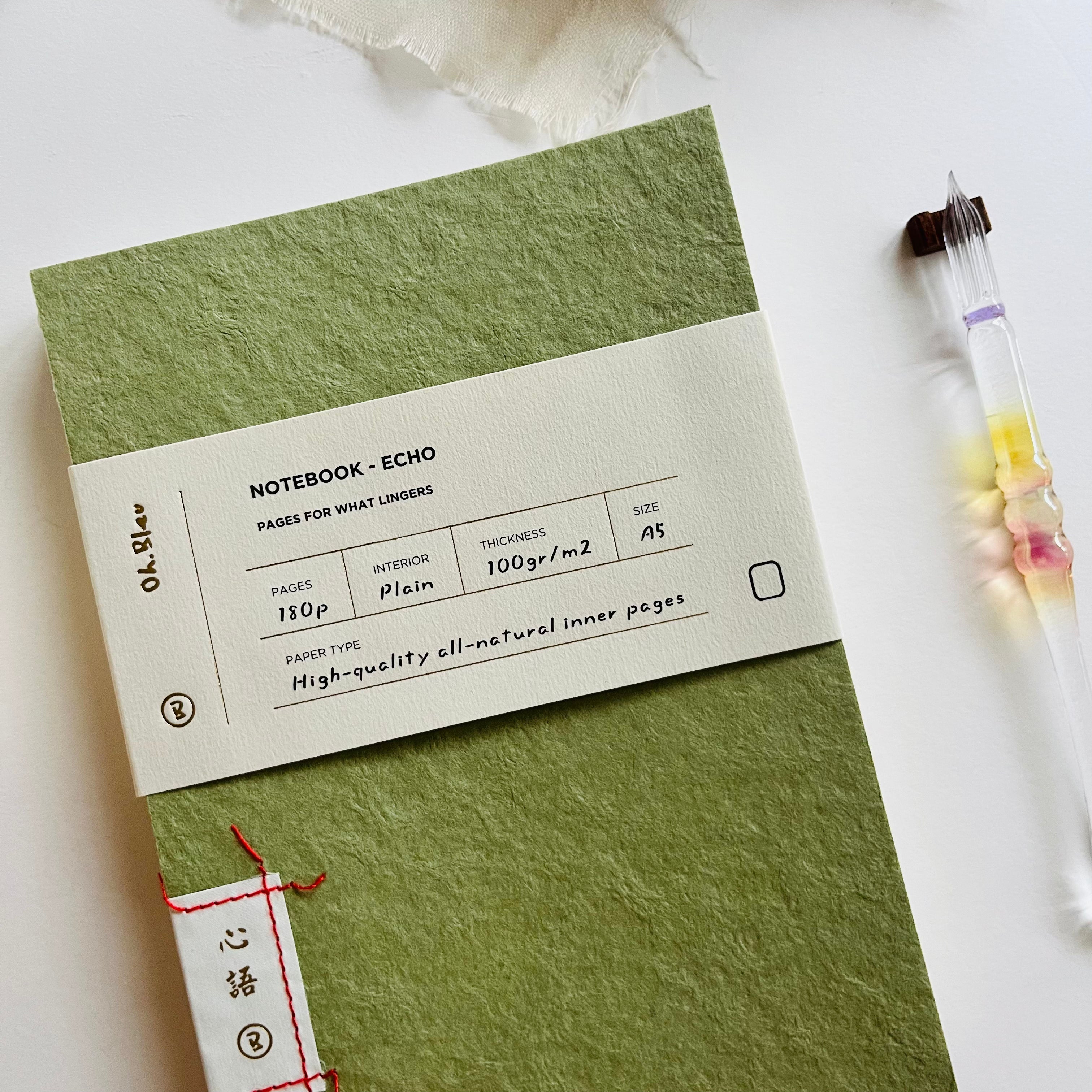 The Echo Series notebooks feature covers made from Dongba paper, a traditional handmade paper of the Naxi ethnic minority in Yunnan, China. Historically, this paper was used for writing sacred texts and preserving cultural records.