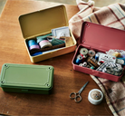 • Interlocking imprints for secure stacking; useful for art supplies or tea