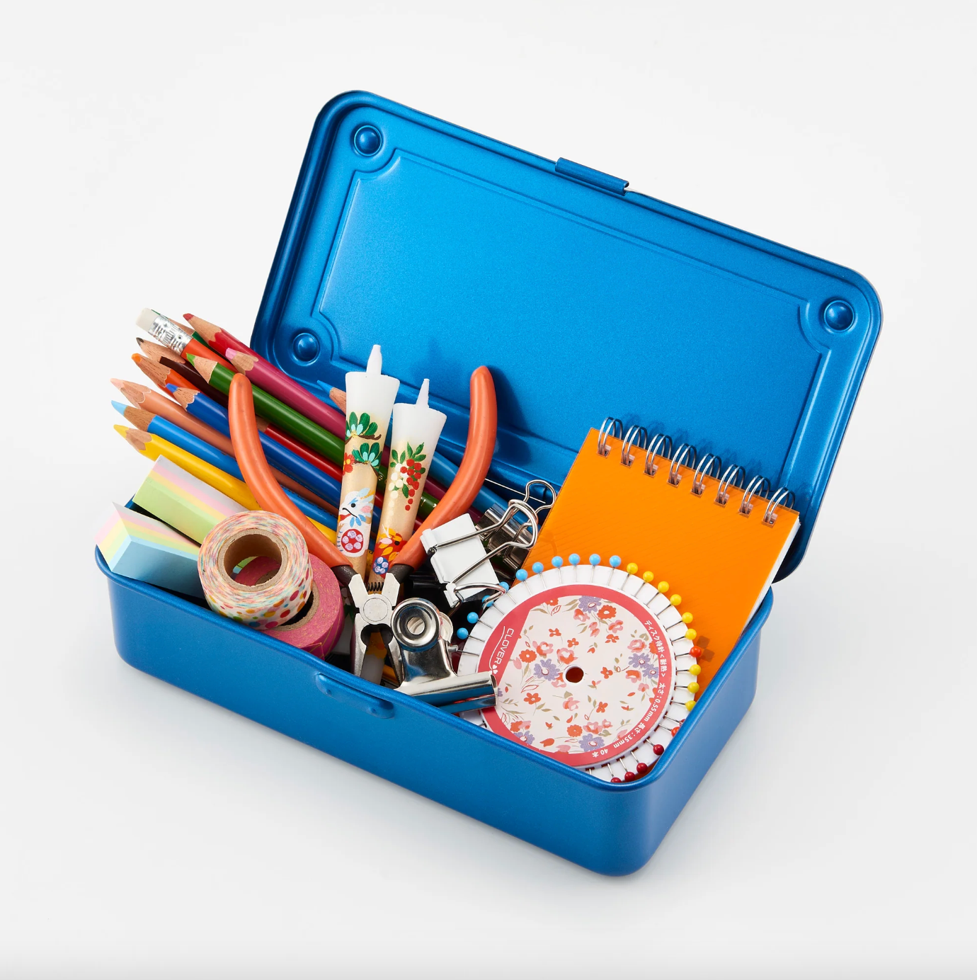 Crafted from a single seamless piece of pressed steel, this compact TOYOSTEEL toolbox is exceptionally durable while remaining lightweight and easy to handle.
