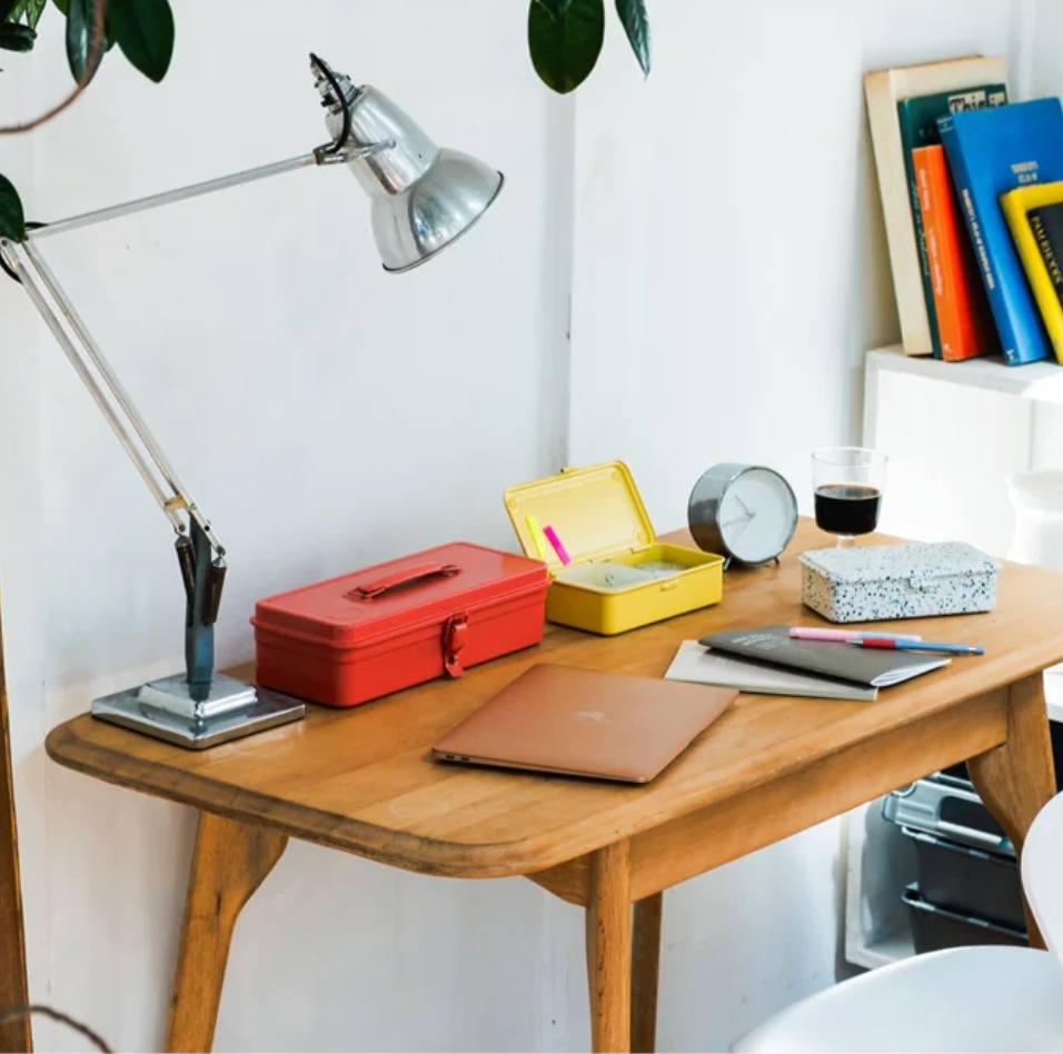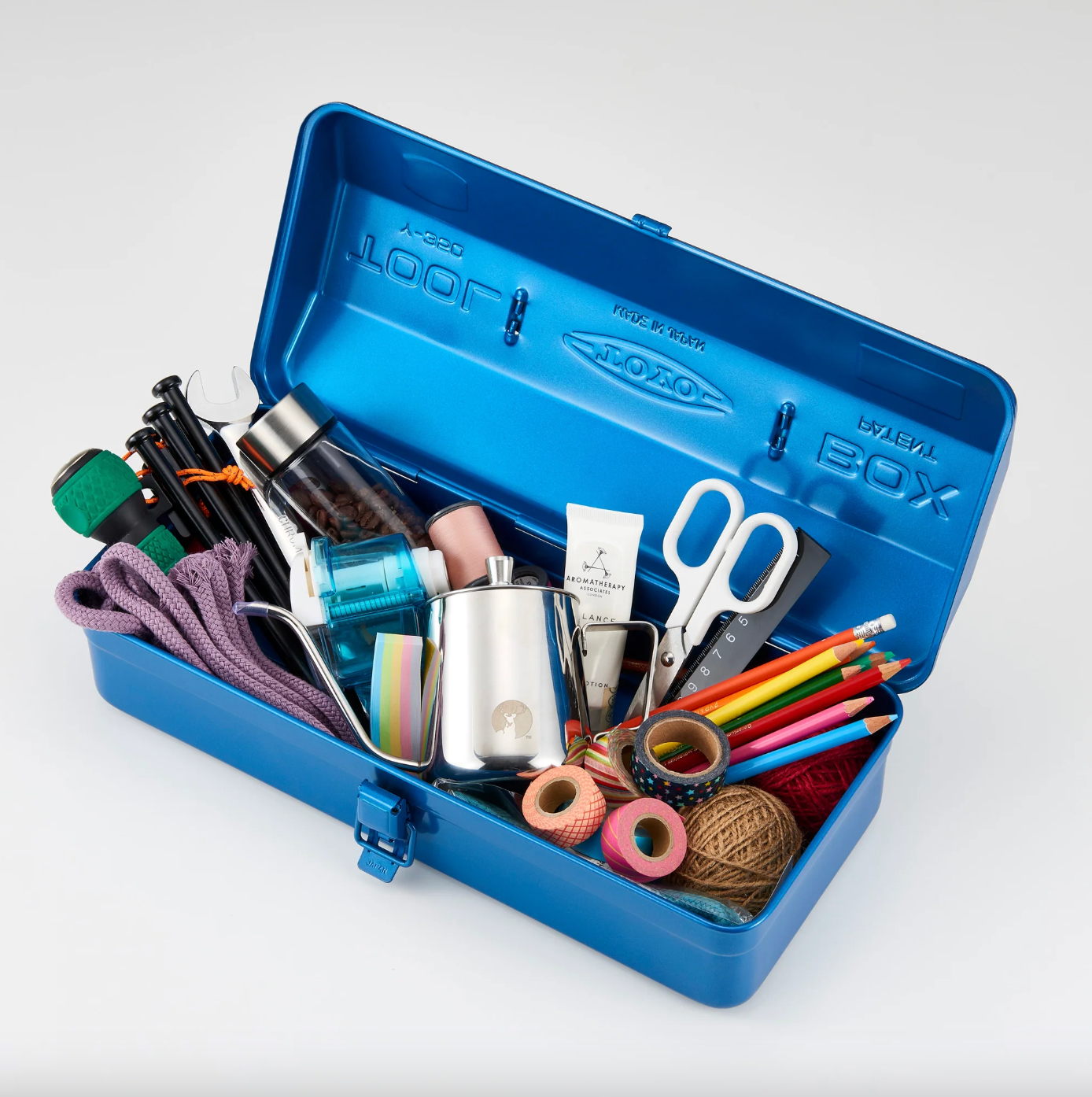 Stamped from a single piece of steel, this streamlined toolbox features a flat lid and a top extendable handle for portability and strength. With its seamless, watertight build and no sharp edges, it’s durable, safe, and endlessly versatile—perfect for tools, art supplies, cosmetics, and more.