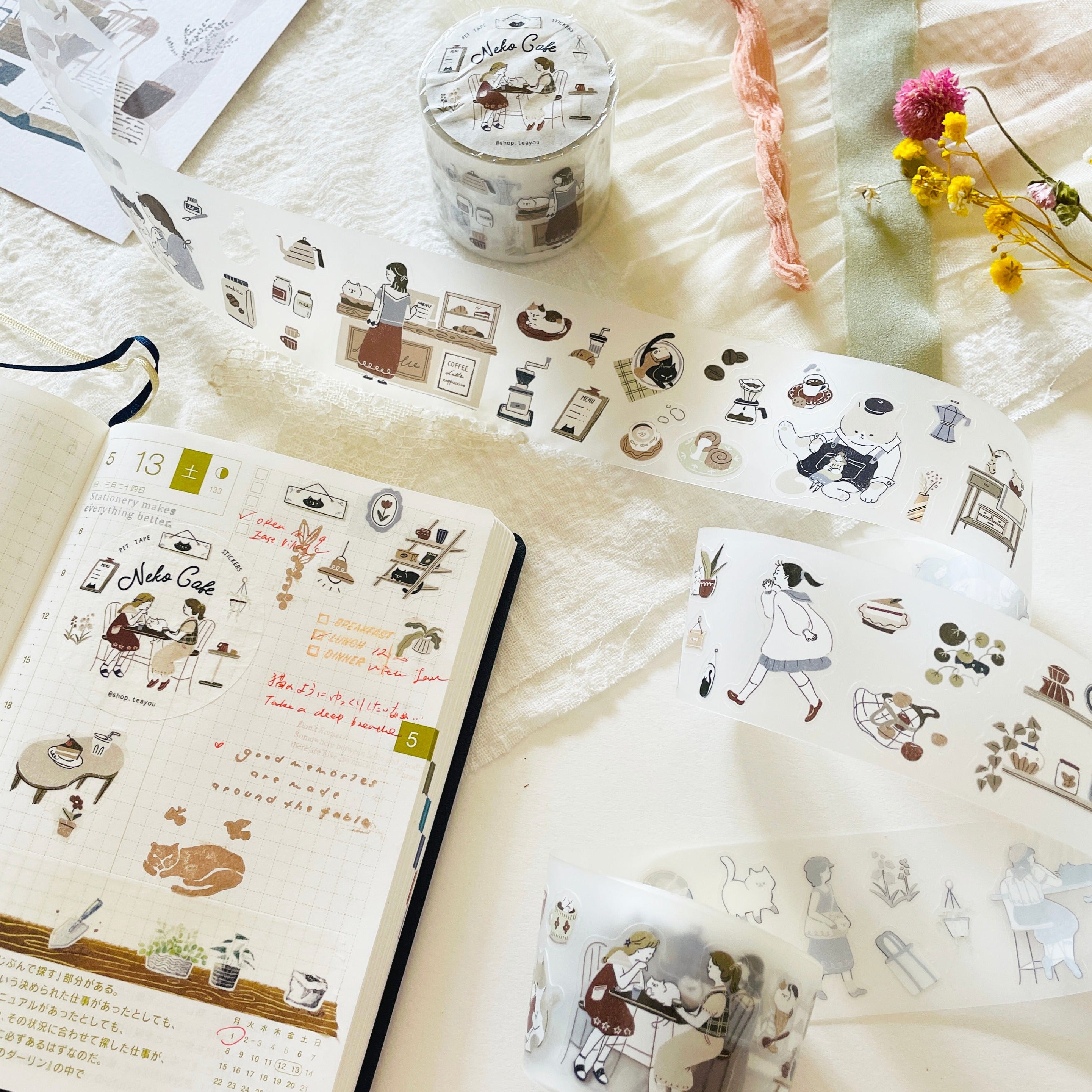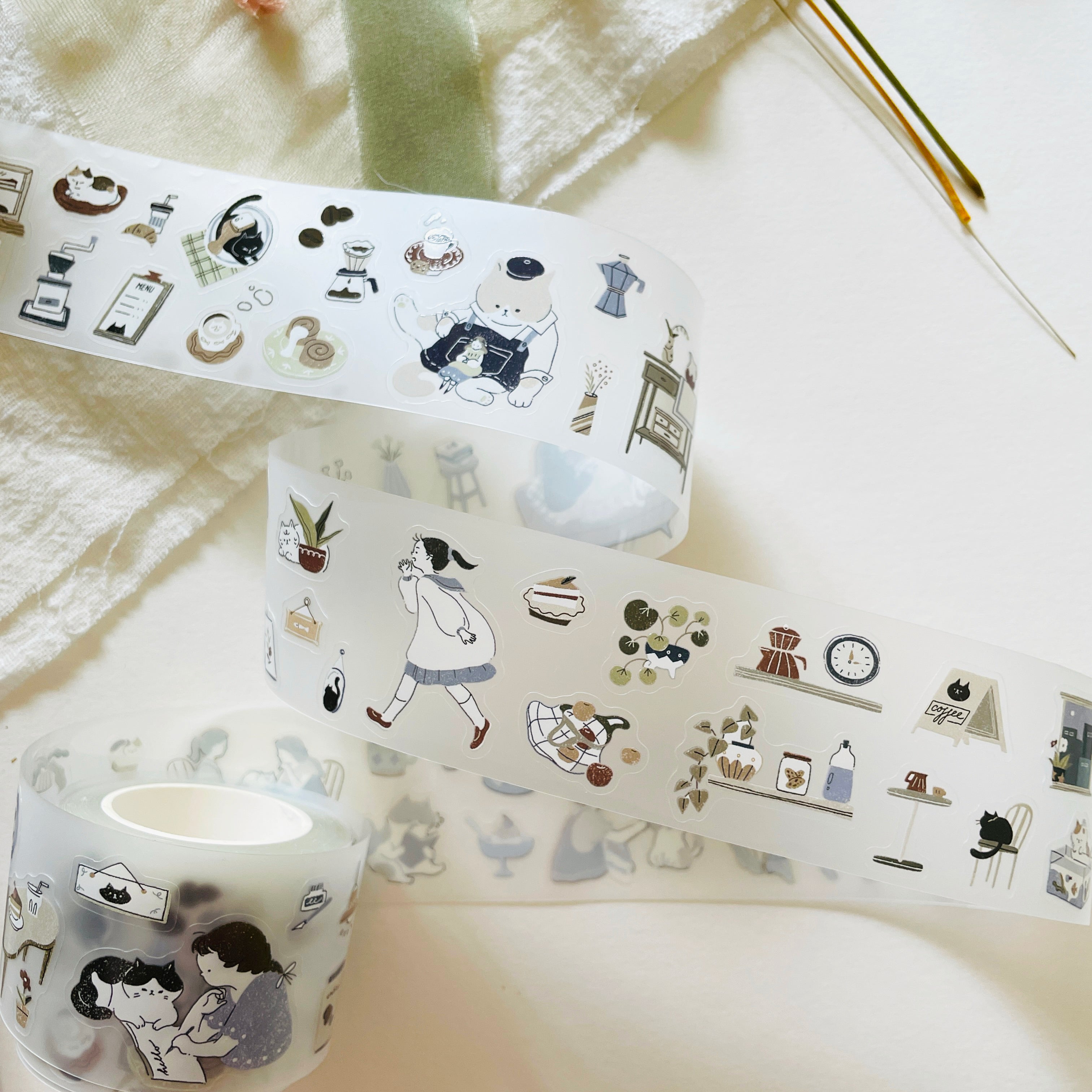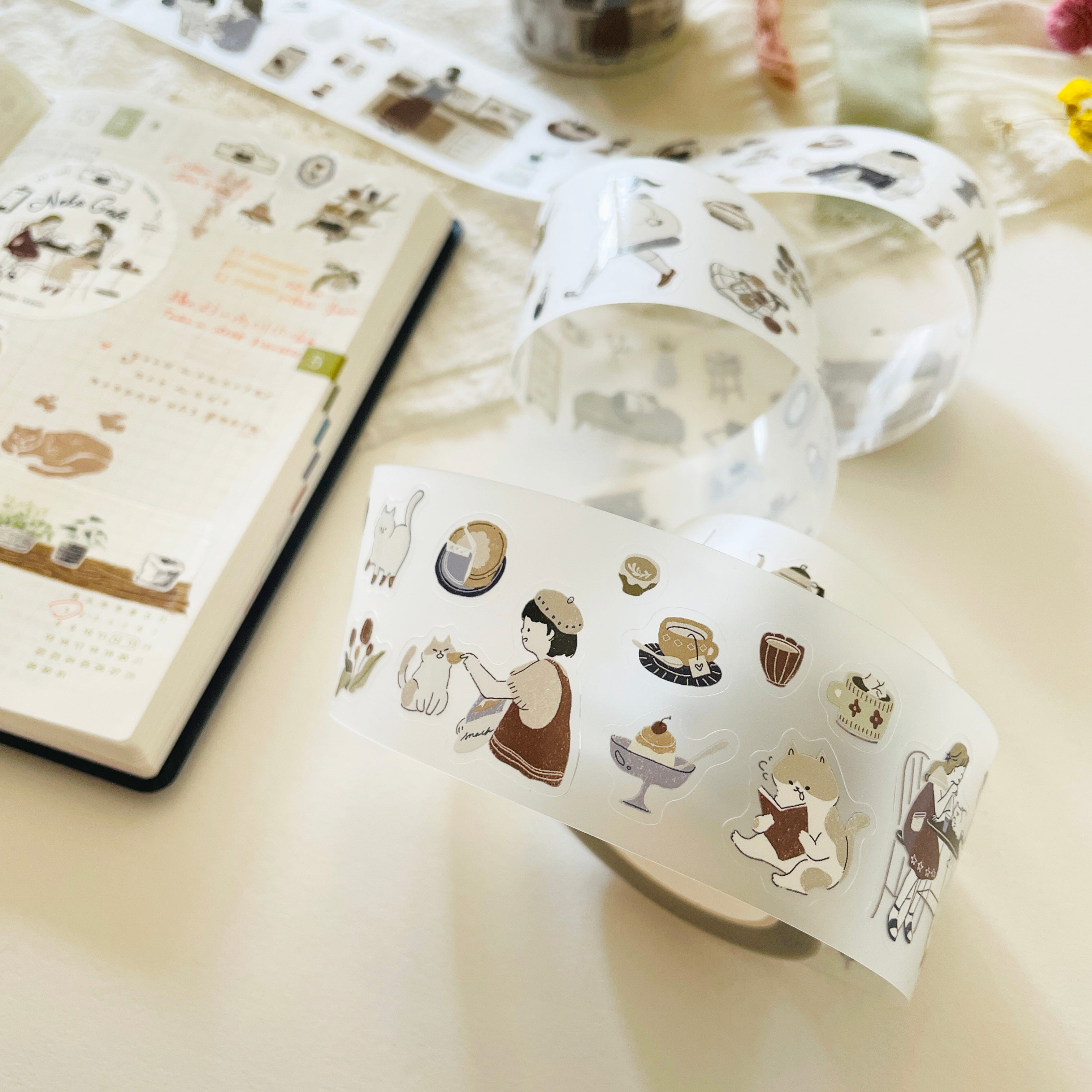 Teayou Kiss-Cut Matte PET Tape - Neko Cafe