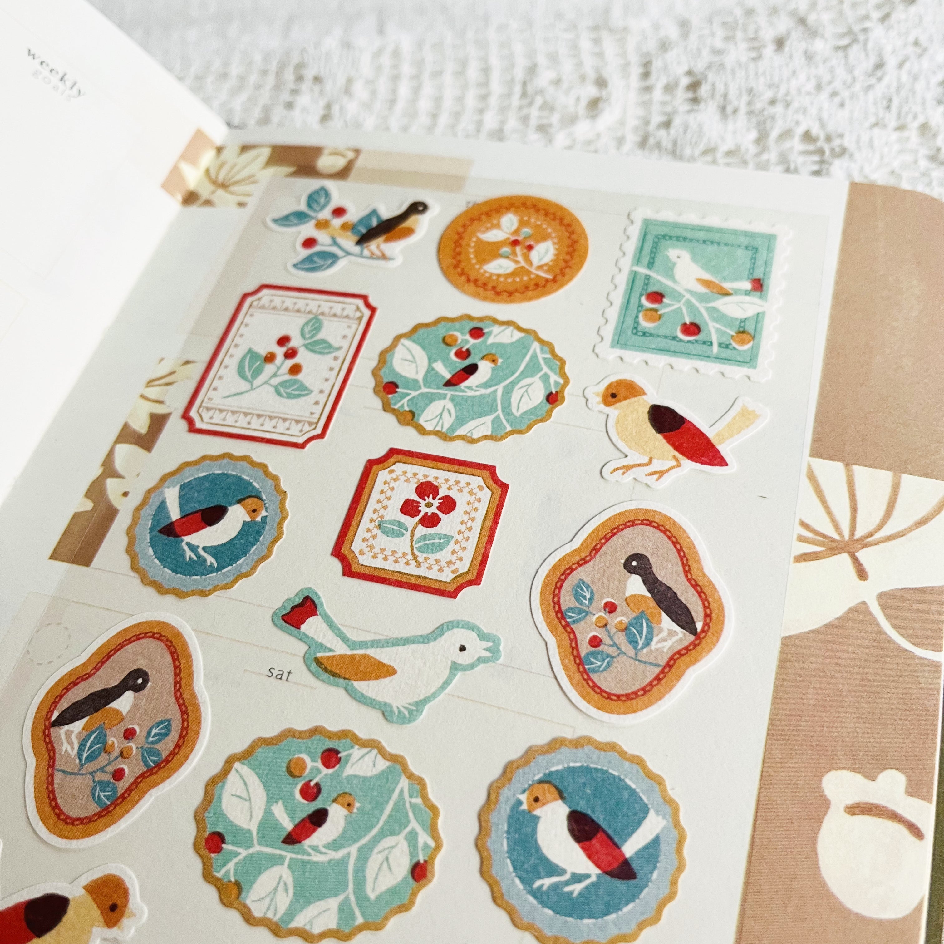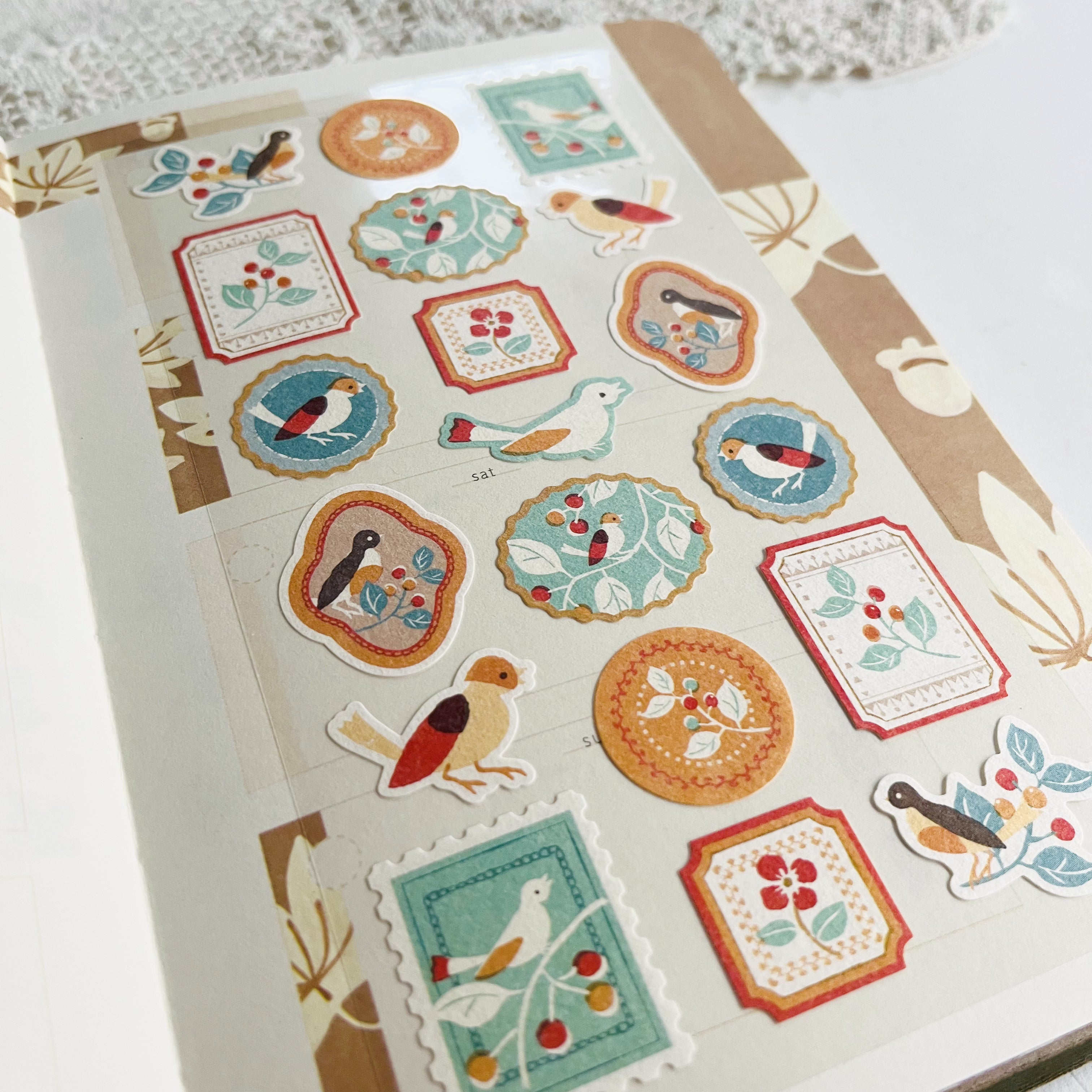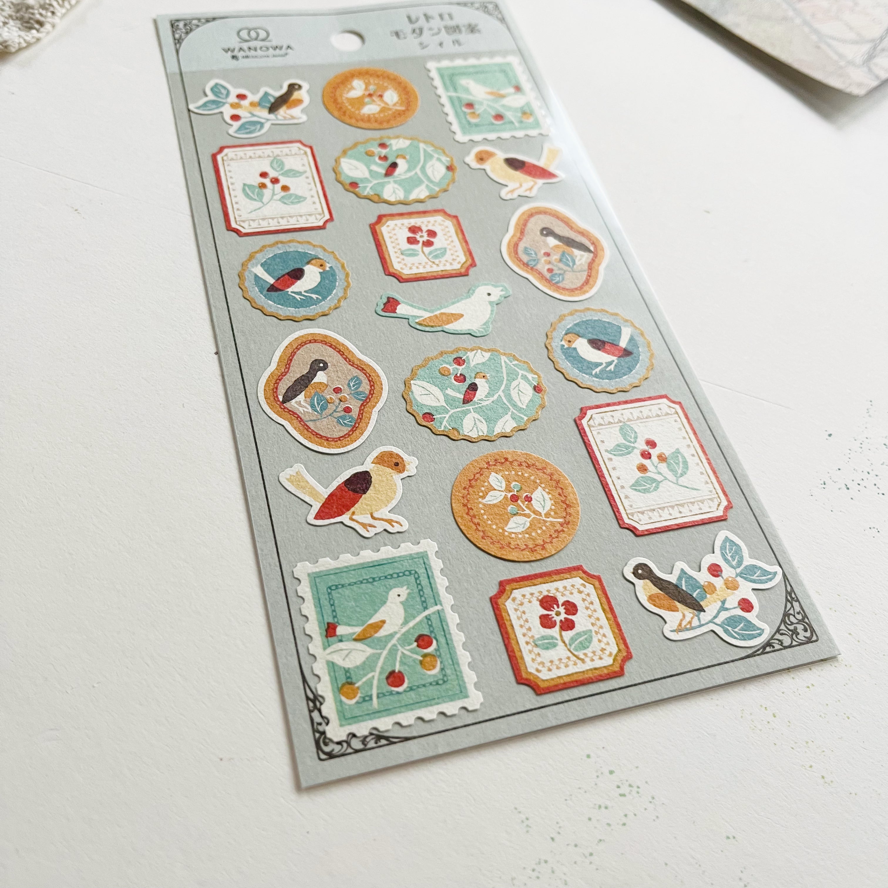 WANOWA Retro Modern Sticker Seal - Bird and Fruit