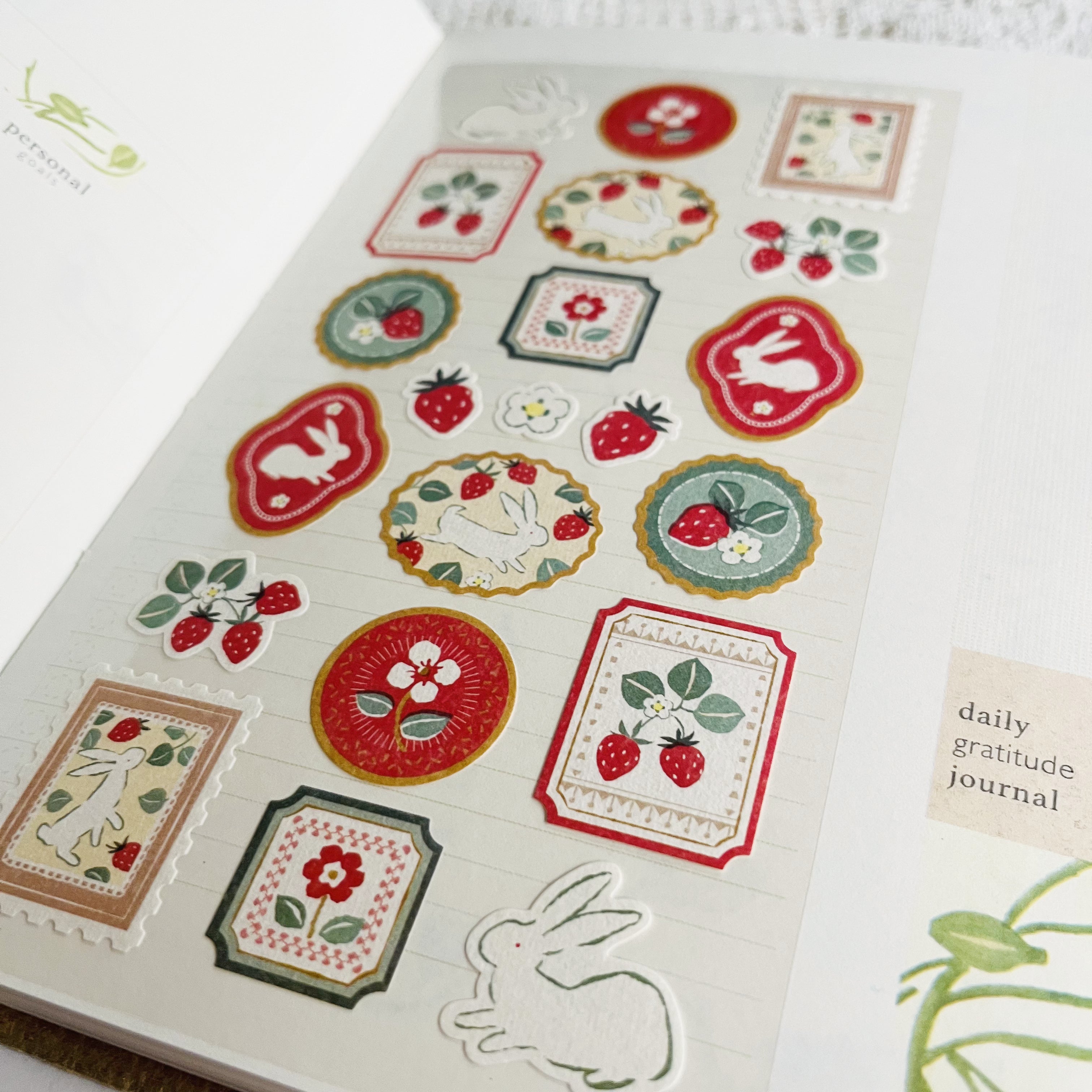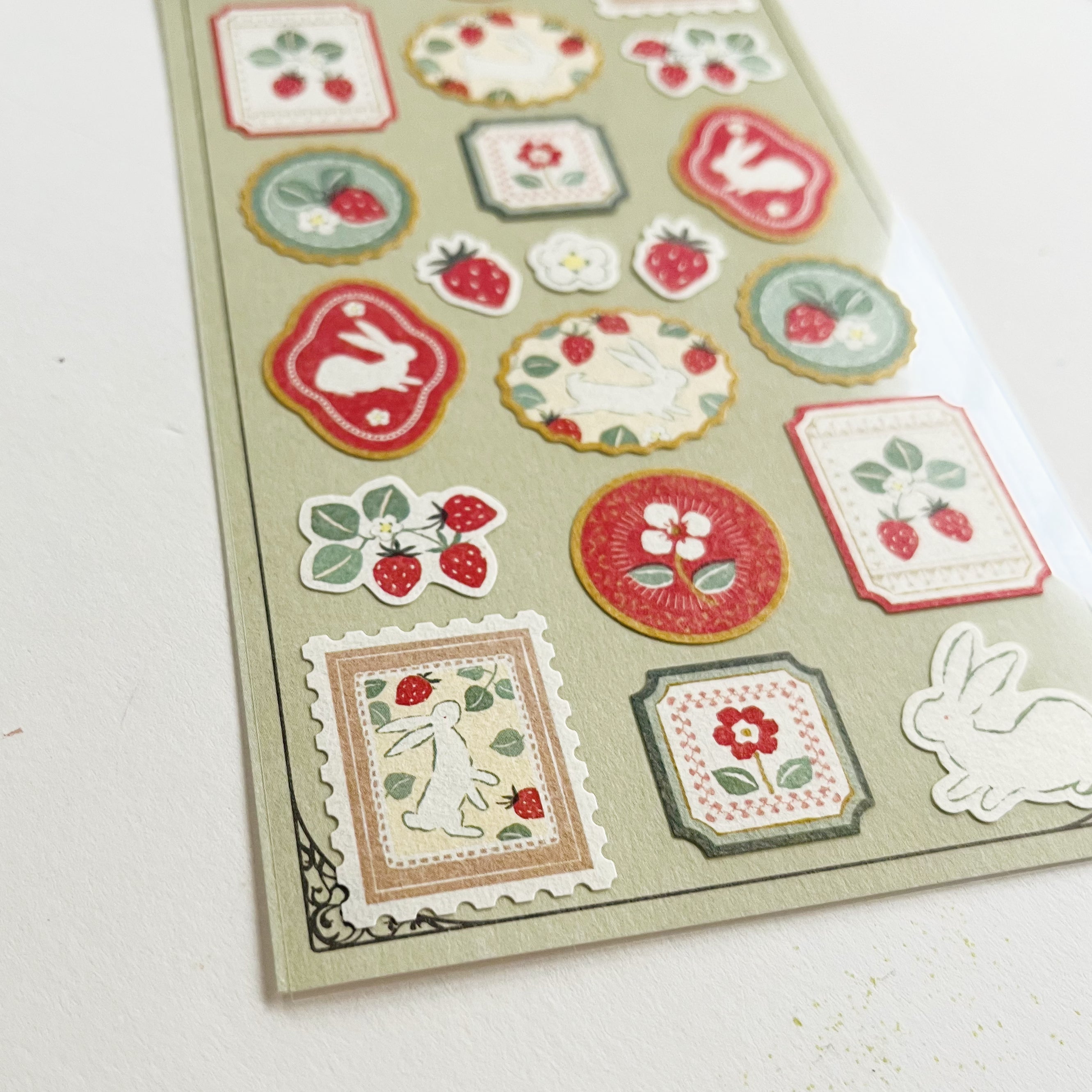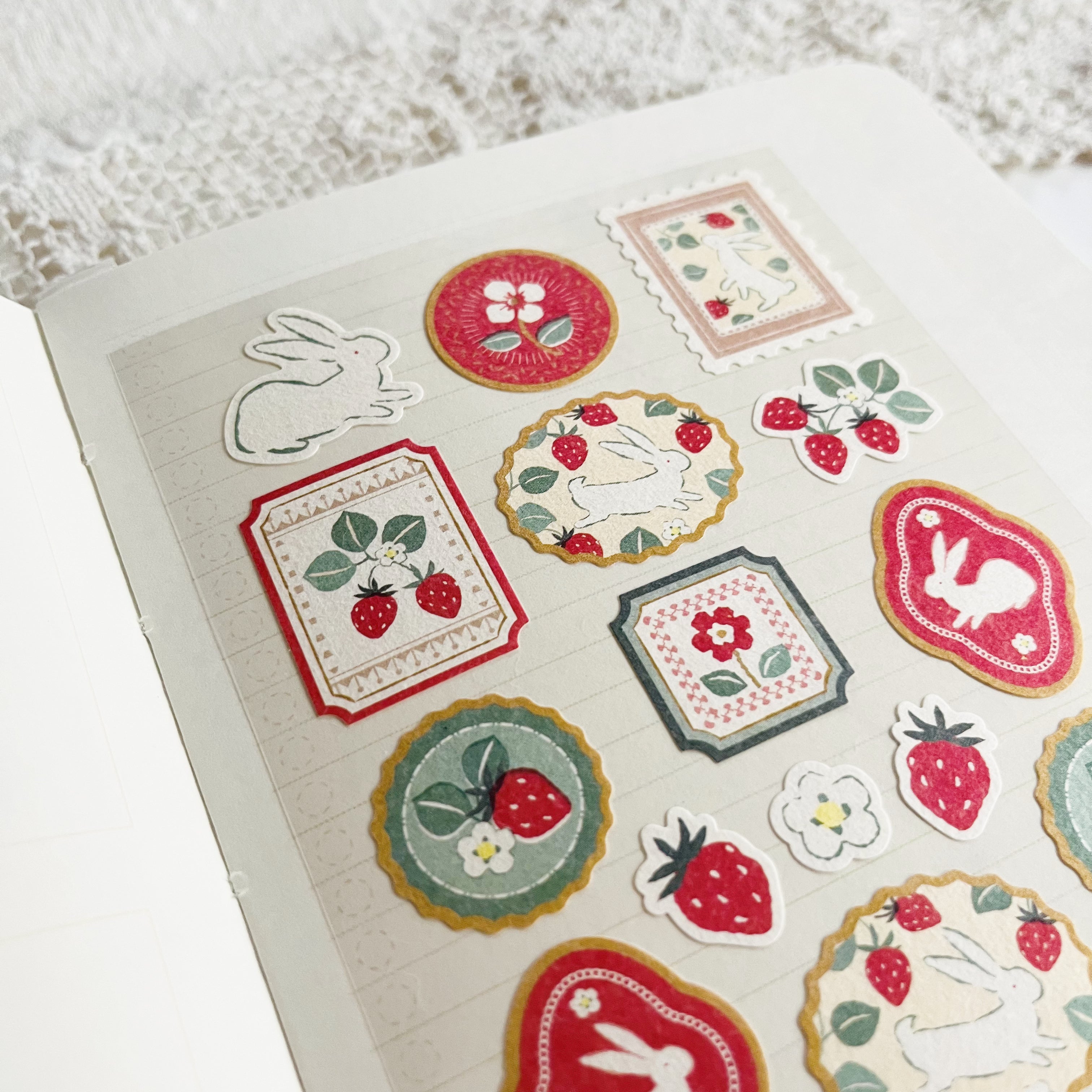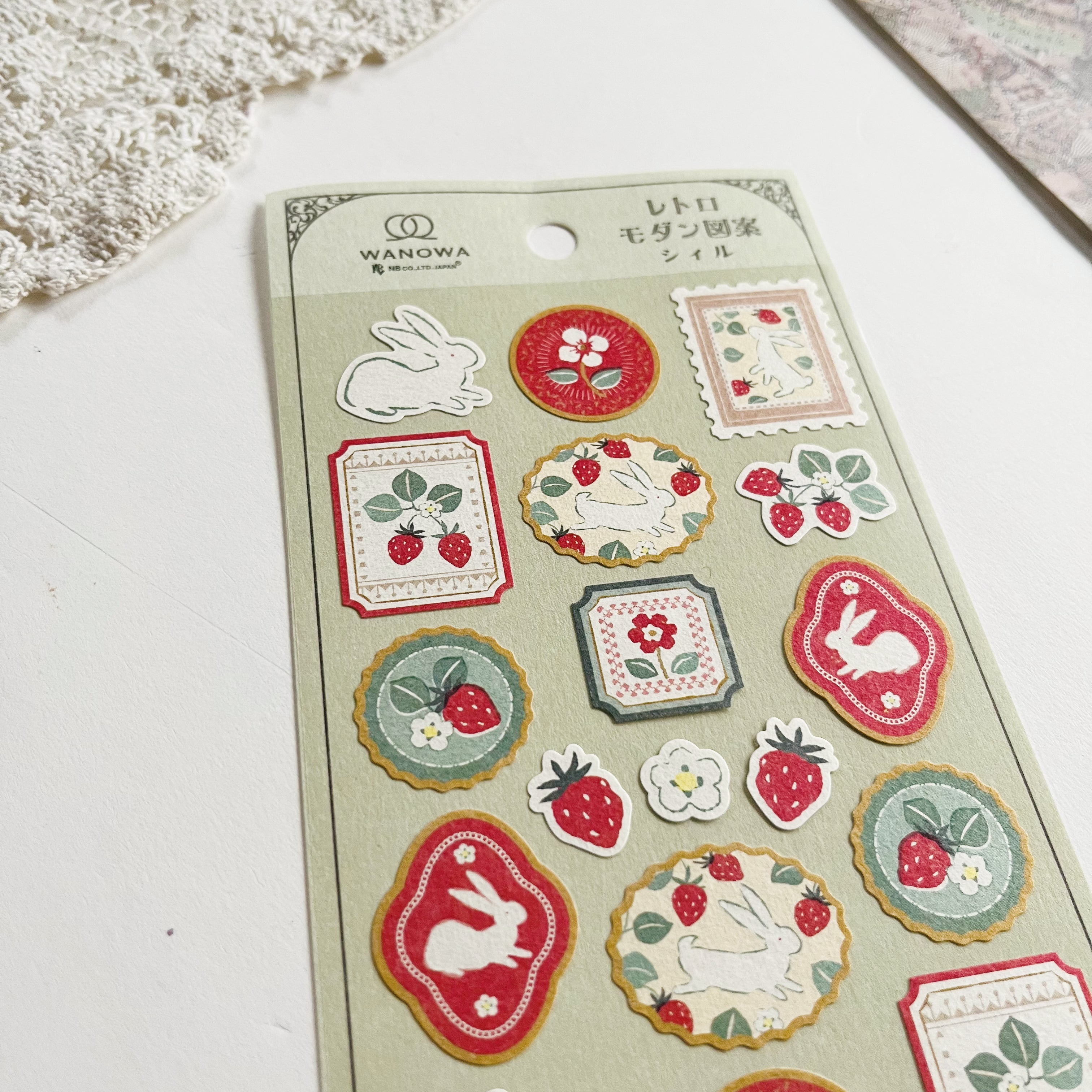 WANOWA Retro Modern Sticker Seal - Rabbit and Strawberry