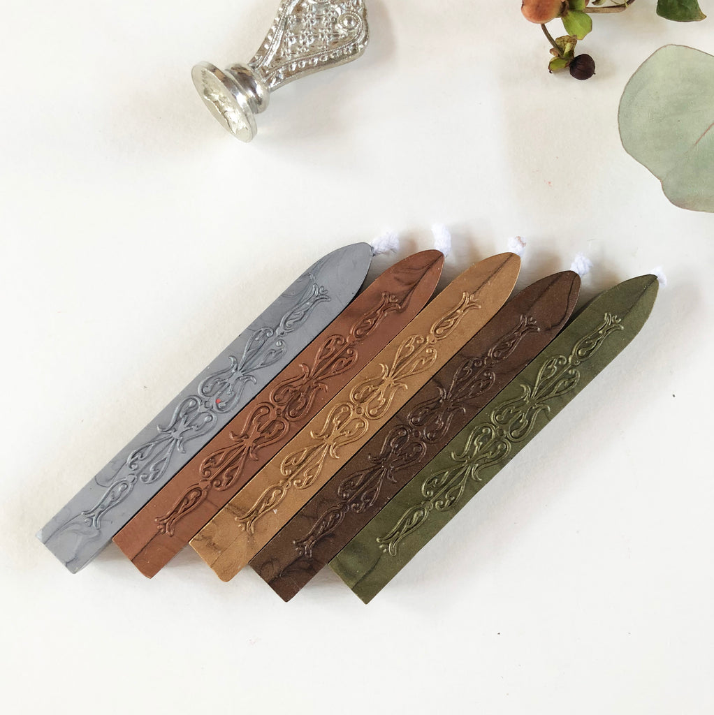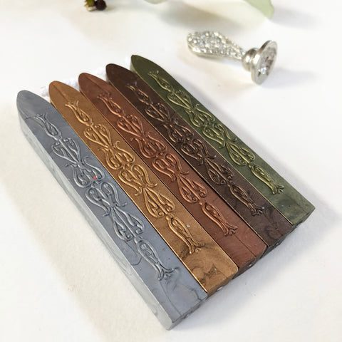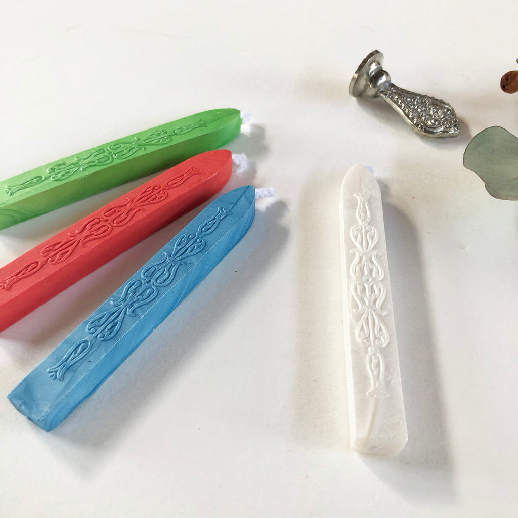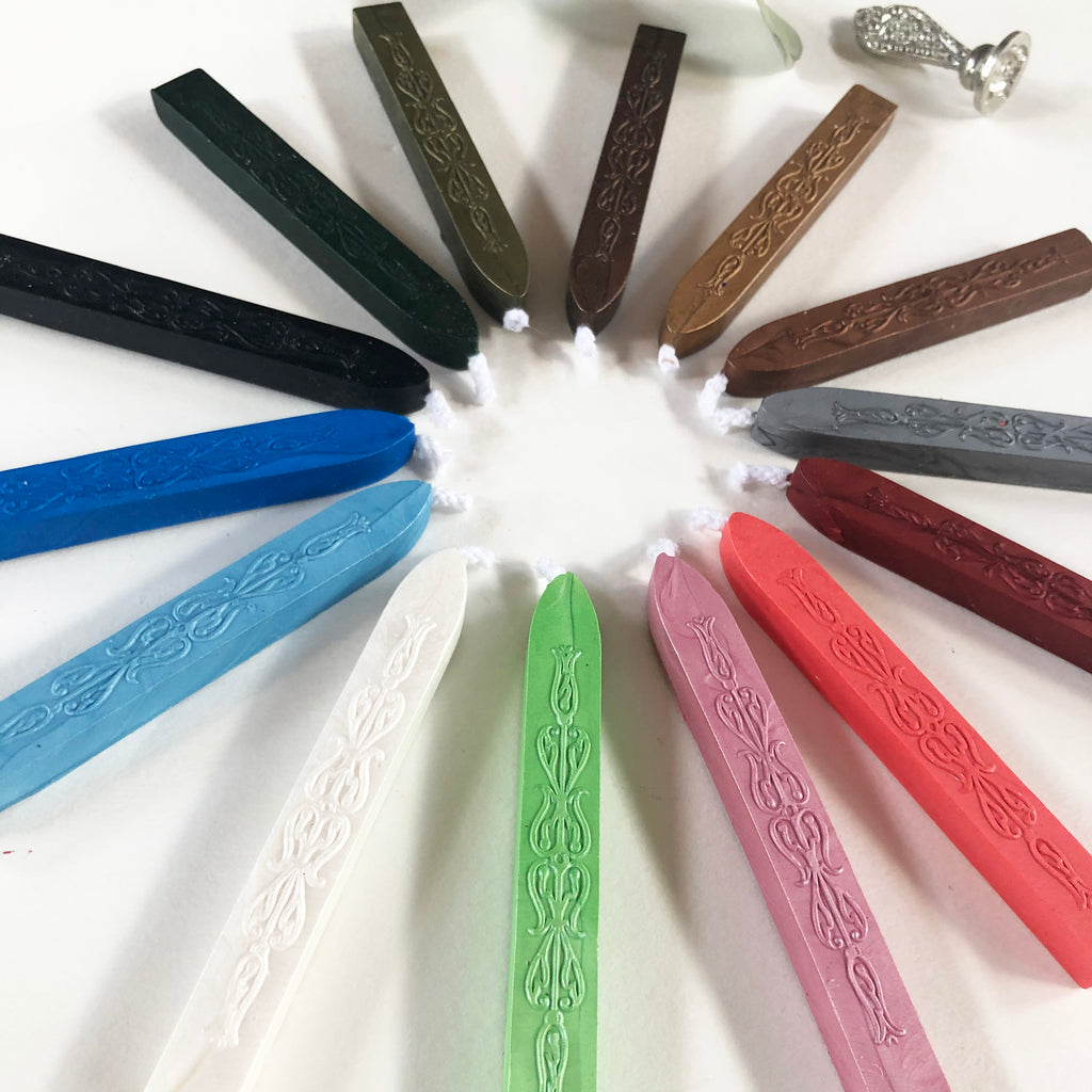 Modern sealing wax has been created especially to withstand the rigors of the modern postal system Completely flexible and mailable sealing wax that does not chip or break. 18 uplifting vibrant satin-finish colors, clear impressions and great price points are the hallmark of this sealing wax. 4" Sticks with wick 12-15 impressions per stick (based on 3/4" impression) Great for single applications