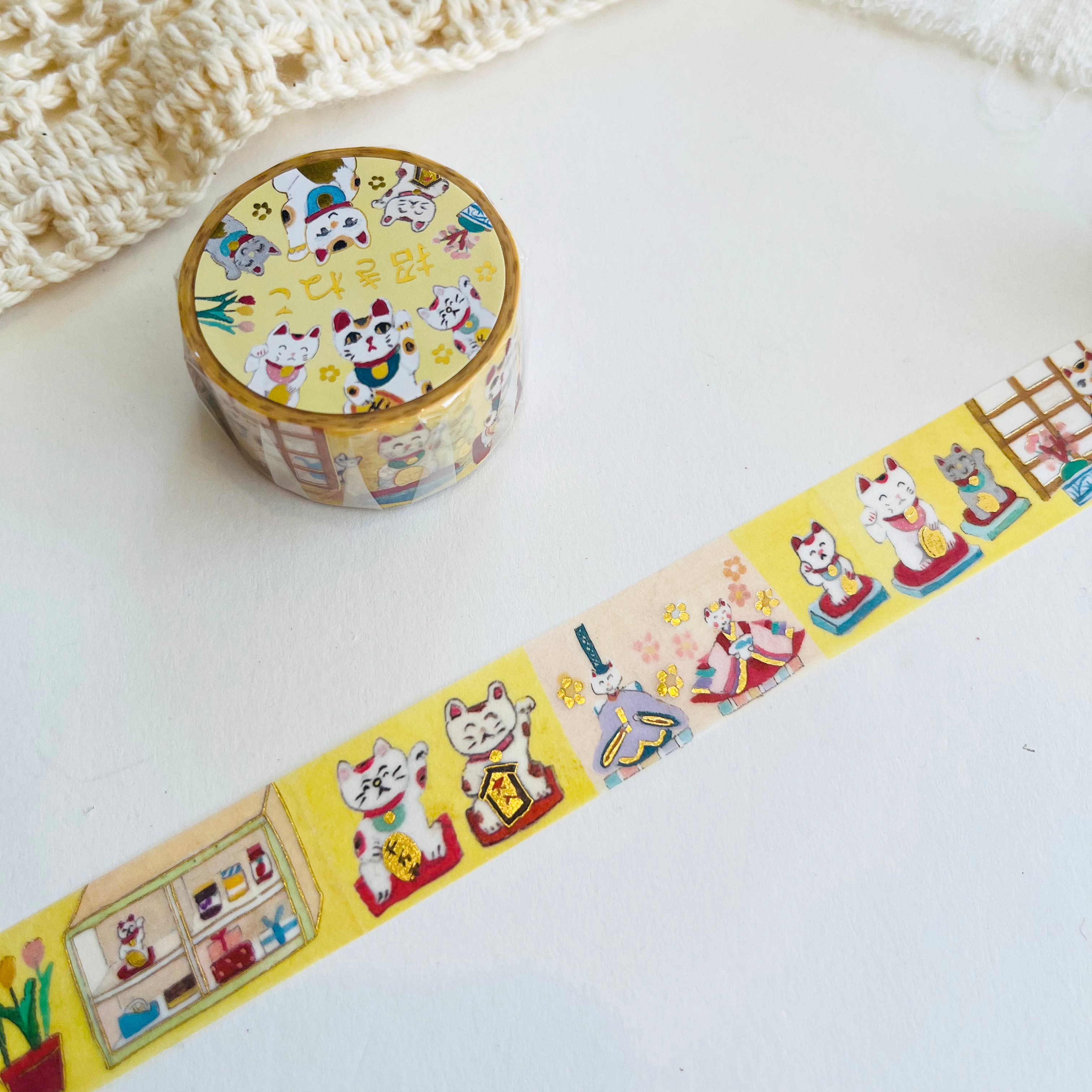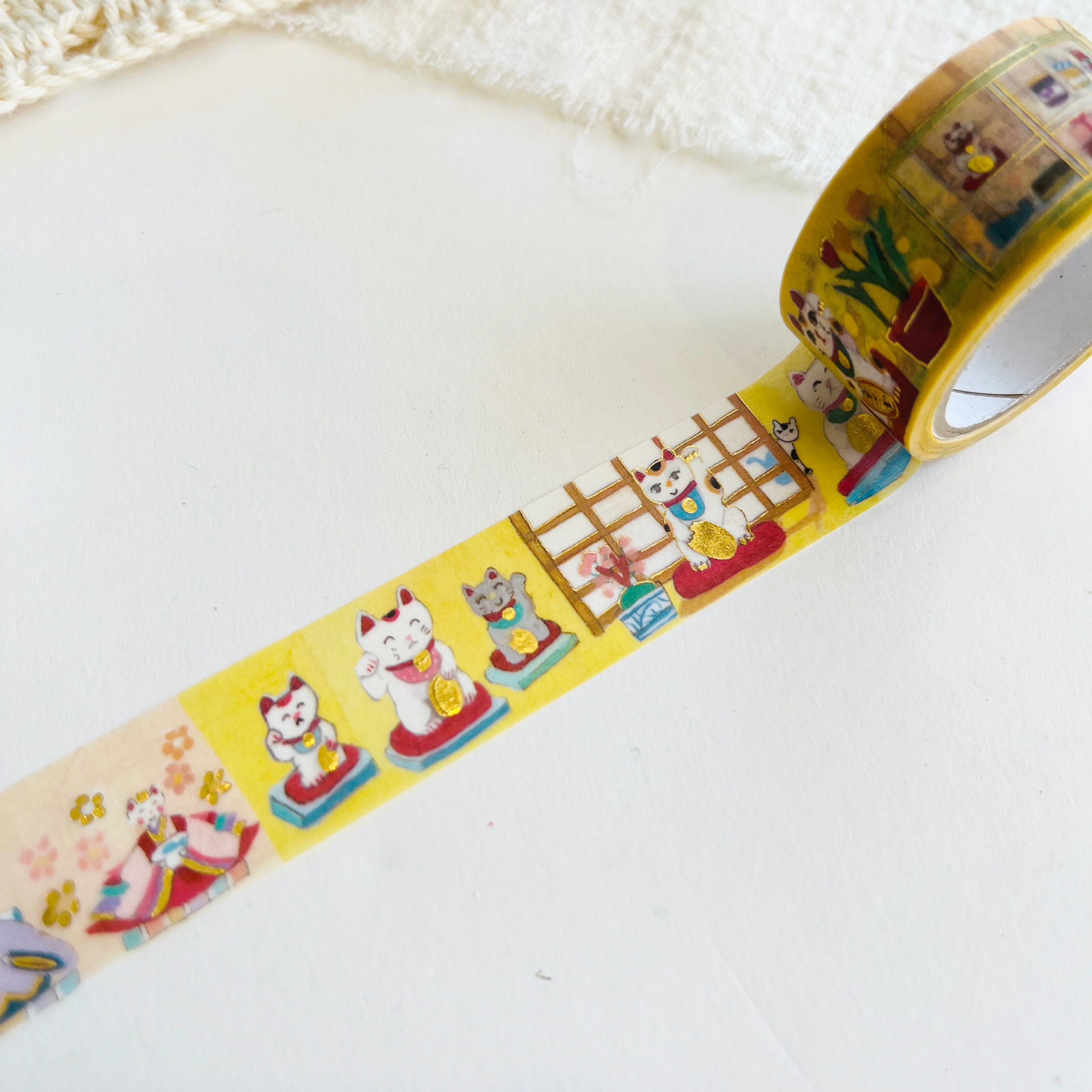 Ai Okino foil-stamped washi tape - Beckoning Cat