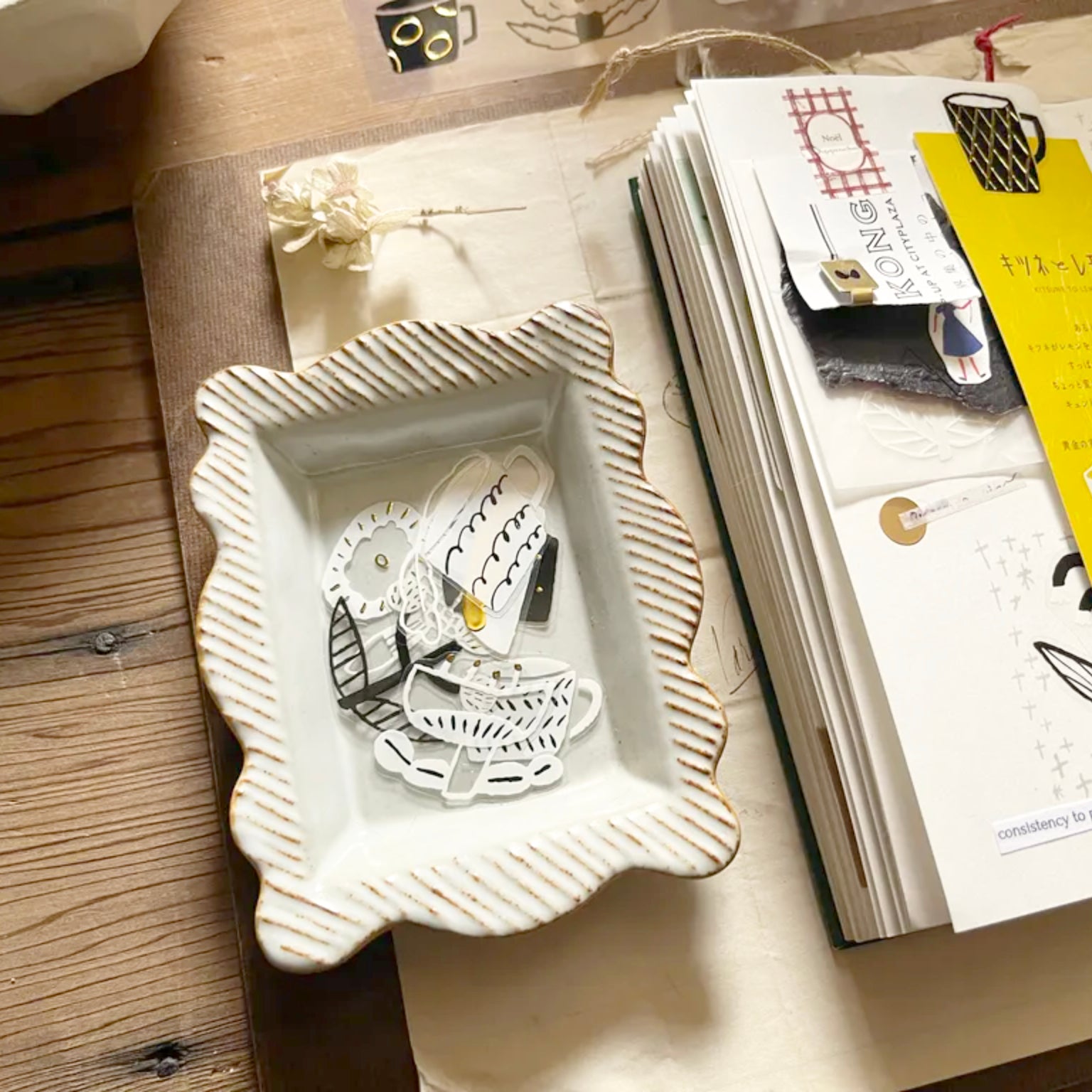 Introducing the Twilight Cat & Flower PET Tape by avocadomori! This design combines elegant black-and-white ink details with embossed highlights, creating a subtle touch of luxury. The versatile collage style complements any color scheme beautifully, making it a perfect choice for gatherings and special moments alike.