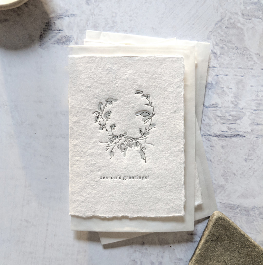 Belinda Love Lee Letterpress Mini Card - Season' Greetings Wreath