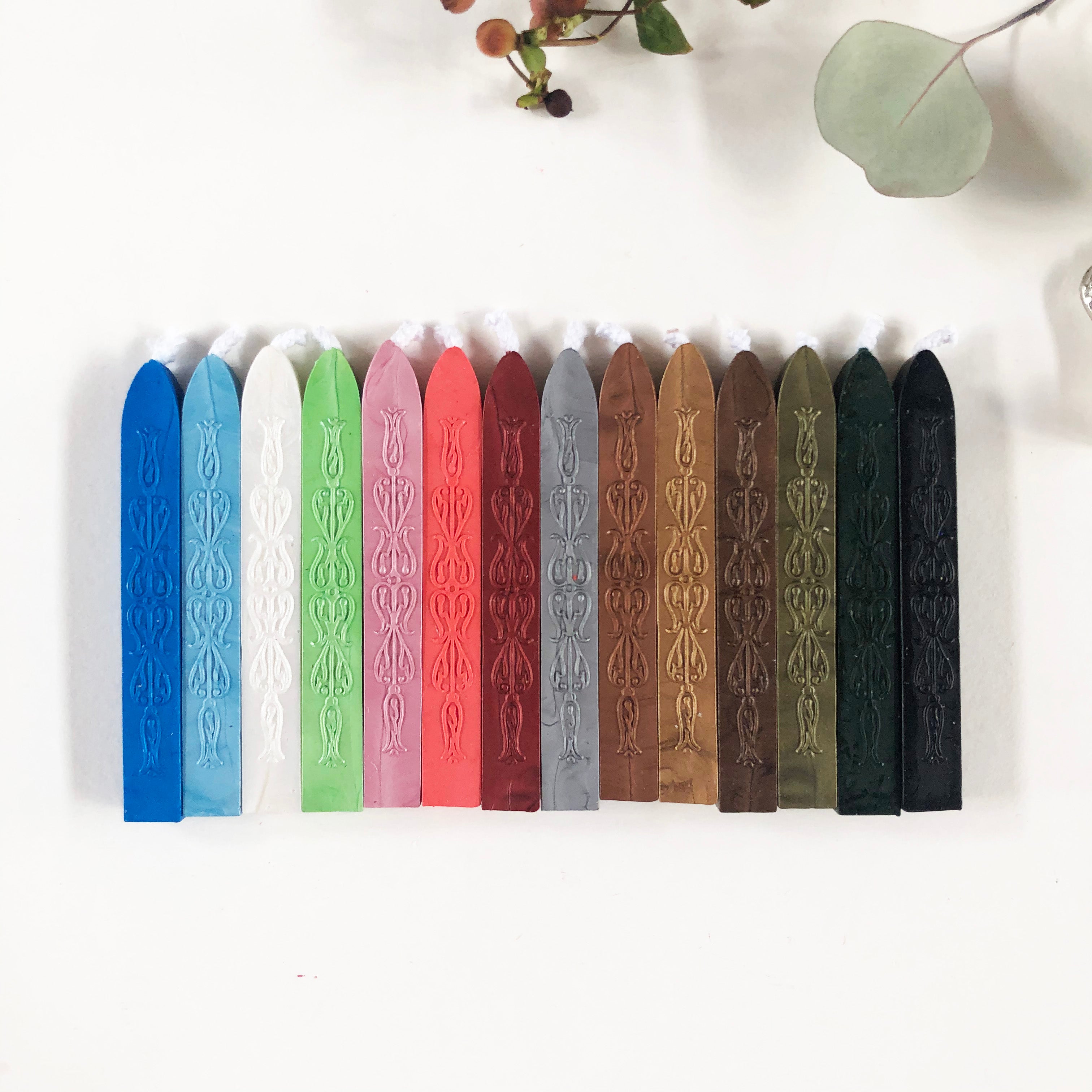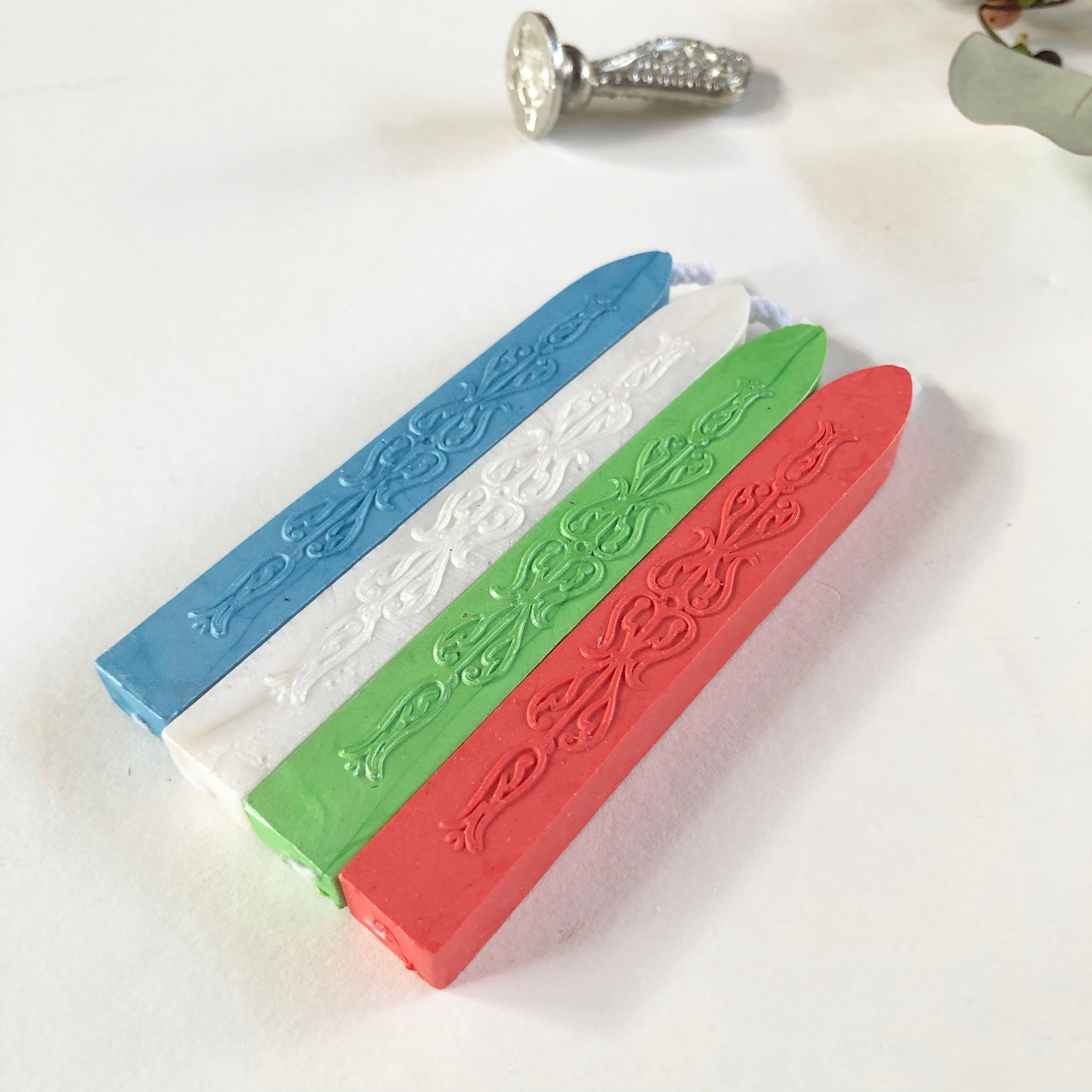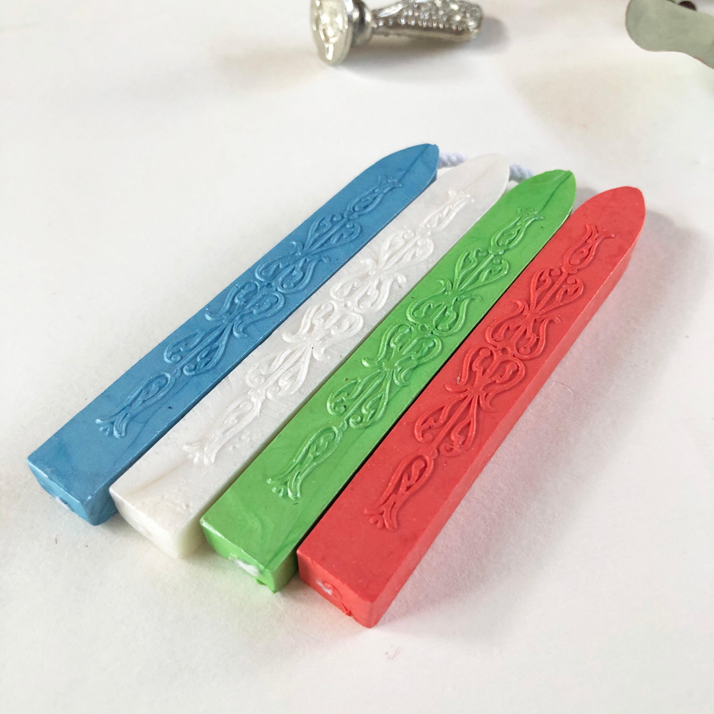 Modern sealing wax has been created especially to withstand the rigors of the modern postal system Completely flexible and mailable sealing wax that does not chip or break. 18 uplifting vibrant satin-finish colors, clear impressions and great price points are the hallmark of this sealing wax. 4" Sticks with wick 12-15 impressions per stick (based on 3/4" impression) Great for single applications