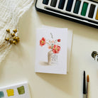 Details: - single card + envelope + sticker for sealing - Blank inside - 2.5" x 3.5" - Printed on 120lb superfine paper - Original watercolor artwork by emily lex