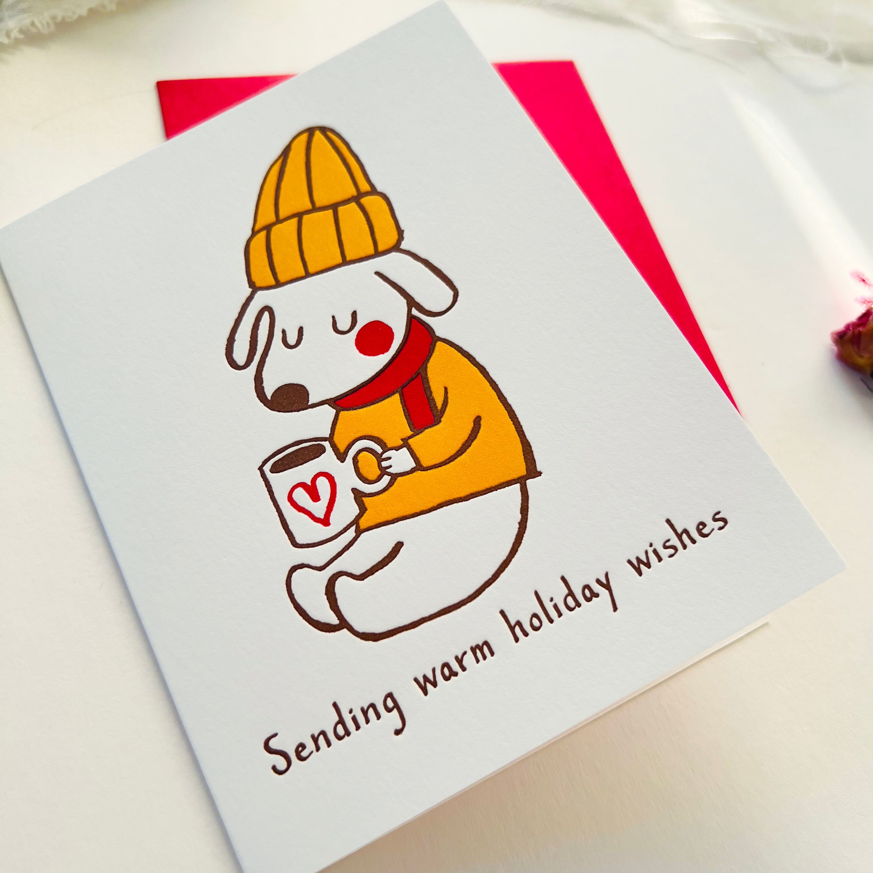 Letterpress printed on natural white paper, blank inside. Comes with a matching envelope. Size: A2 (4.25" x 5.5").