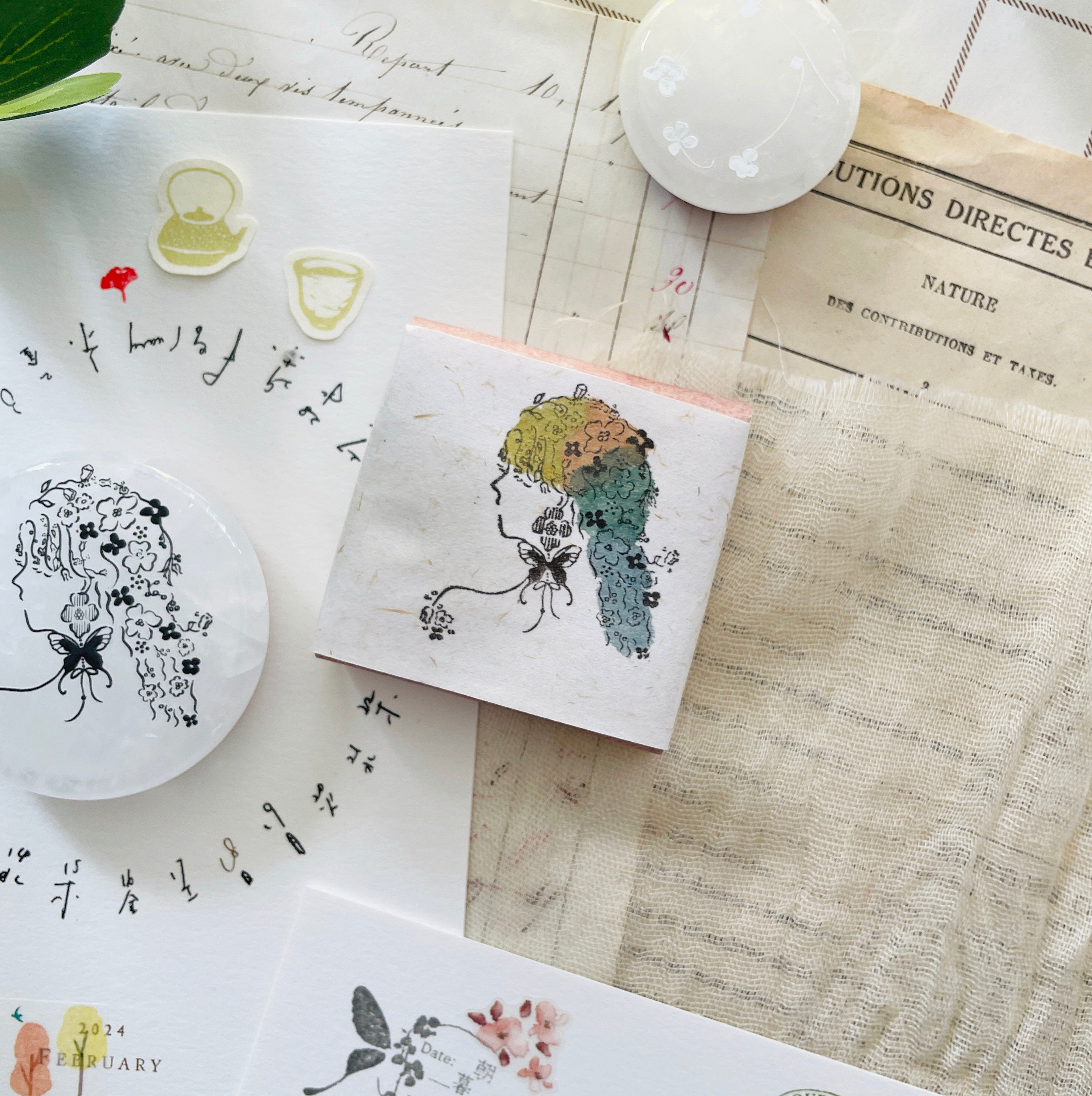 Hanen Studio Jade Stone Stamp - Flower Hair Girl