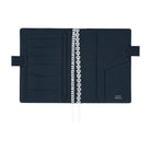 Designed with an embroidered work by embroidery artist and illustrator iyo okumi. A romantic design of things that you can find in everyday life around you, like animals and plants, that are delicately embroidered onto a chic, navy fabric. The many colorful threads that are used for this intricate work create a fable-like world. It has "butterfly stopper" pen holders, which also function as a clasp to keep the cover shut.